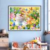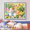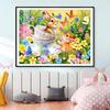 White cloth [big grid] Flower Room tea cup rabbit cross stitch + matching picture frame