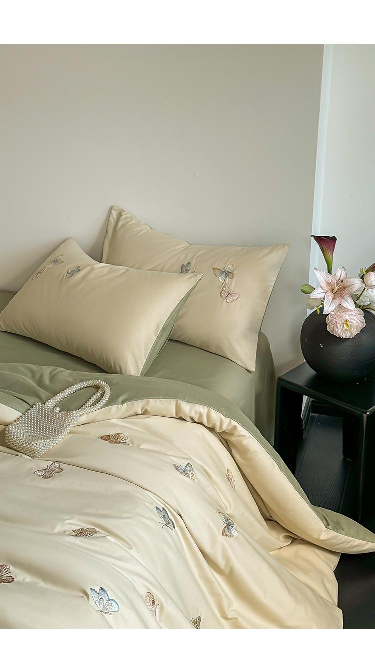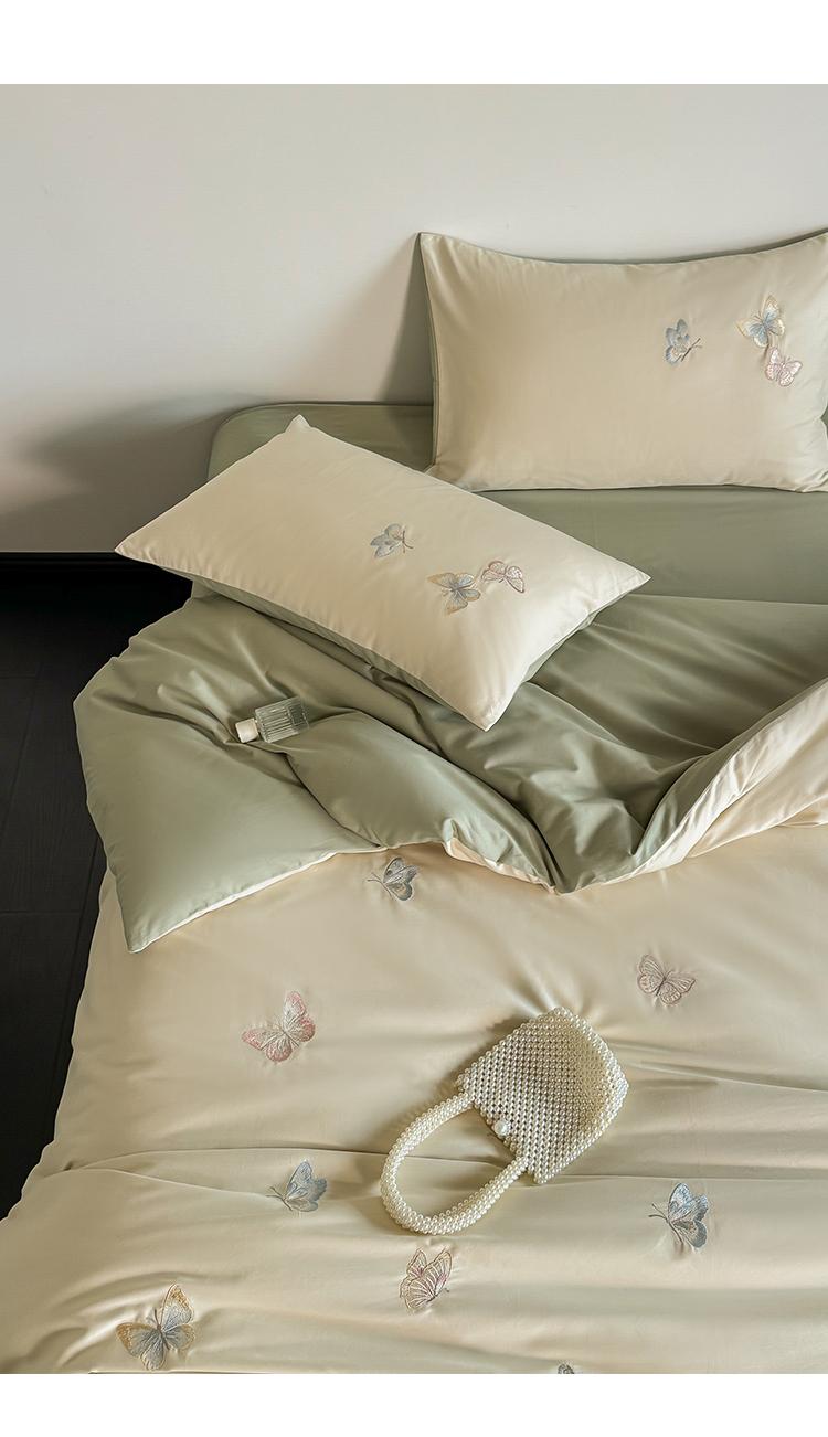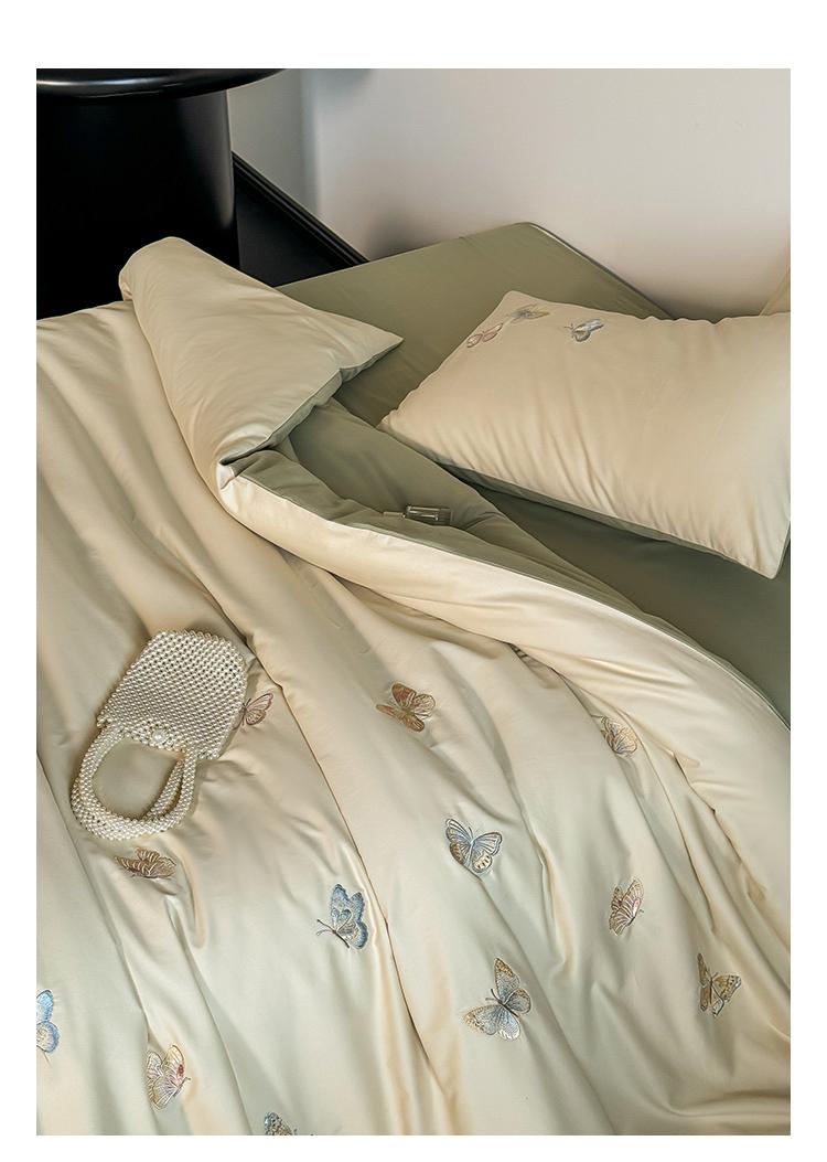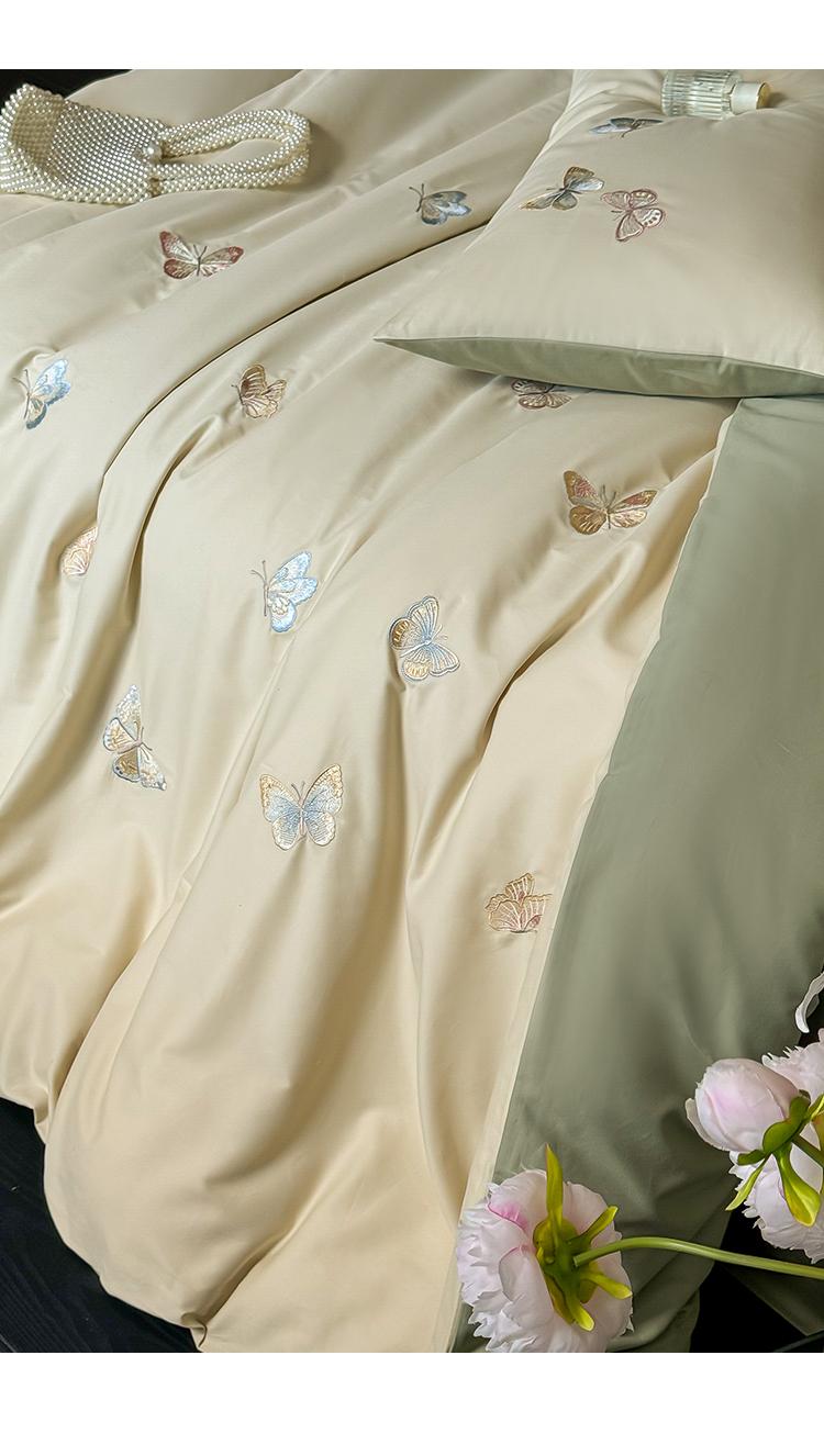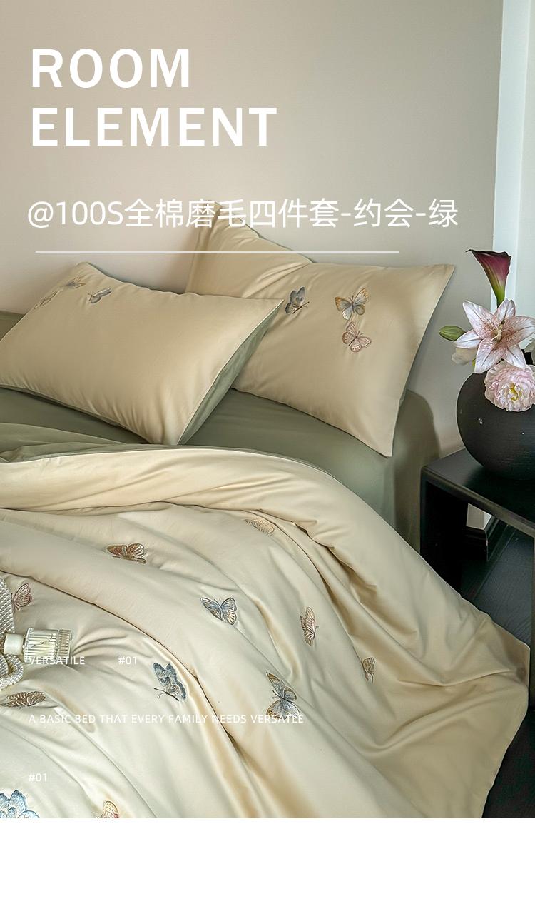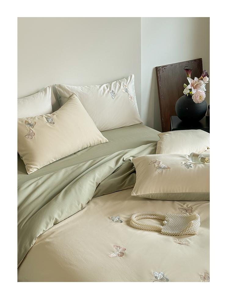 Juego de cuatro piezas de toalla de algodón de alta densidad 100S con bordado de mariposas, ropa de cama cálida y gruesa de algodón para otoño e invierno.