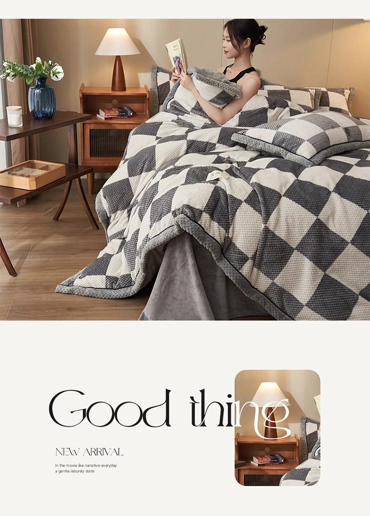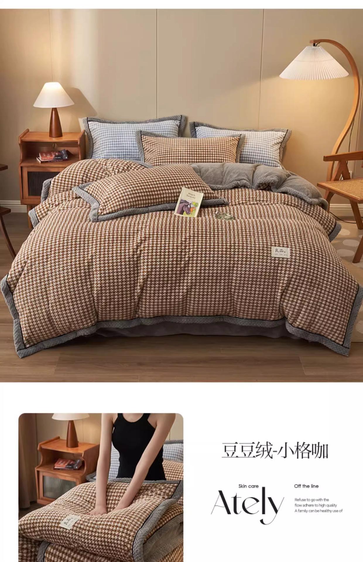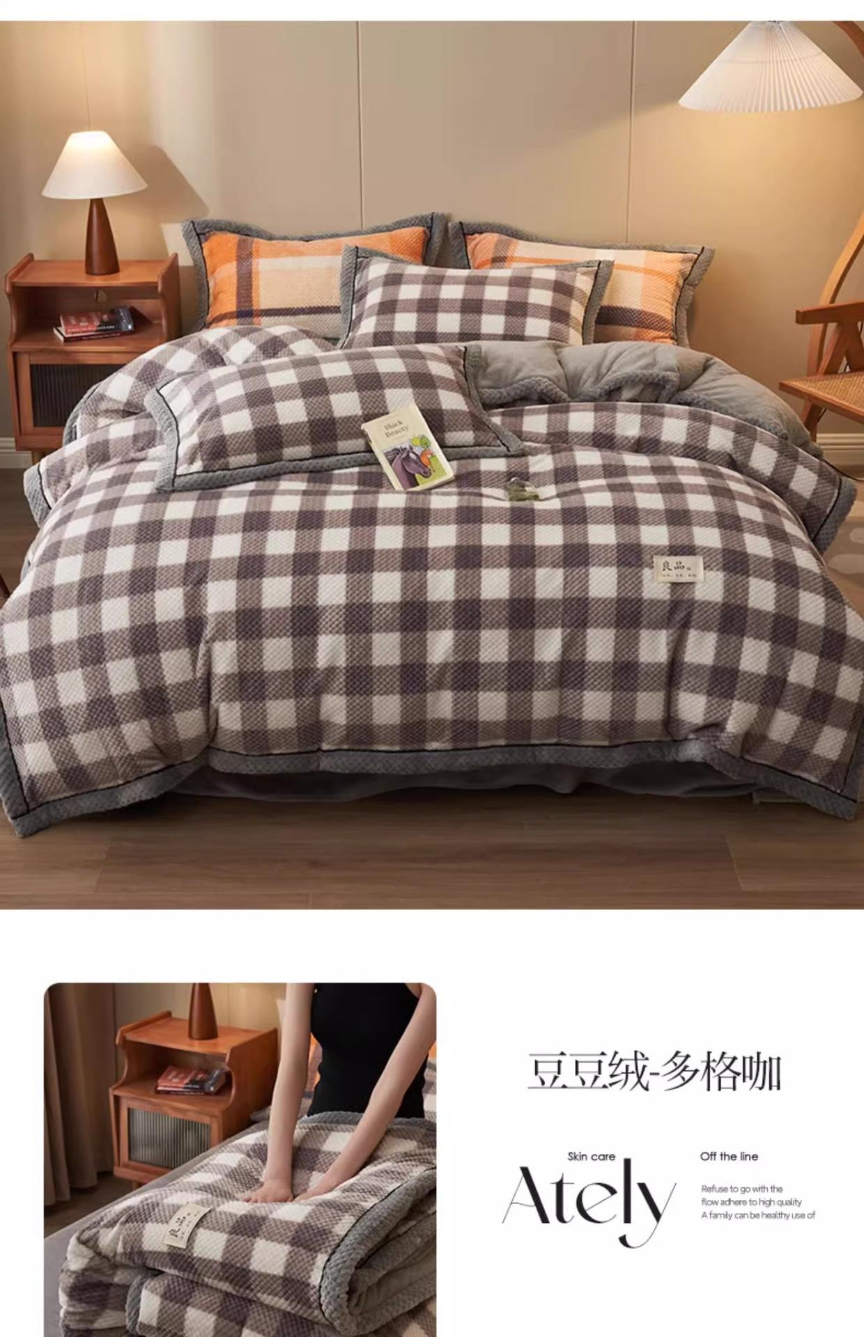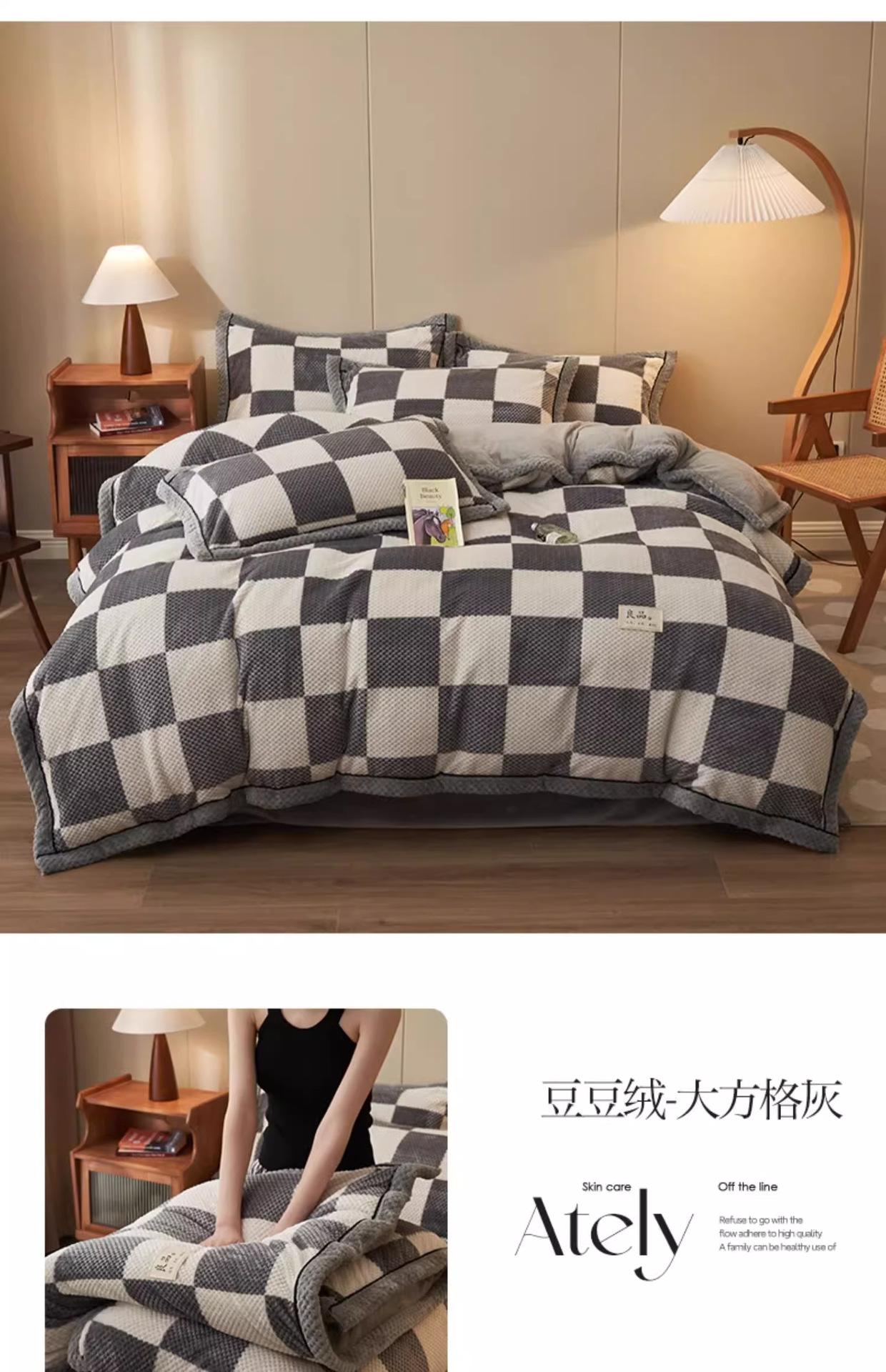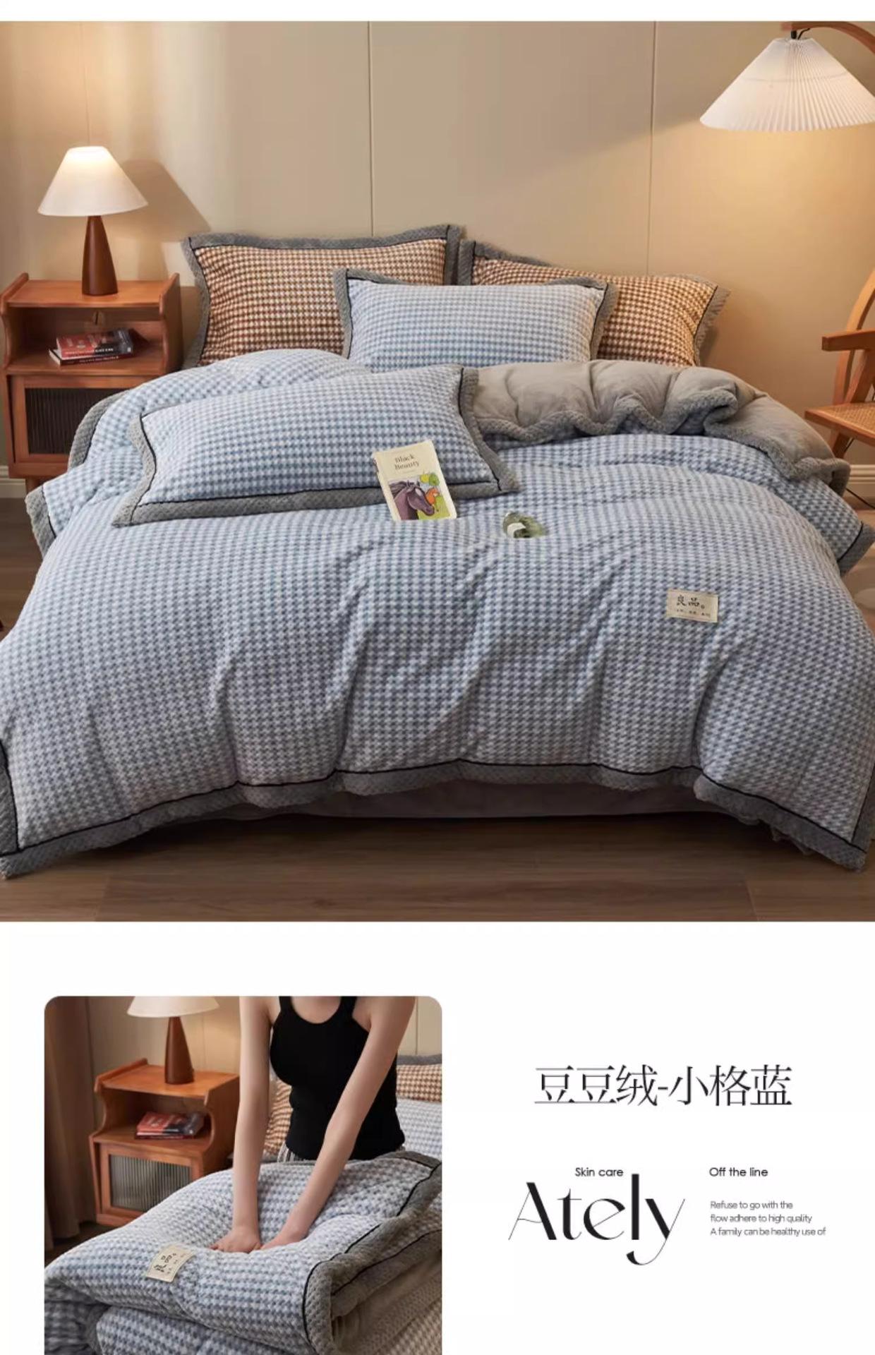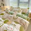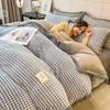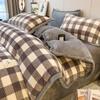Conjunto de cuatro piezas de terciopelo de leche espesado, otoño e invierno, terciopelo coral, funda de edredón con forro polar de doble cara, sábana de franela de invierno, conjunto de tres piezas