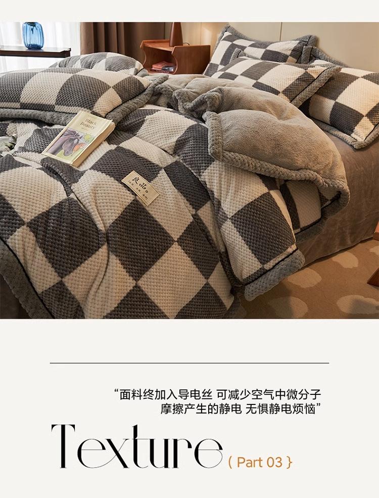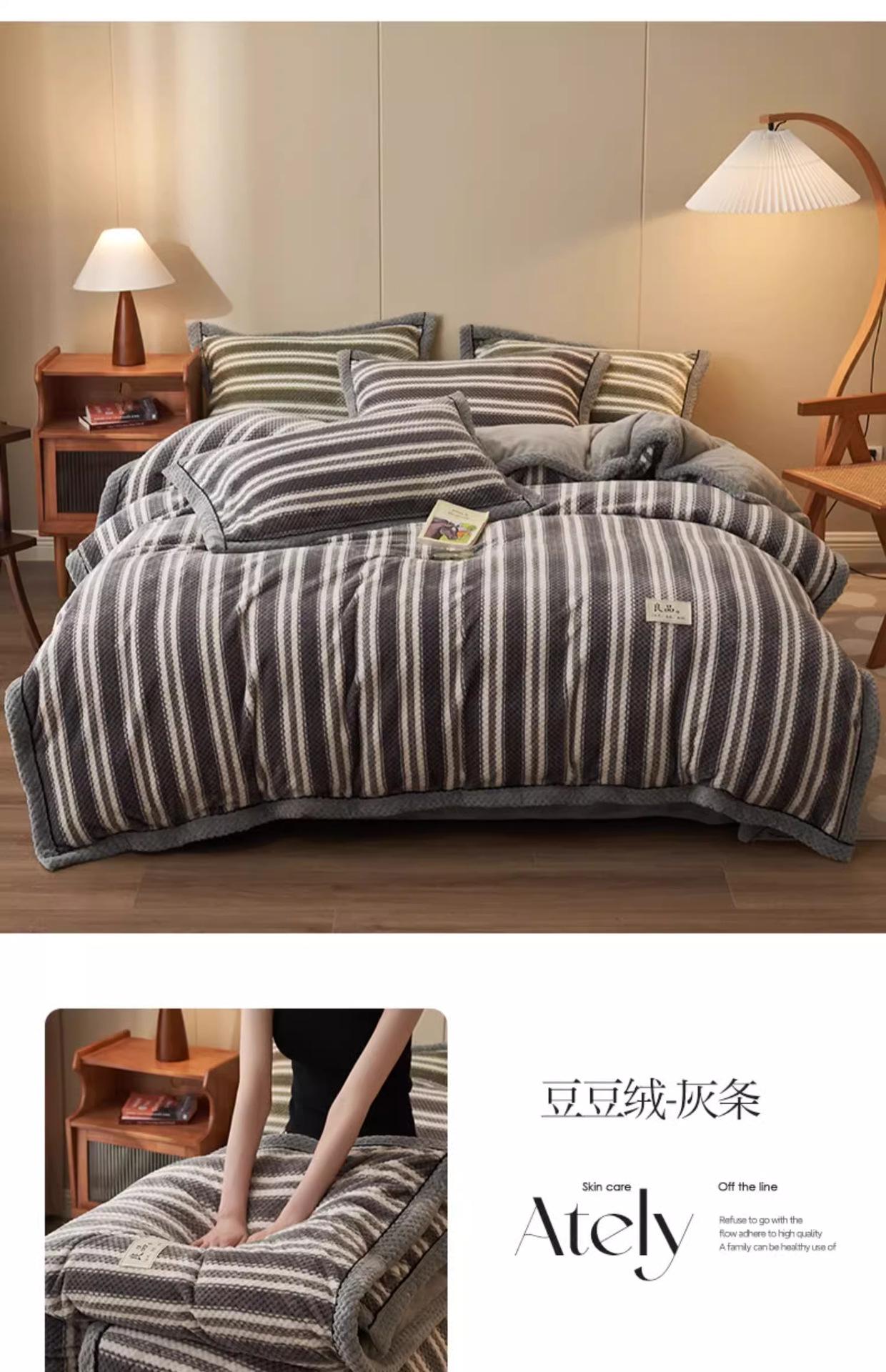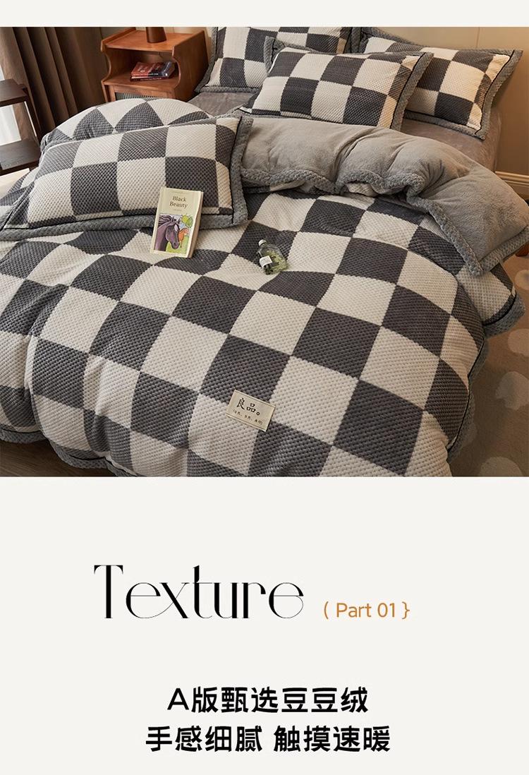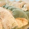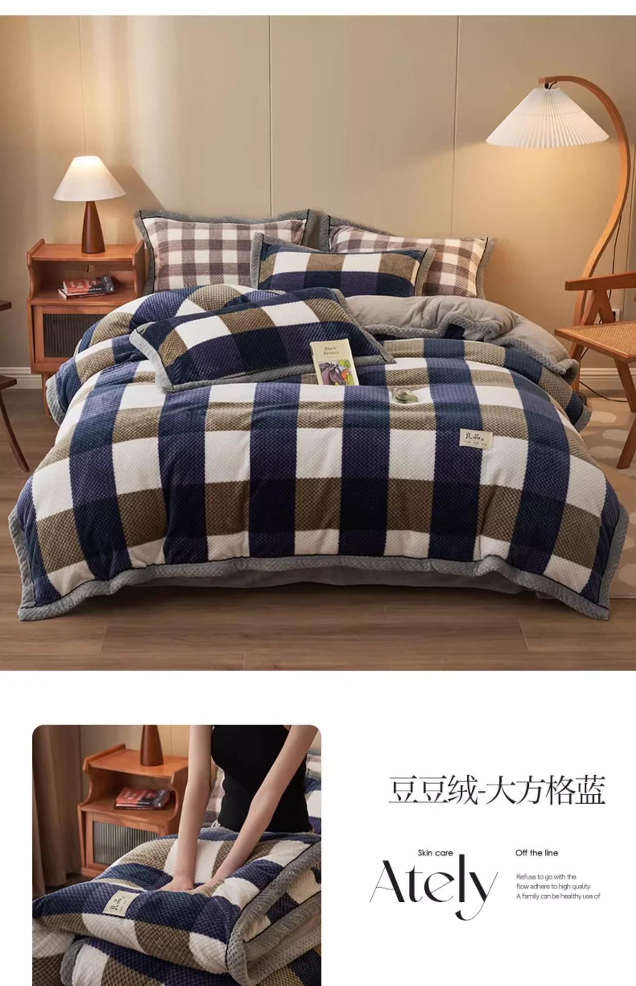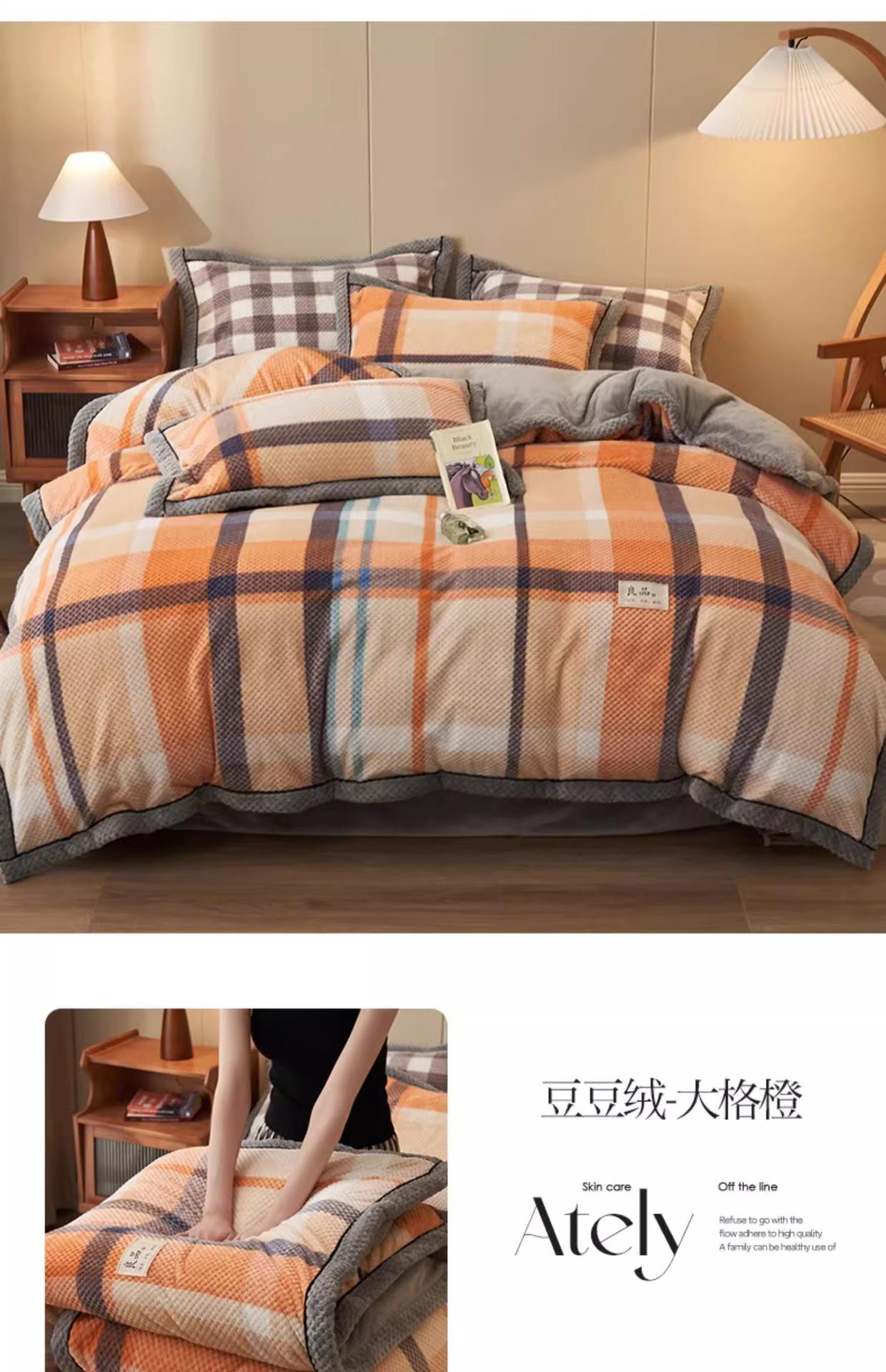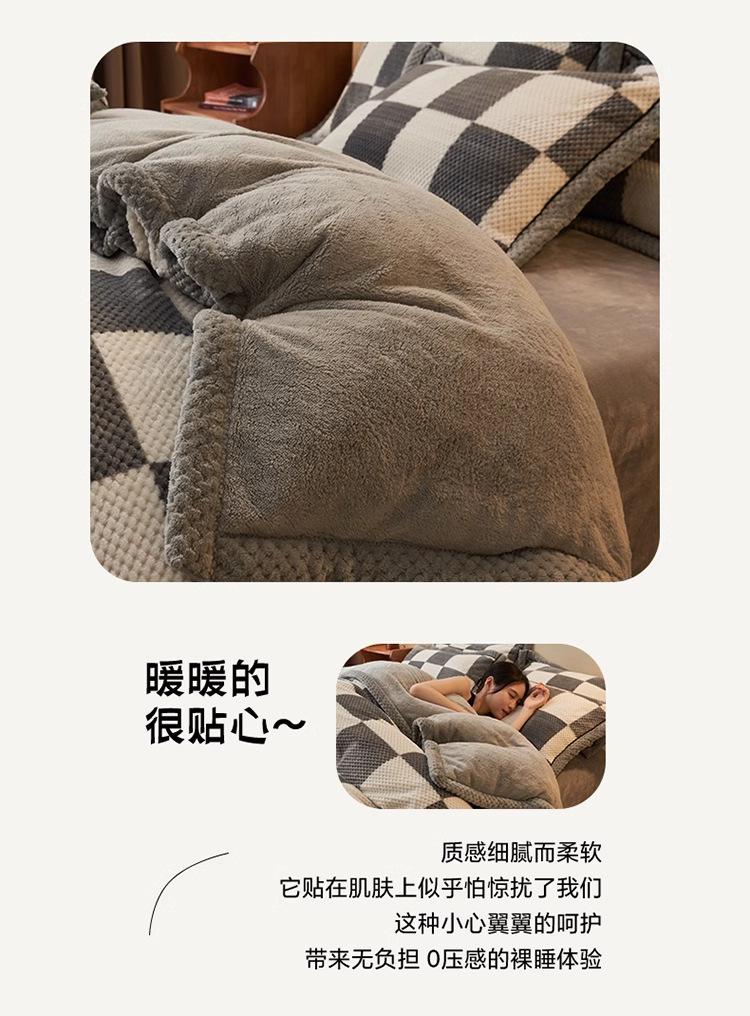 Conjunto de cuatro piezas de terciopelo de leche espesado, otoño e invierno, terciopelo coral, funda de edredón con forro polar de doble cara, sábana de franela de invierno, conjunto de tres piezas