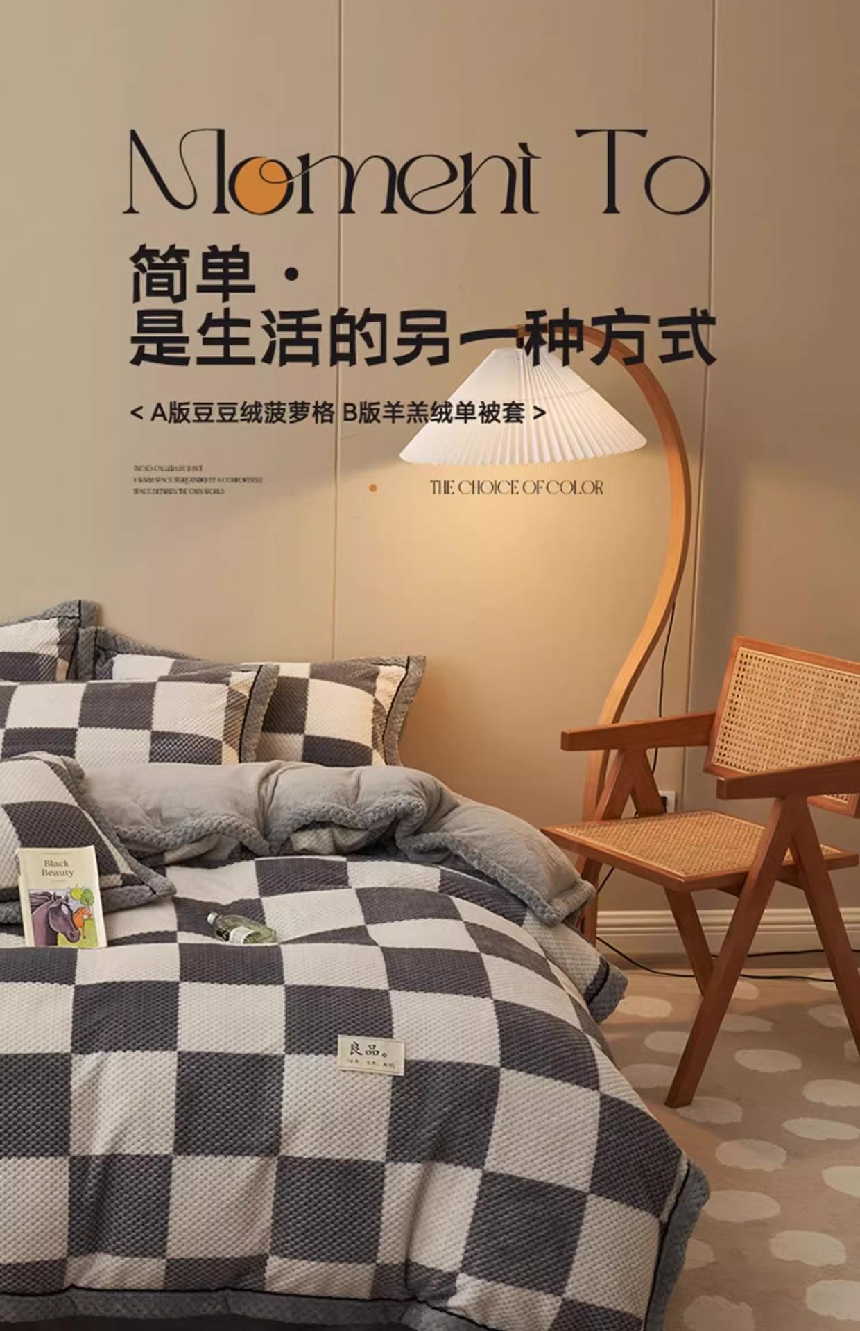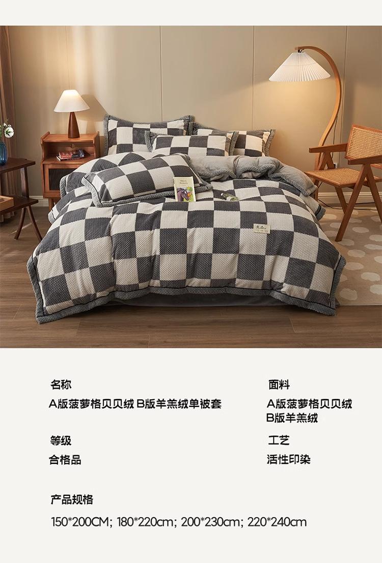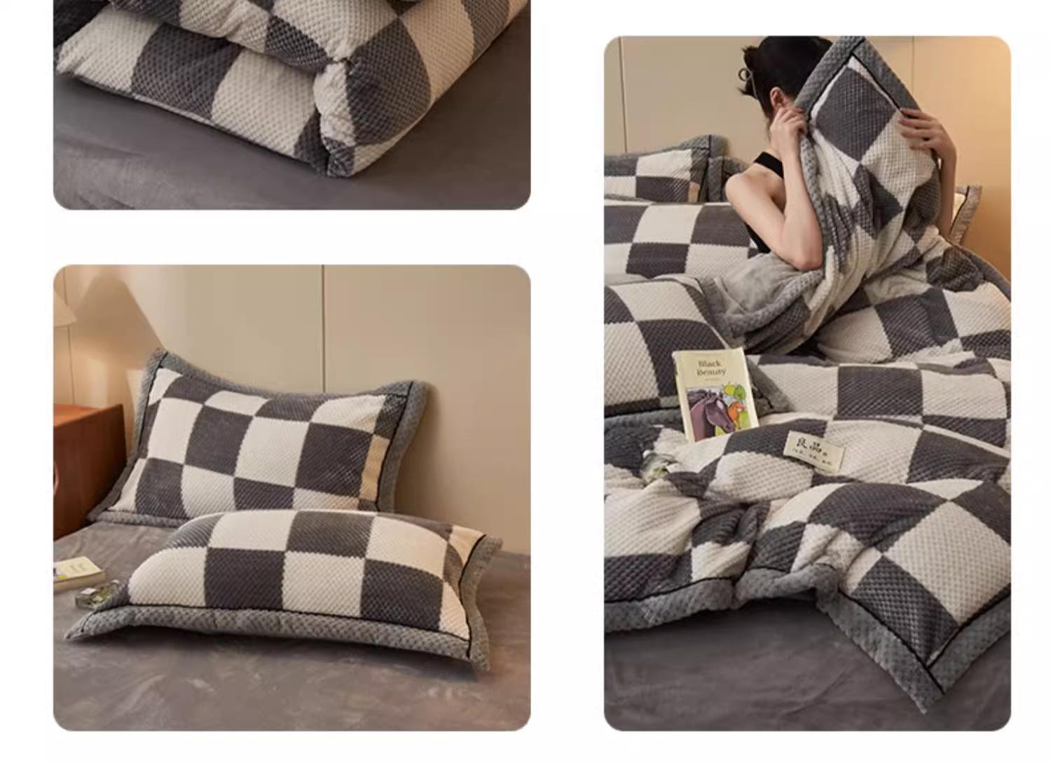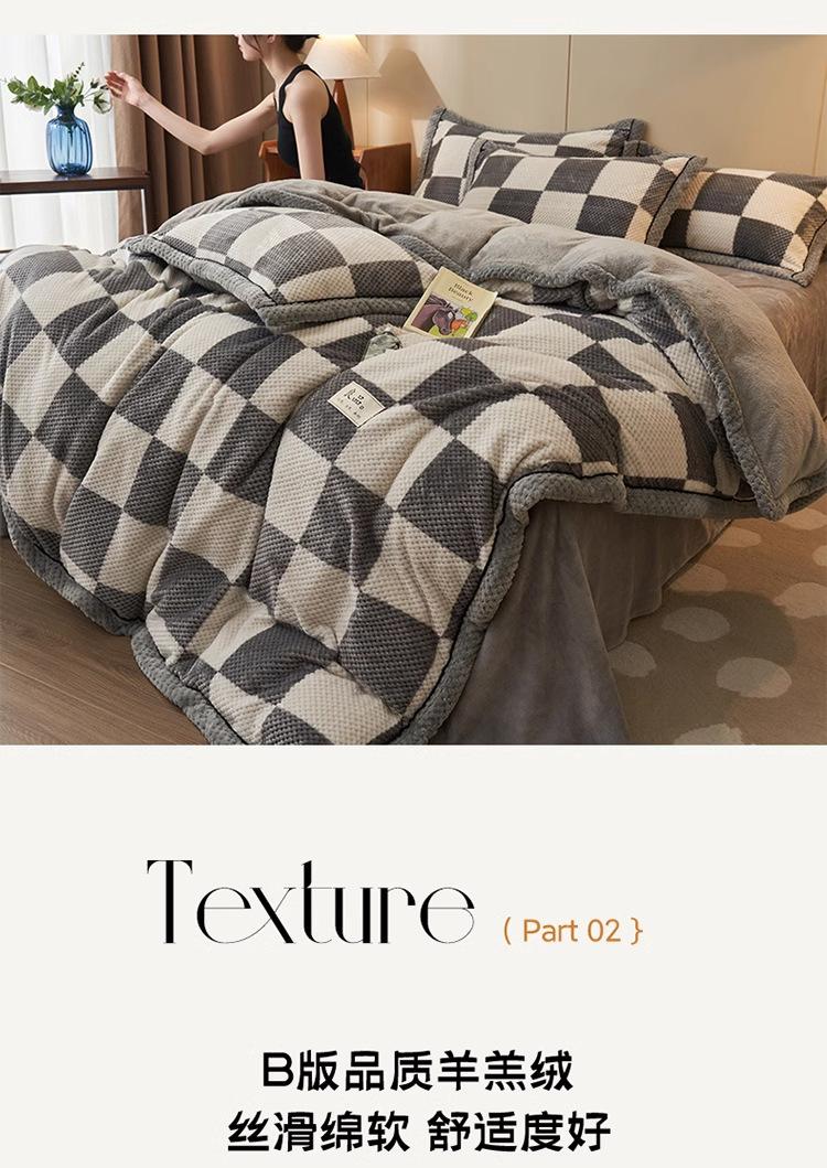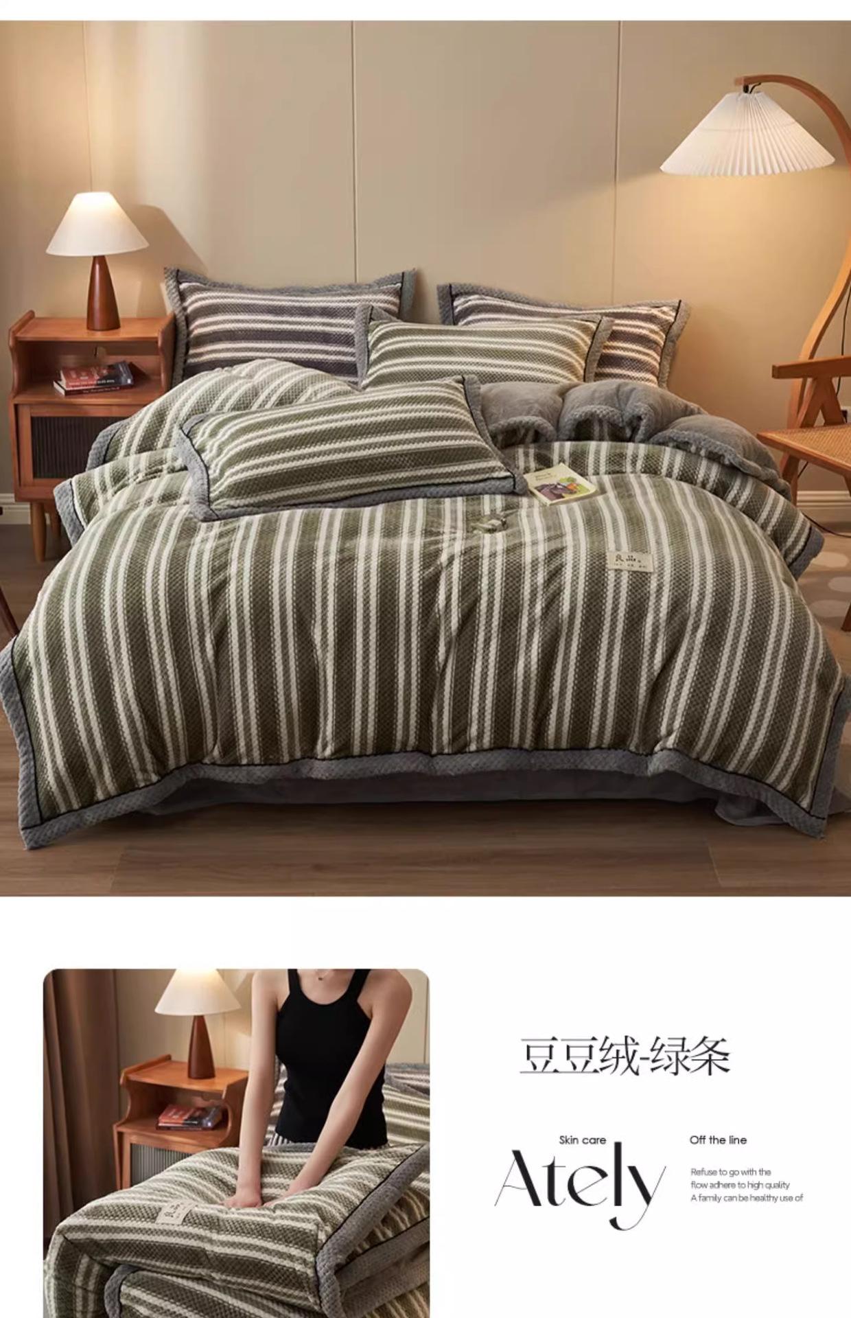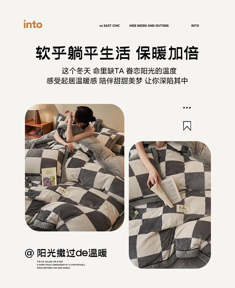 Conjunto de cuatro piezas de terciopelo de leche espesado, otoño e invierno, terciopelo coral, funda de edredón con forro polar de doble cara, sábana de franela de invierno, conjunto de tres piezas