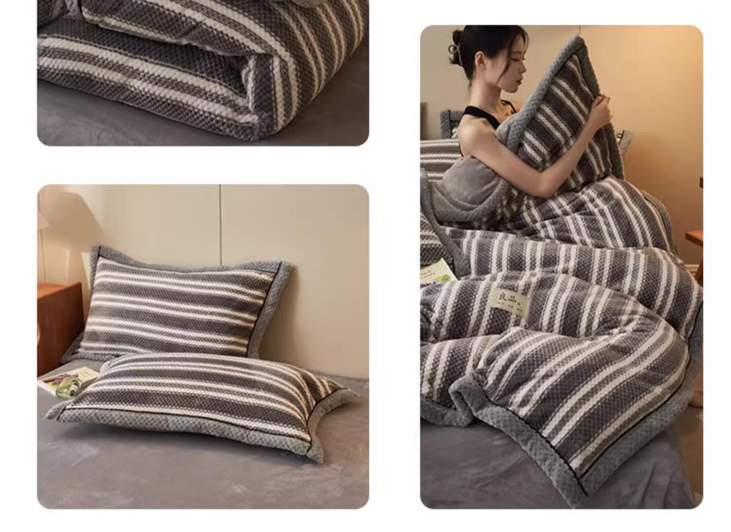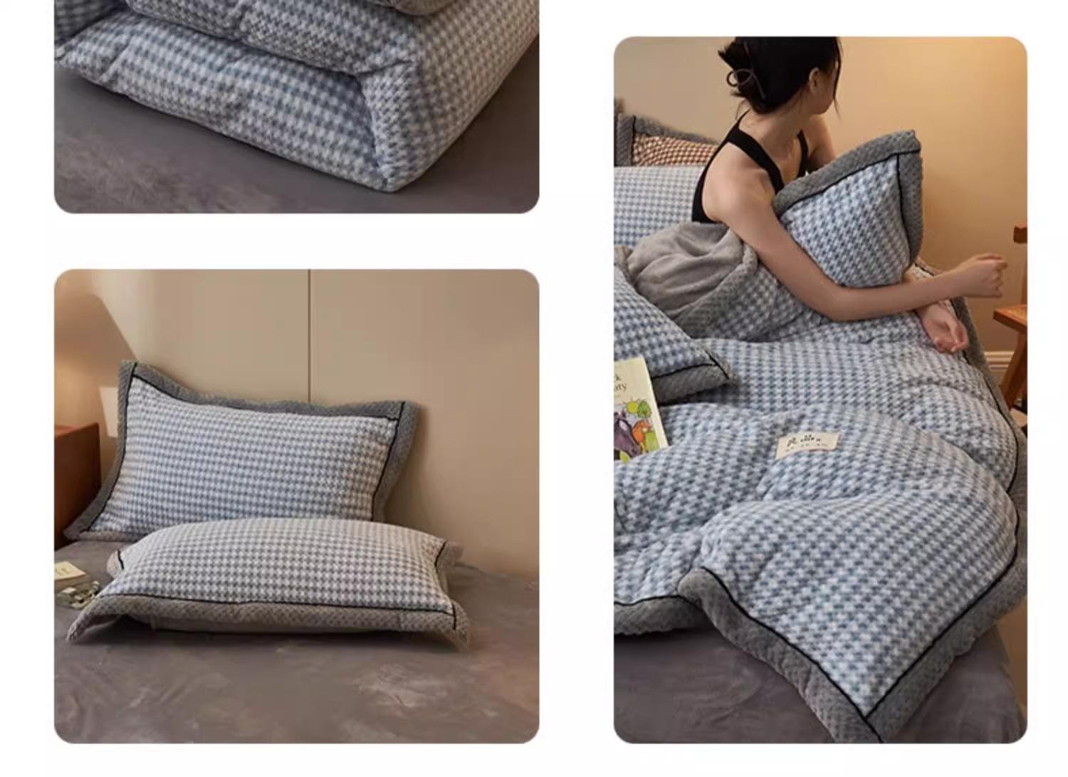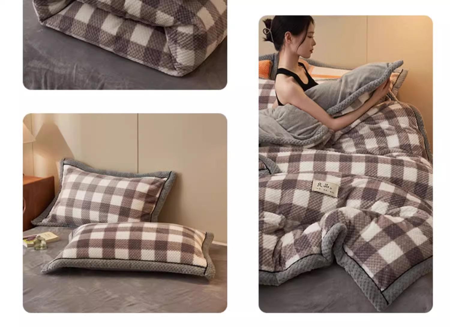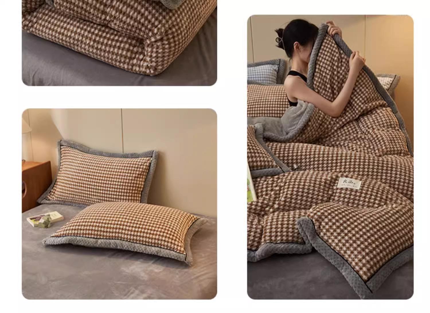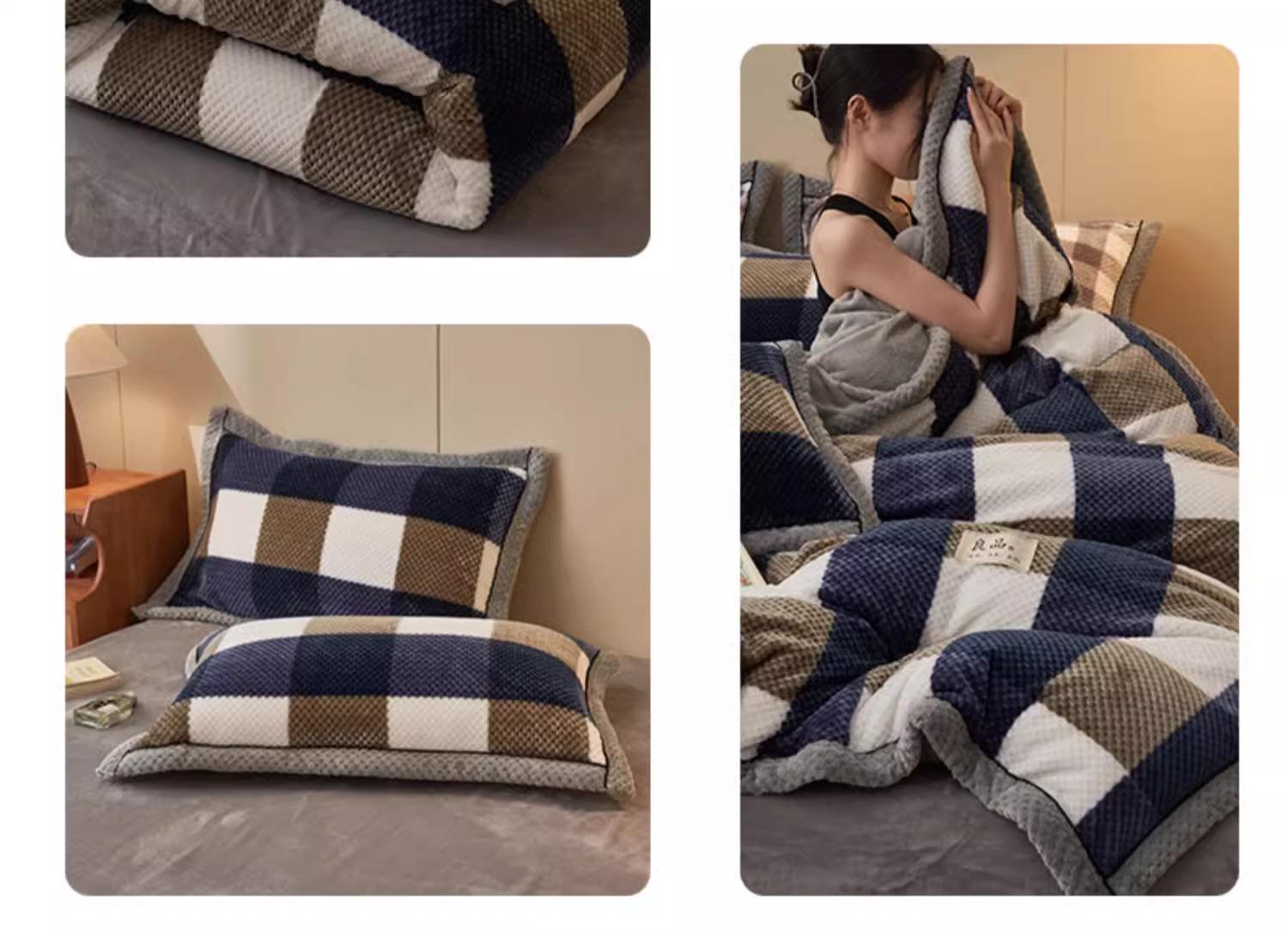 Conjunto de cuatro piezas de terciopelo de leche espesado, otoño e invierno, terciopelo coral, funda de edredón con forro polar de doble cara, sábana de franela de invierno, conjunto de tres piezas