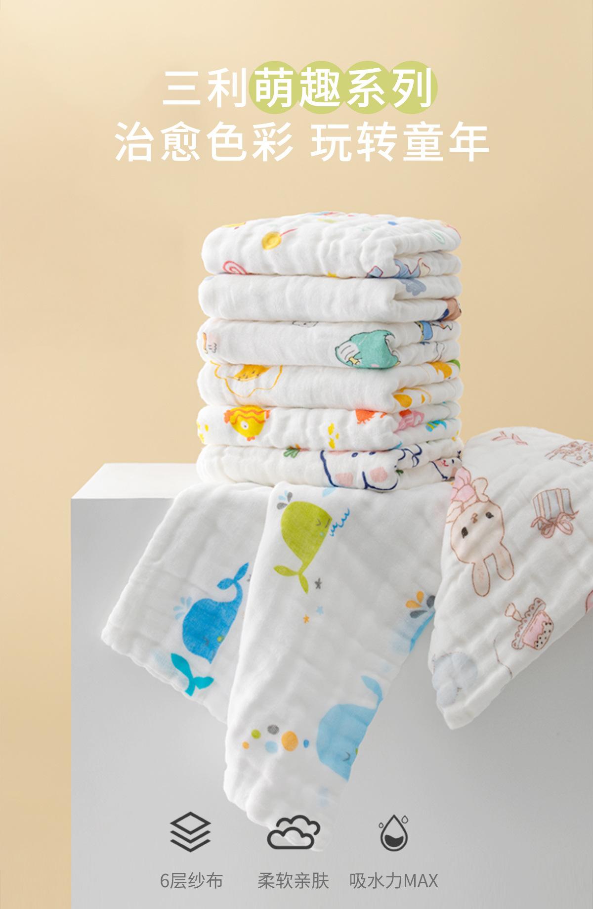 Toalla Sanli para niños, 6 capas, hilo de algodón puro de alta densidad, toalla estampada, toalla facial para bebés recién nacidos