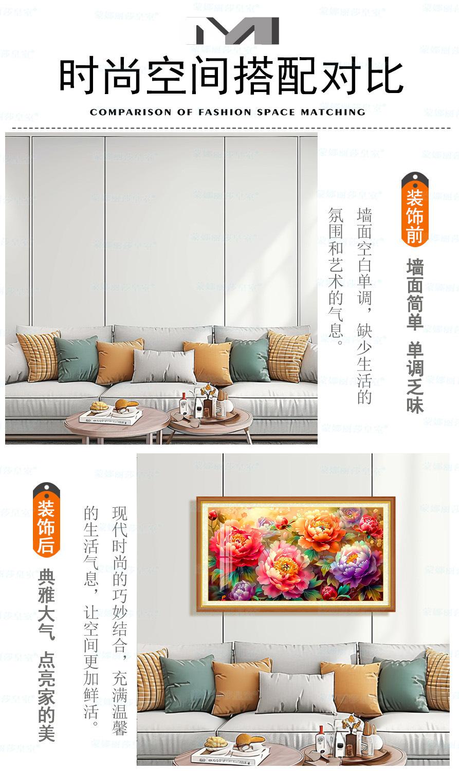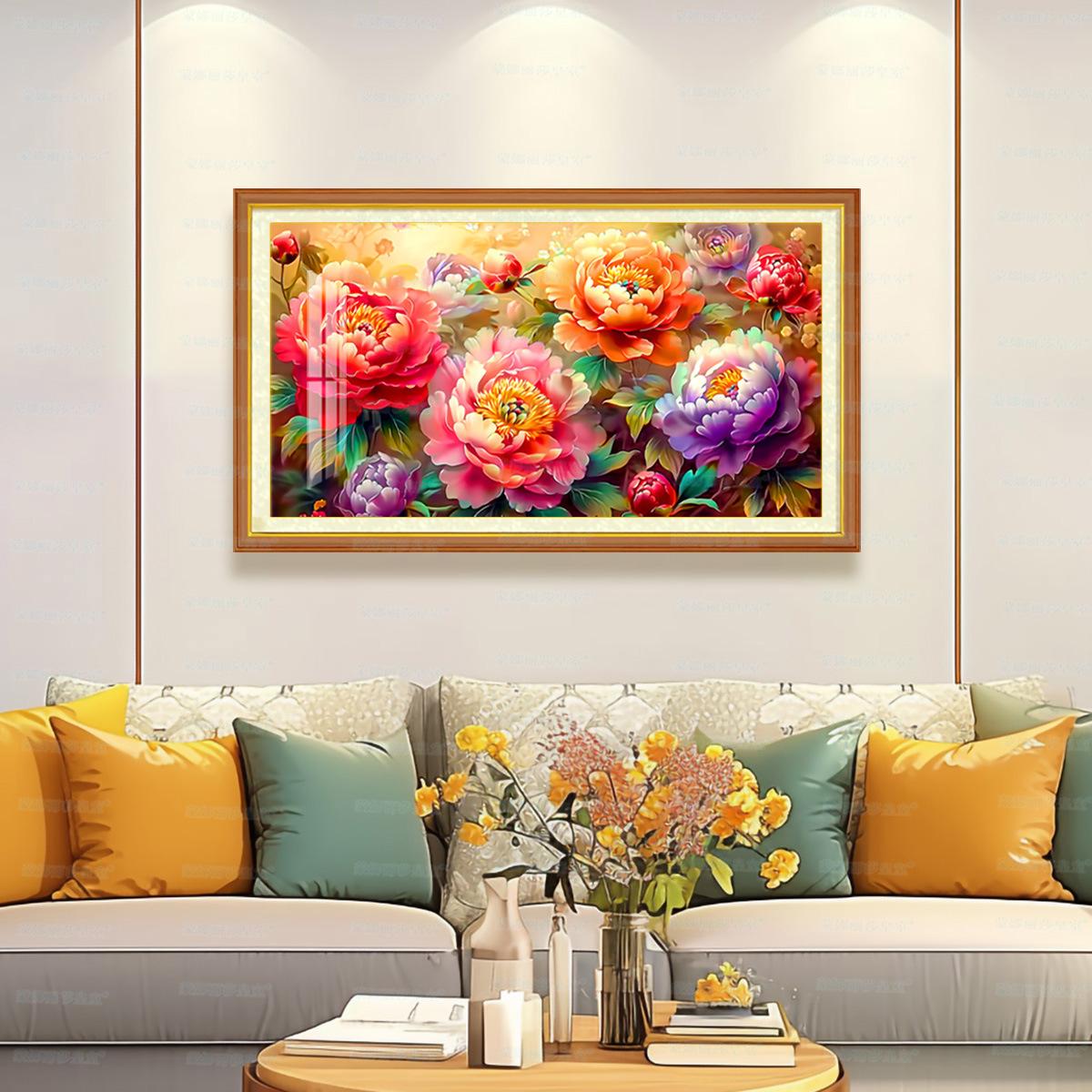 Imported cotton peony picture large checkered cross stitch + [gold] matching picture frame
