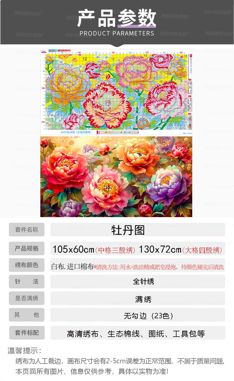 [Algodón importado] Figura de peonía de punto de cruz real de Mona Lisa, nuevo estilo nacional, paisaje de flores chinas hecho a mano