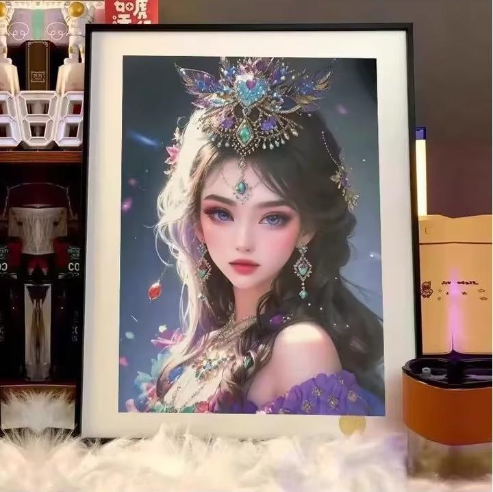 Mona Lisa, punto de cruz real, pupila púrpura 2025, nueva pintura decorativa de dibujos animados simple y linda, bordado de hilo hecho a mano