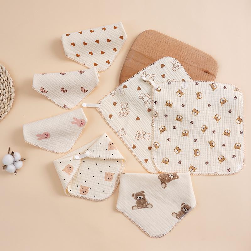 Toalla de gasa de algodón para niños, toalla facial, toalla de saliva para bebés, toalla cuadrada, toalla triangular para bebés, toalla cuadrada pequeña para recién nacidos