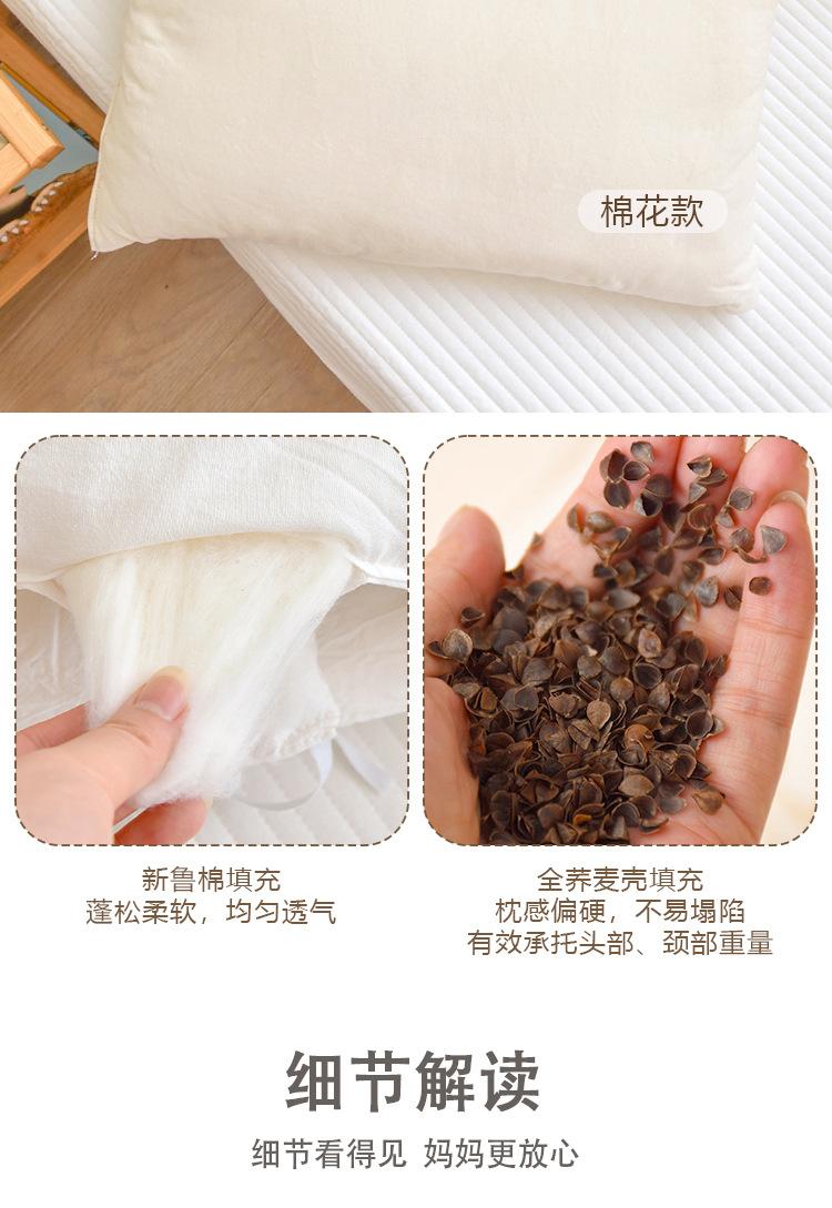 Almohada de algodón para bebés recién nacidos de clase A, de 0 a 1 a 3 años, transpirable, de trigo sarraceno, para la siesta de niños de jardín de infantes.