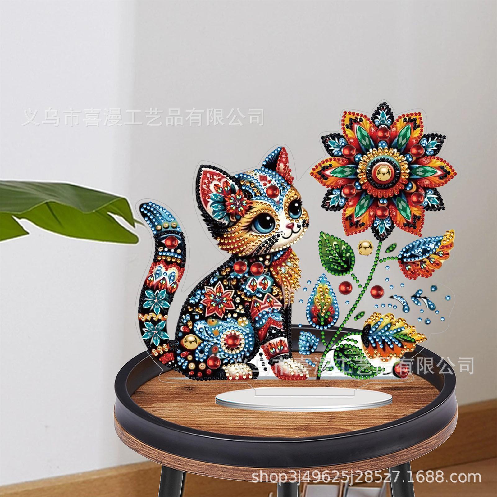 Pintura de diamante 5D, suministro transfronterizo, bricolaje, dibujos animados de gatitos, adornos, decoración del hogar, manualidades, embalaje en caja de color