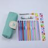 Detalles: 1 bolsa de almacenamiento + 14 ganchos de crochet de aluminio de colores + 1 par de tijeras + 1 cortahilos + 10 marcadores + 1 cinta métrica + 1 botella de 9 agujas + 1 paquete de agujas de sutura + 1 paquete de agujas de torsión