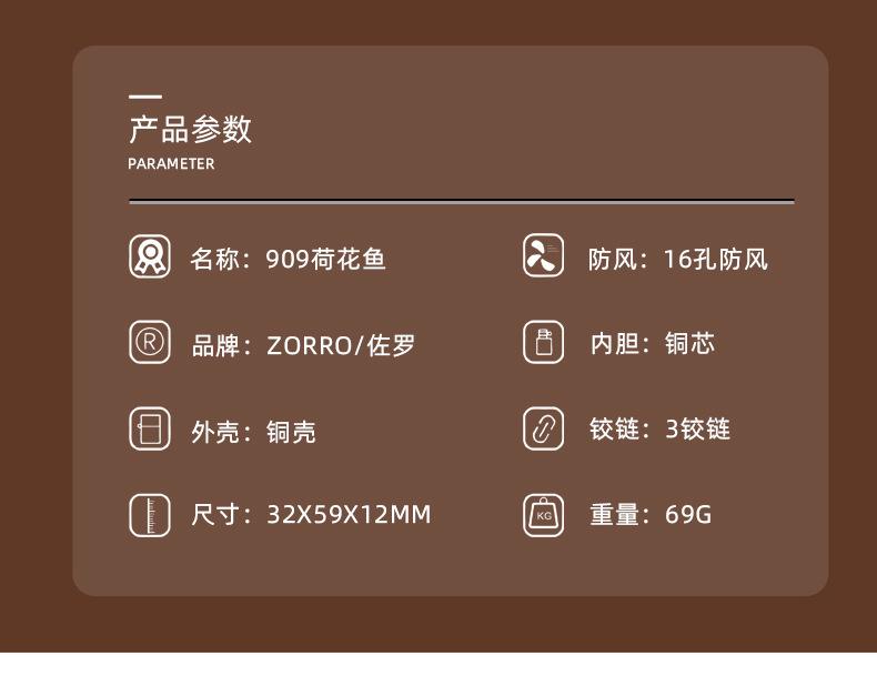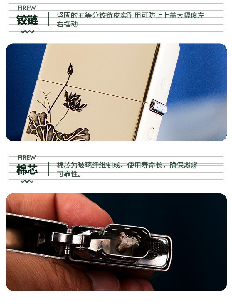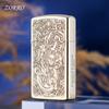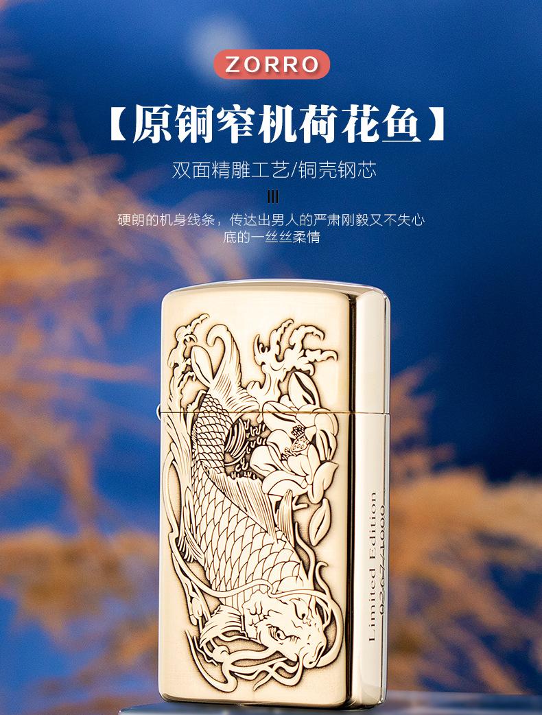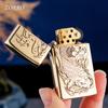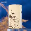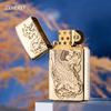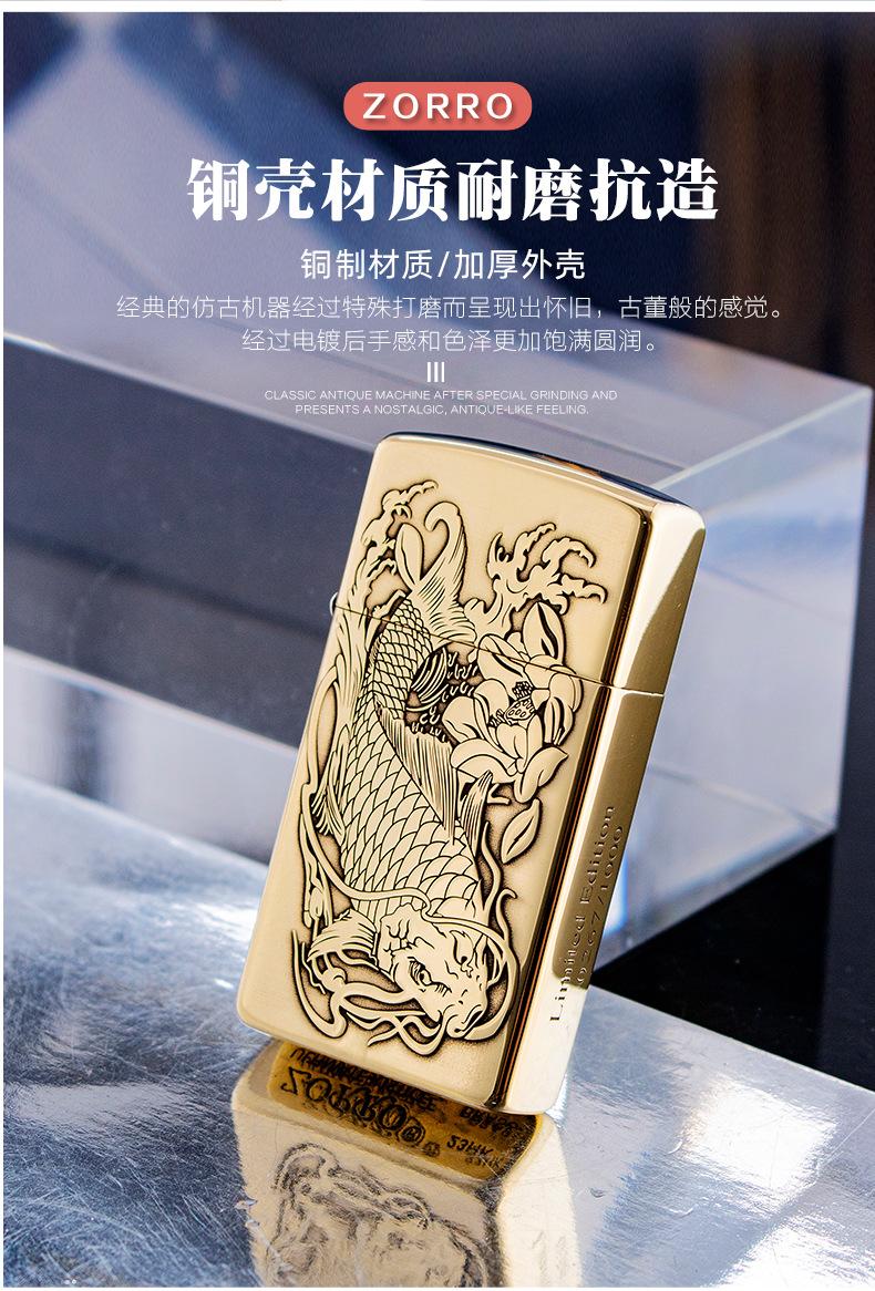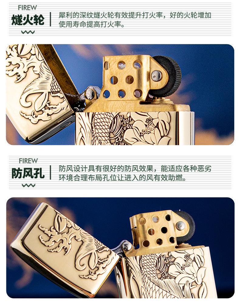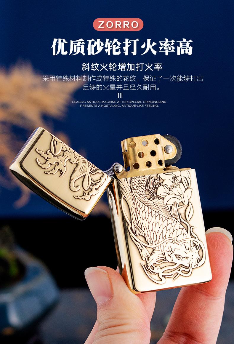 Encendedor de Queroseno Zorro con Relieve de Loto y Pez, Carcasa de Cobre, Diseño Compacto Estrecho a Prueba de Viento, Perfecto como Regalo para Hombres