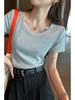 Camiseta chic de estilo coreano de corte ajustado de manga corta hasta el codo, camiseta retro de punto verde de manga corta, top para mujer, verano nuevo