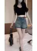 Shorts de Mezclilla Irregulares con Bloques de Color para Mujer, Nuevo Estilo Verano 2025, Tiro Alto, Adelgazantes, Estilo Chica Hot, Pierna Ancha Petite Pantalones Cortos Hot