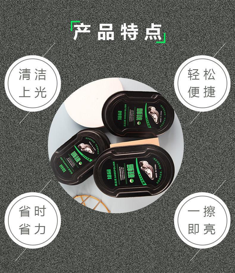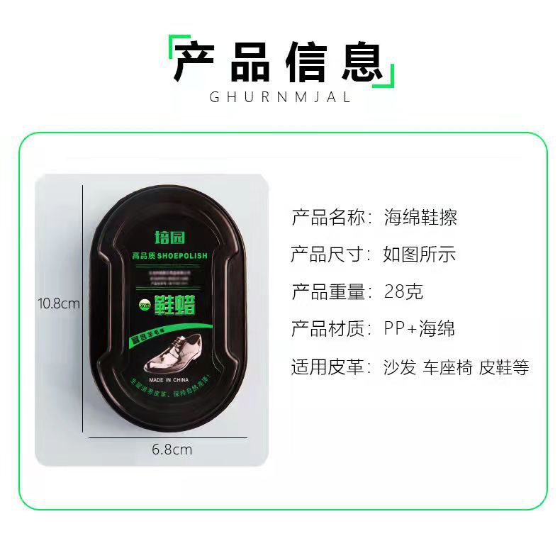 Nombre del producto: Cera para zapatos Artículo No.: HD-8073 Material del producto: PP + esponja Peso del producto: 20g Peso de lanzamiento: 58g Cantidad de embalaje: 400 piezas Tamaño de la caja: 65*45*40cm