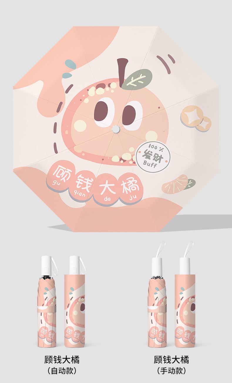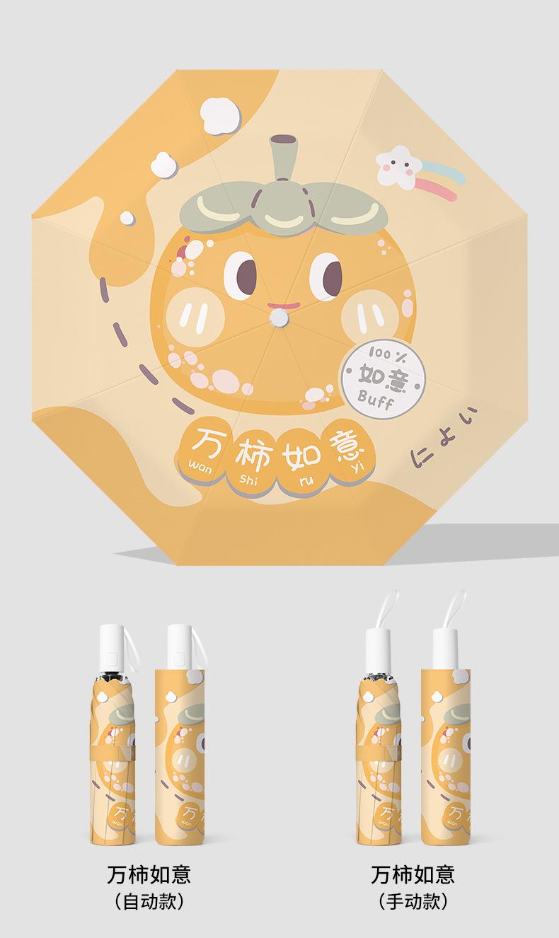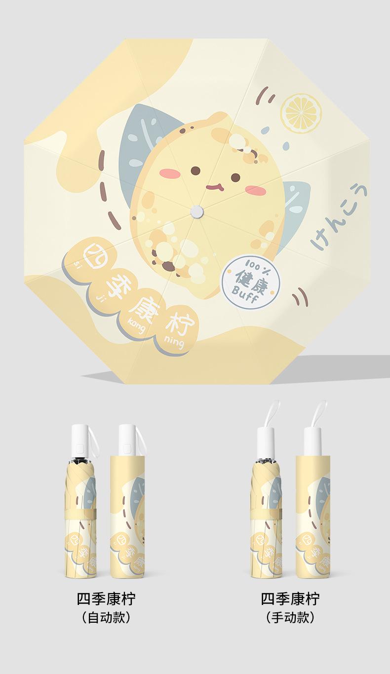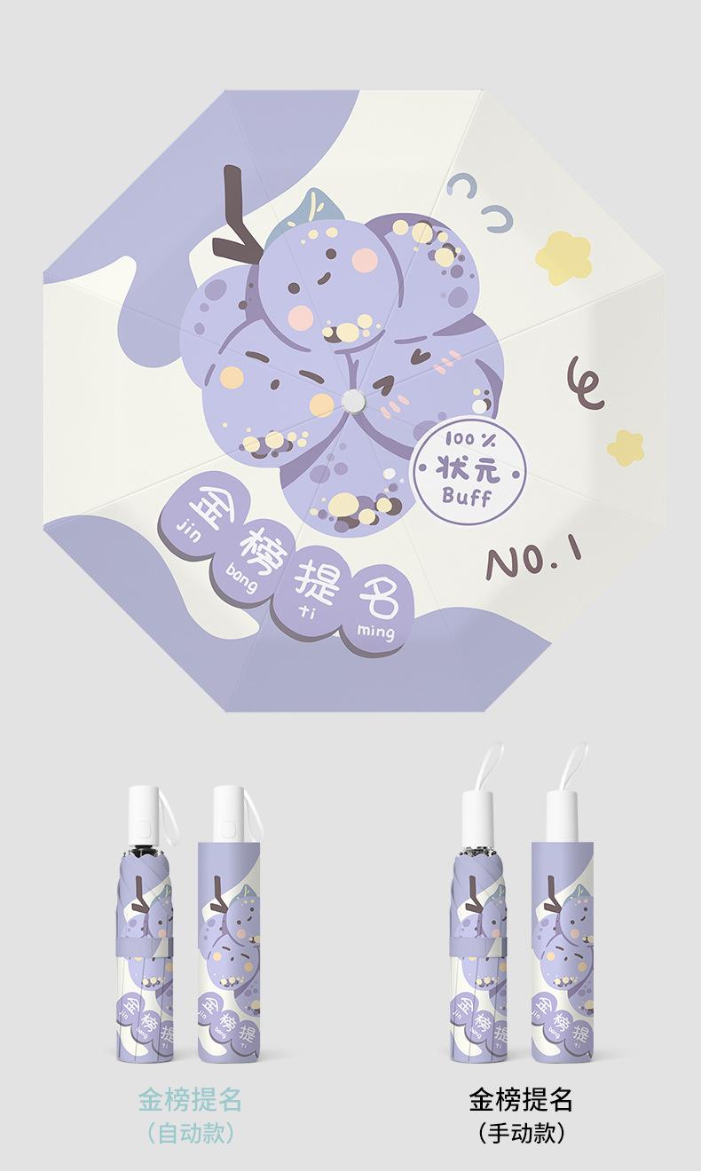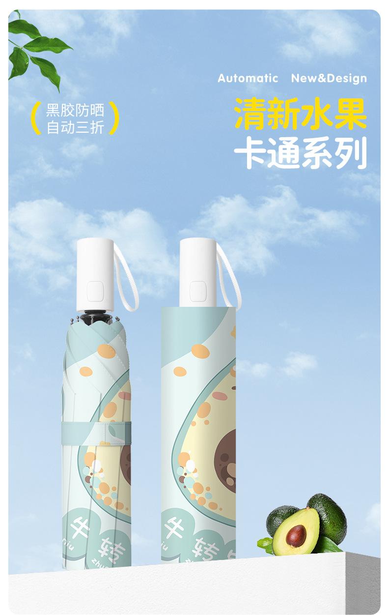 Paraguas plegable portátil de goma negra parasol totalmente automático de dibujos animados de frutas para estudiantes de doble uso impresión de logotipo