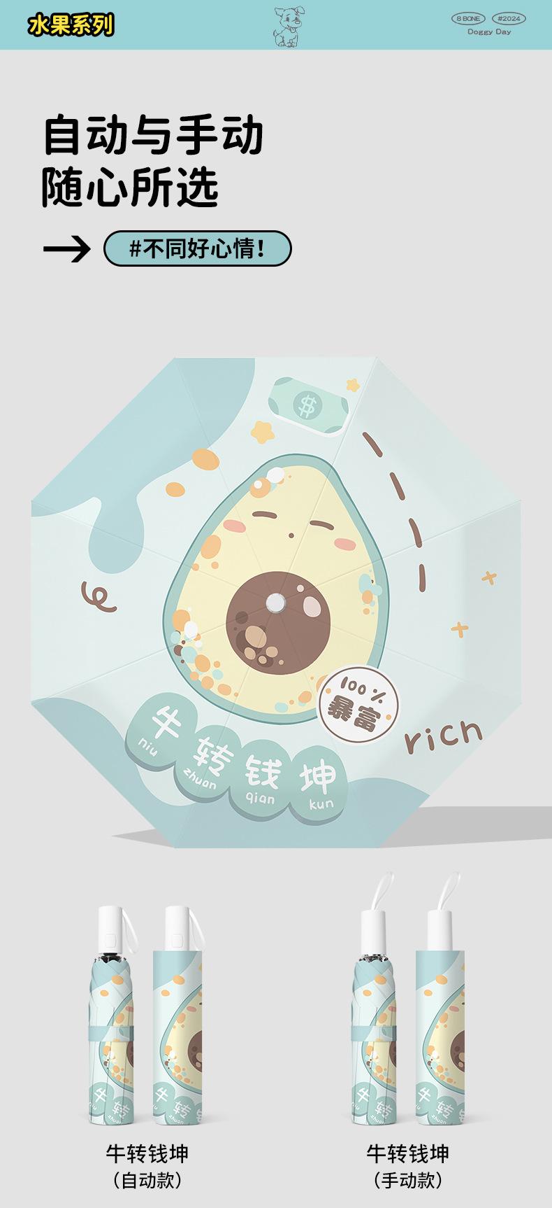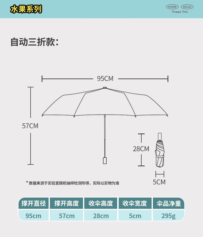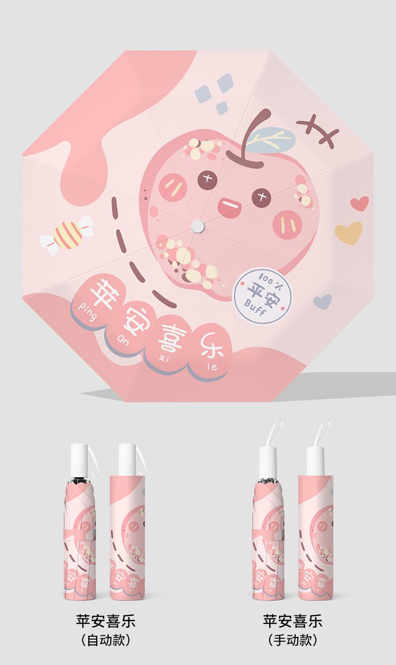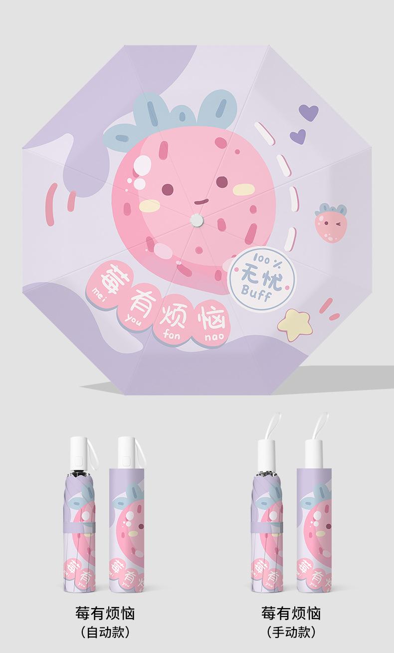 Paraguas plegable portátil de goma negra parasol totalmente automático de dibujos animados de frutas para estudiantes de doble uso impresión de logotipo