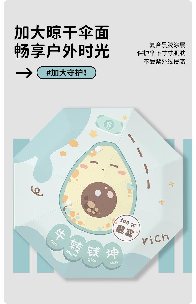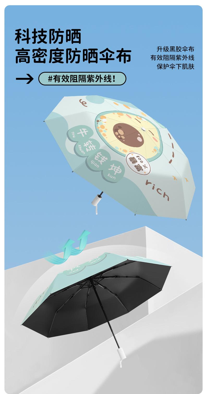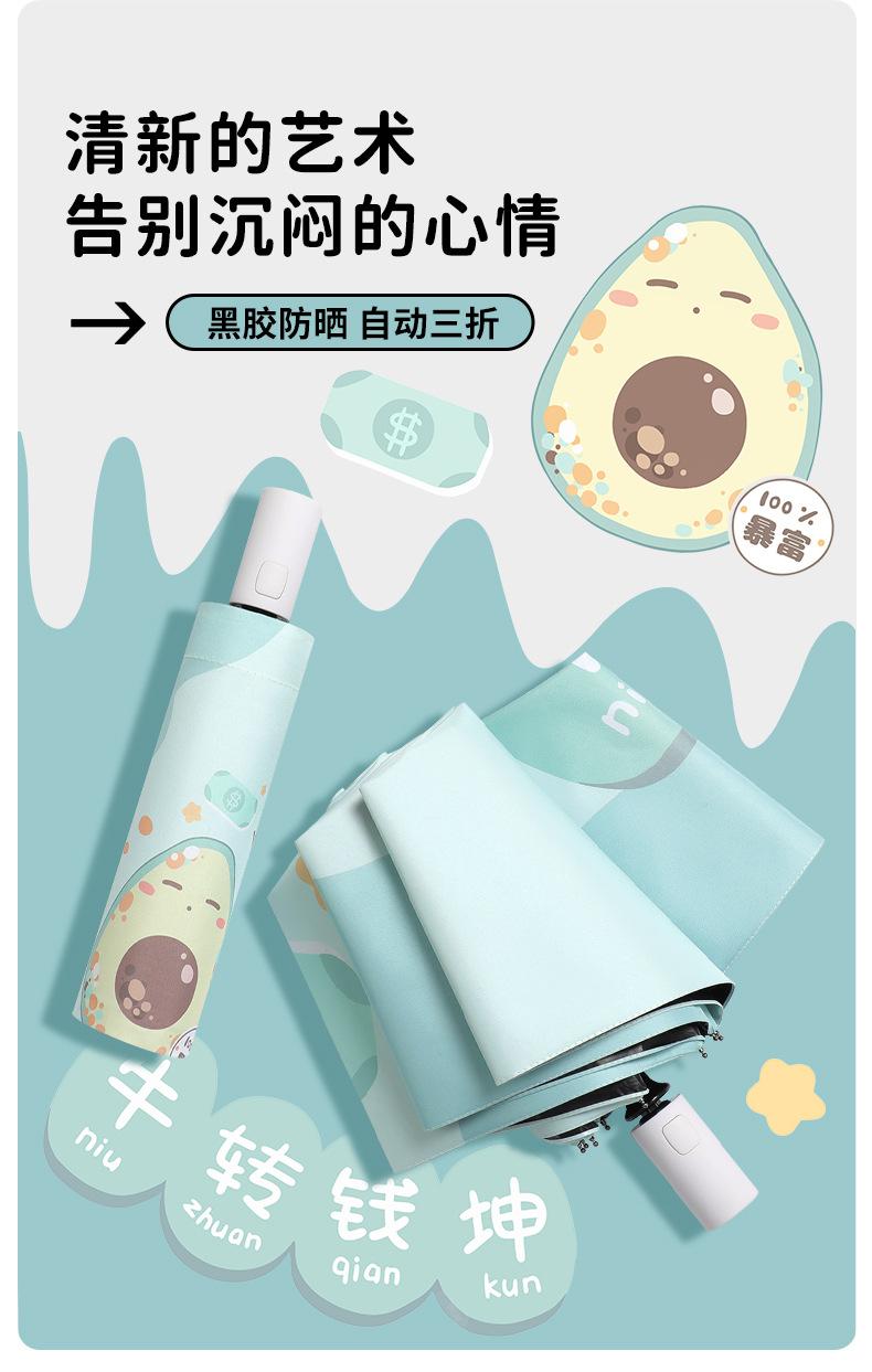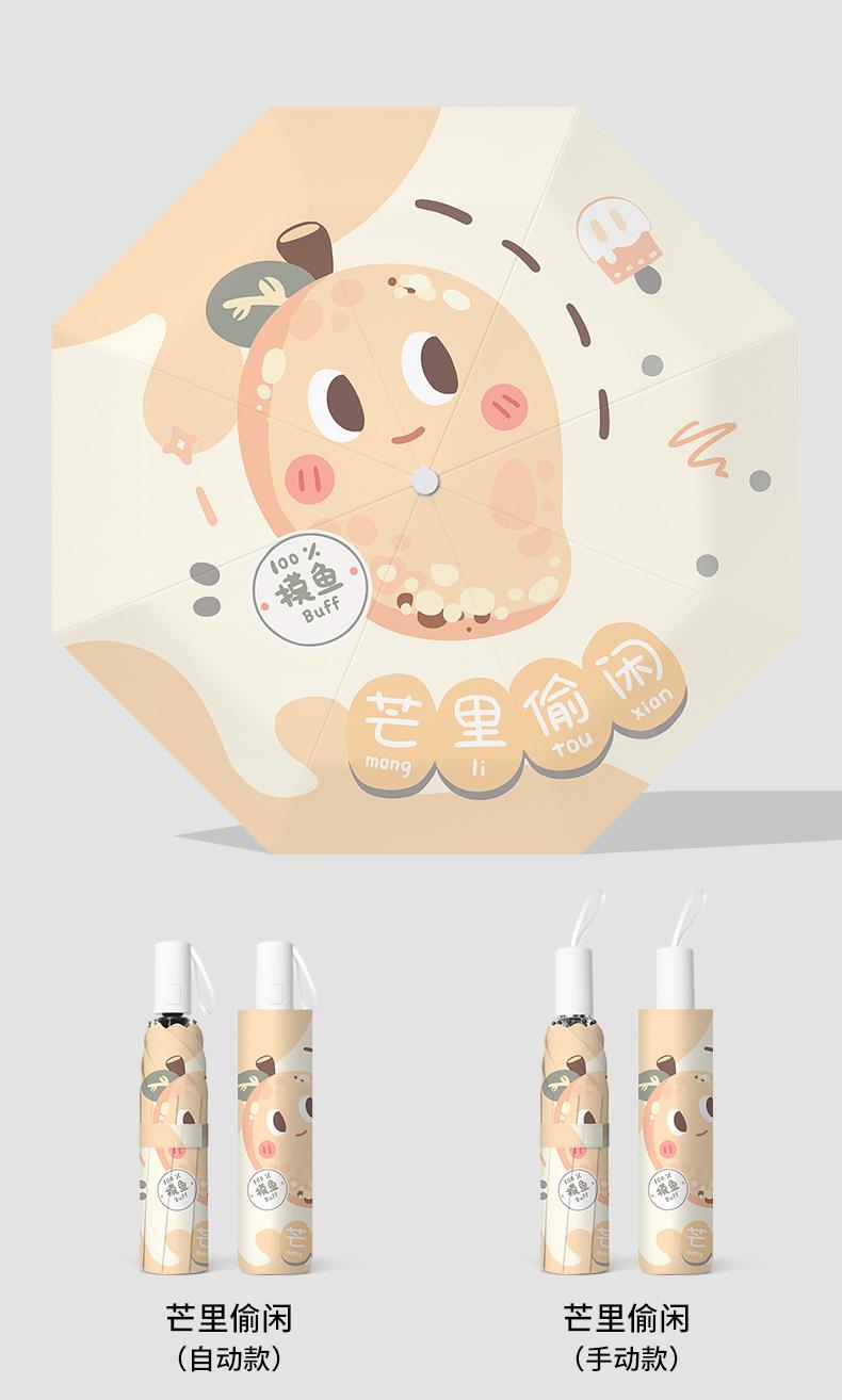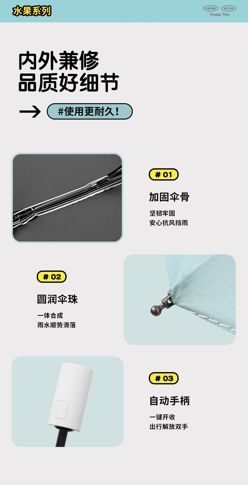 Paraguas plegable portátil de goma negra parasol totalmente automático de dibujos animados de frutas para estudiantes de doble uso impresión de logotipo