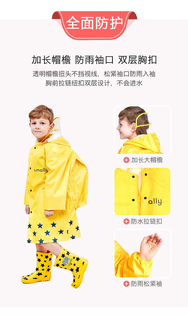 Impermeable Smally para Niños y Niñas, Impermeable de Cuerpo Completo con Espacio para Mochila Escolar, Ropa Especial a Prueba de Lluvia para Estudiantes de Primaria para Ir a la Escuela