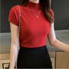 Suéter interior de punto de media manga y cuello alto para mujer, camiseta básica de otoño e invierno, chaleco corto ajustado para uso exterior.