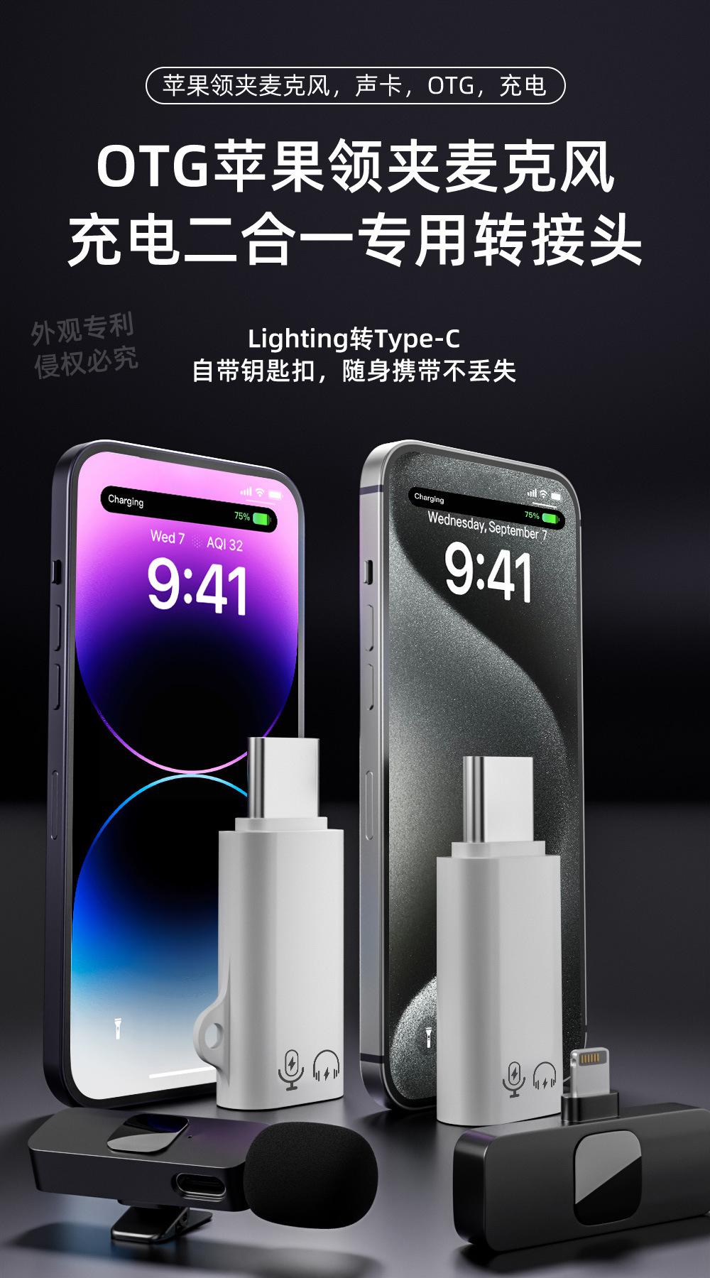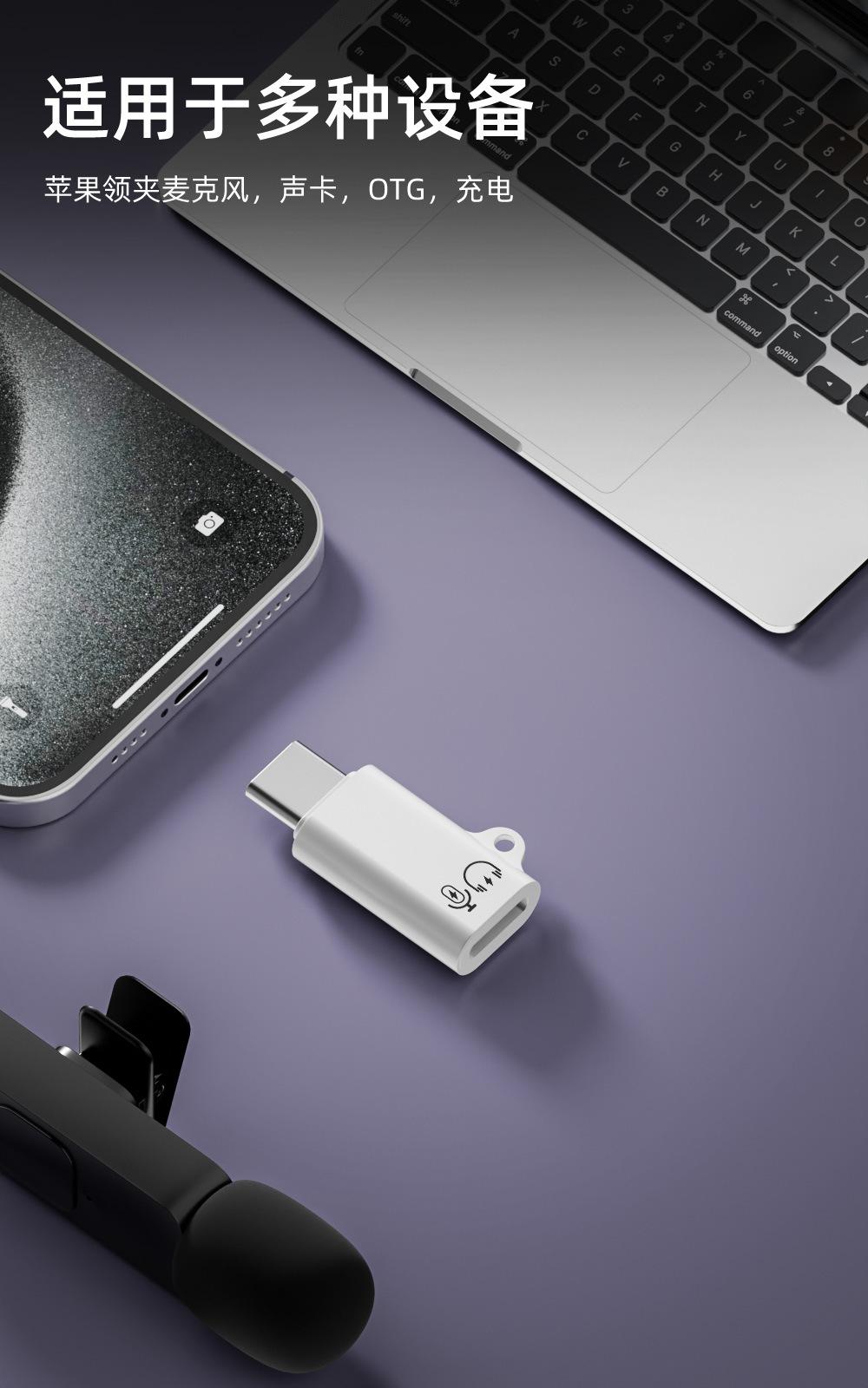 Nuevo producto para lightning a tipo-c Apple 15 micrófono de solapa adaptador de audio soporte OTG
