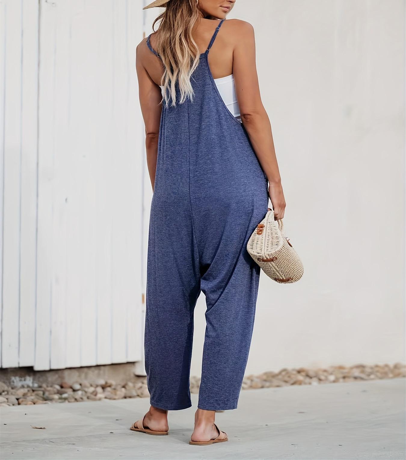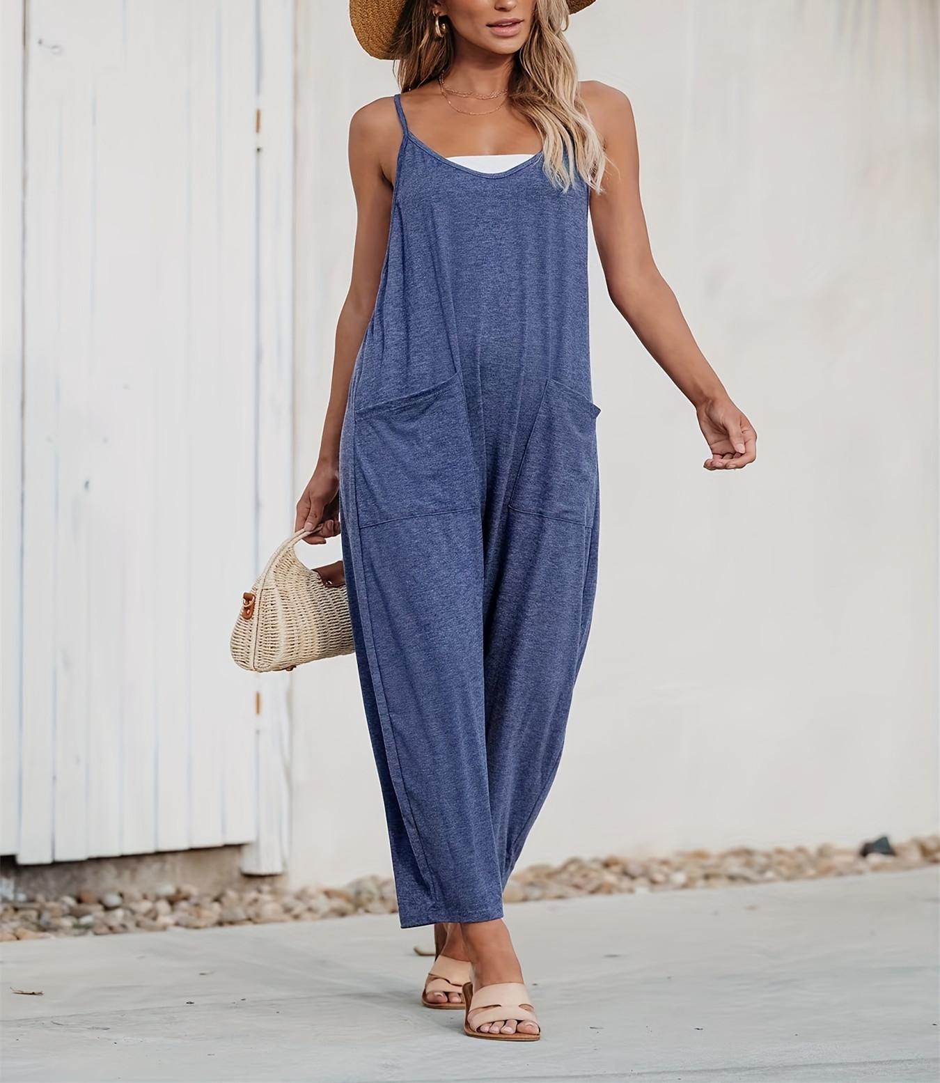 Mono de punto con tirantes y bolsillo para mujer, estilo casual, Amazon, verano 2024, estilo europeo y americano