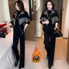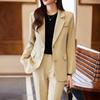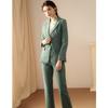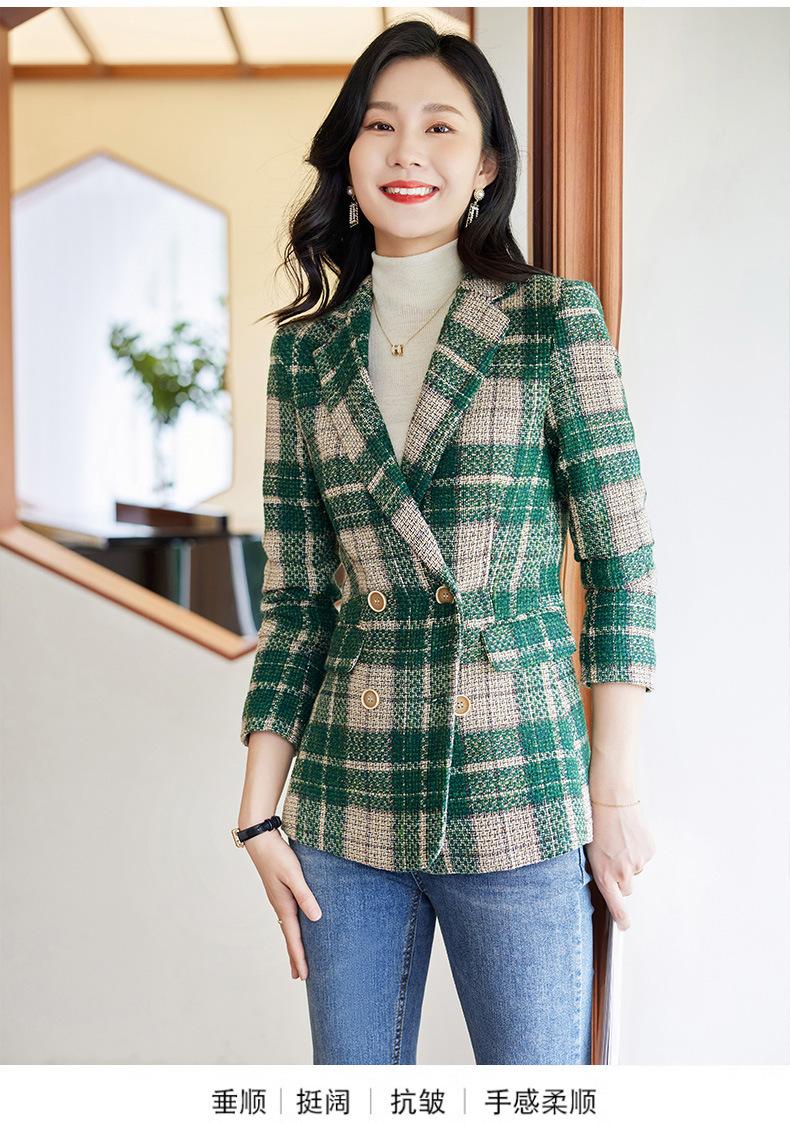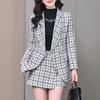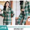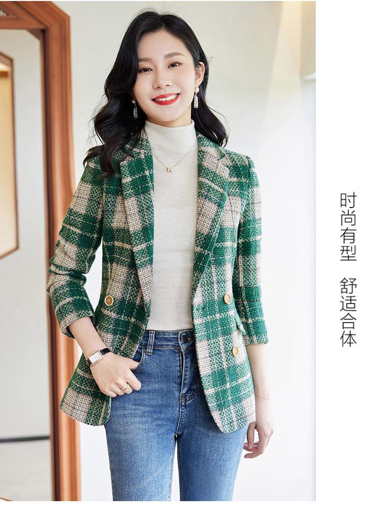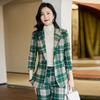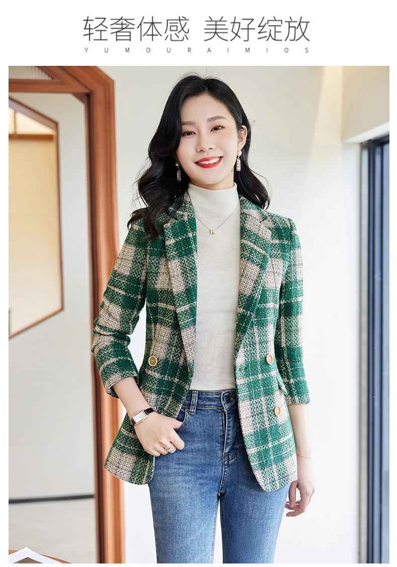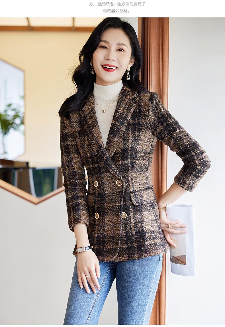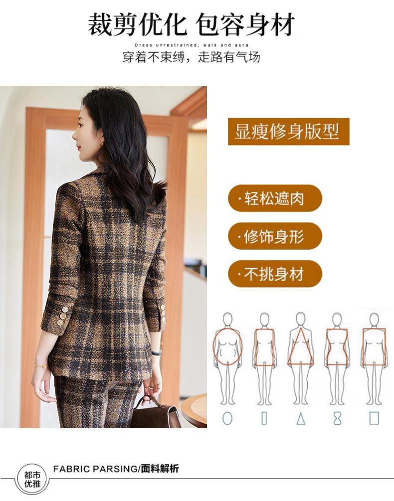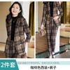 2020 Otoño e Invierno nuevo marrón cuadros manga larga traje pequeño cuello chaqueta mujer pantalones dos piezas traje viajero