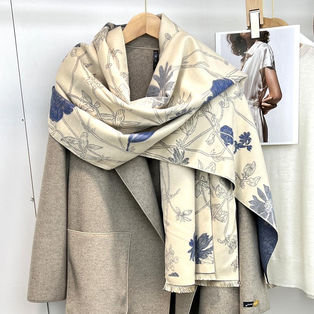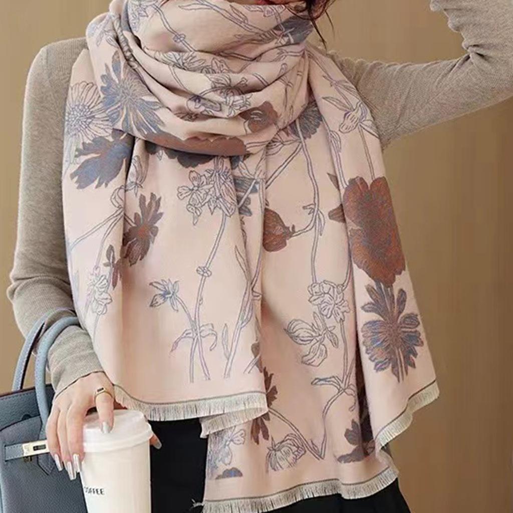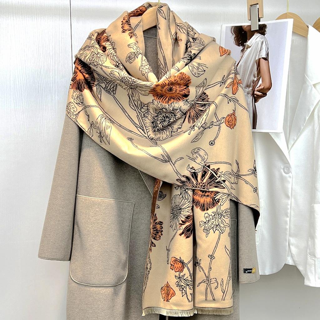 Bufanda de mujer para otoño e invierno, gruesa, cálida, con estampado coreano, de cachemira, para estudiantes, de doble cara, moderna y con aire acondicionado.