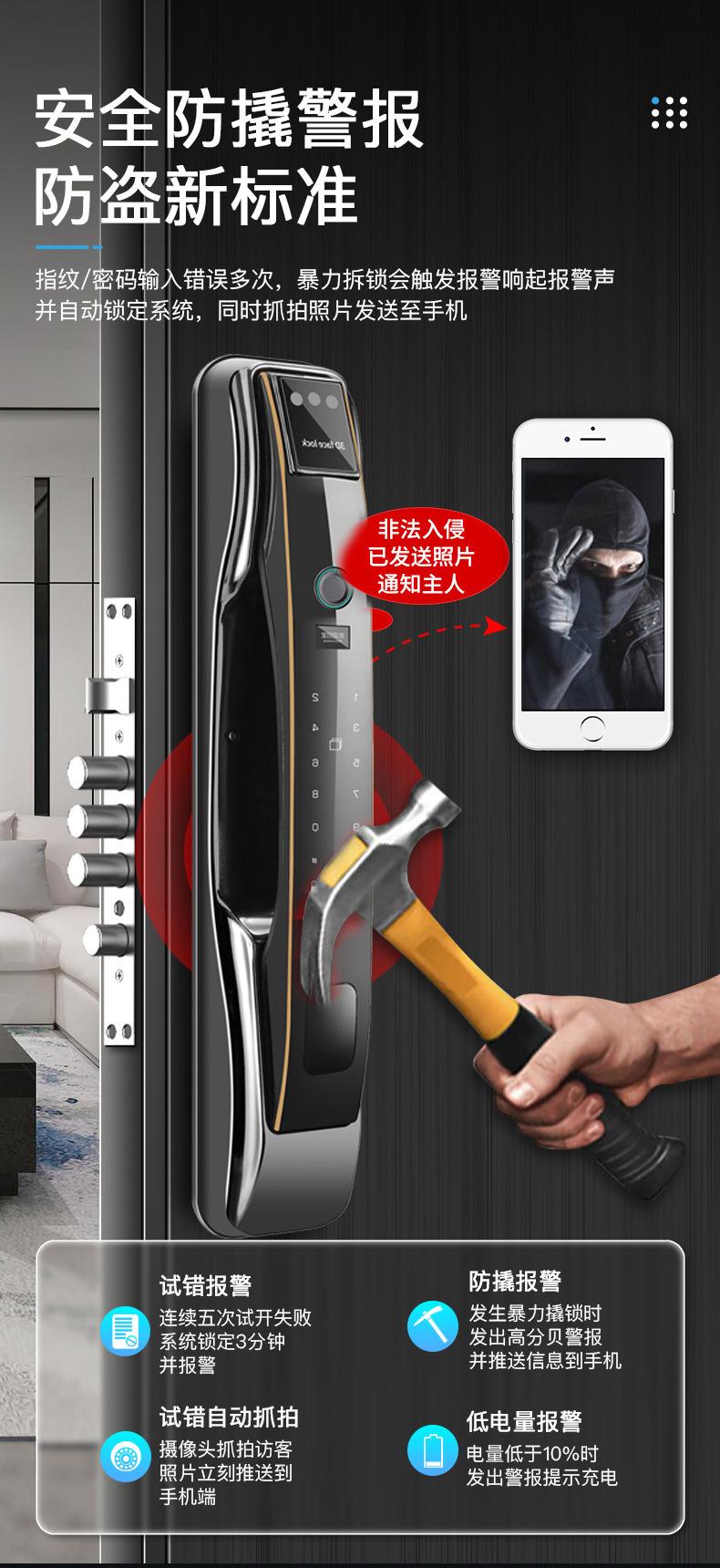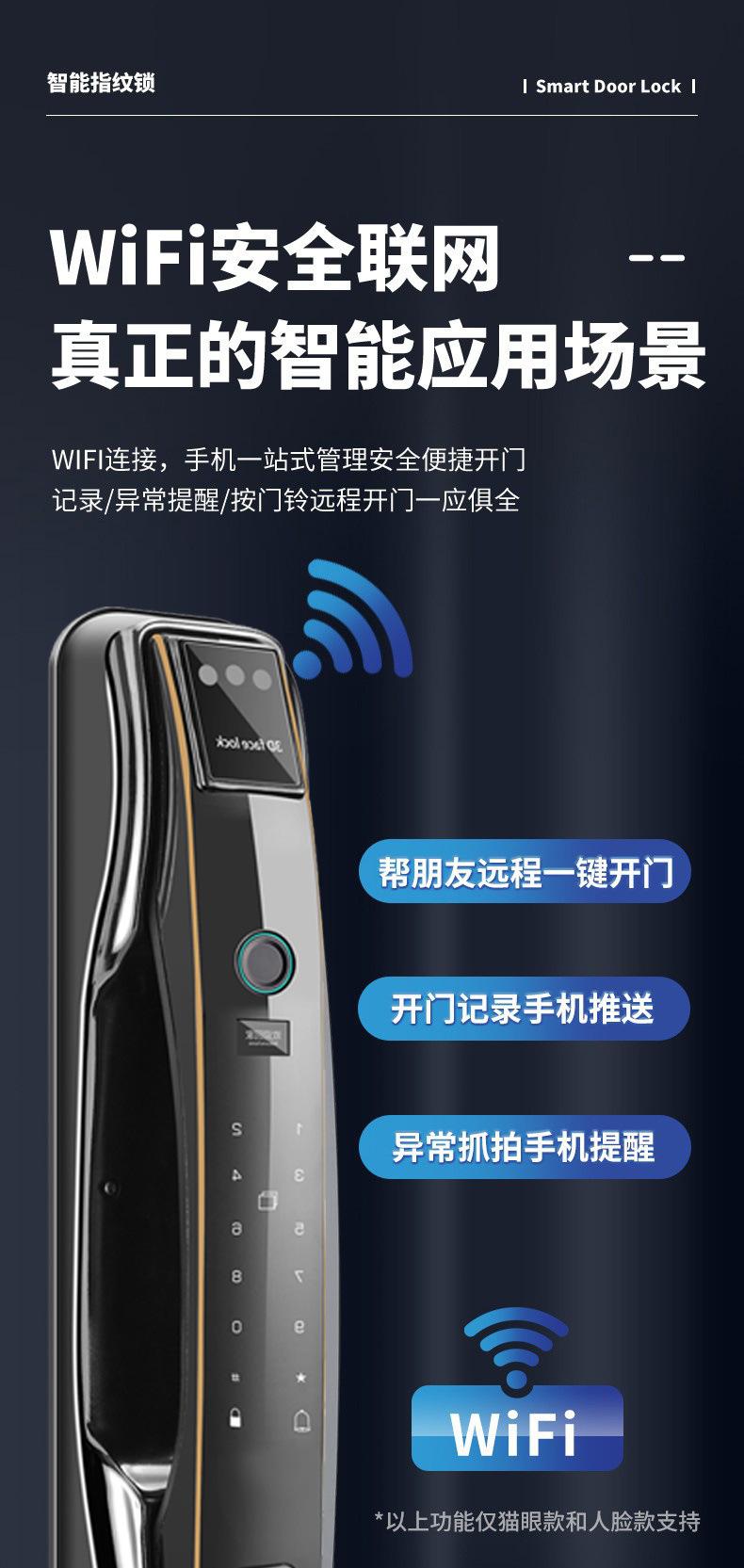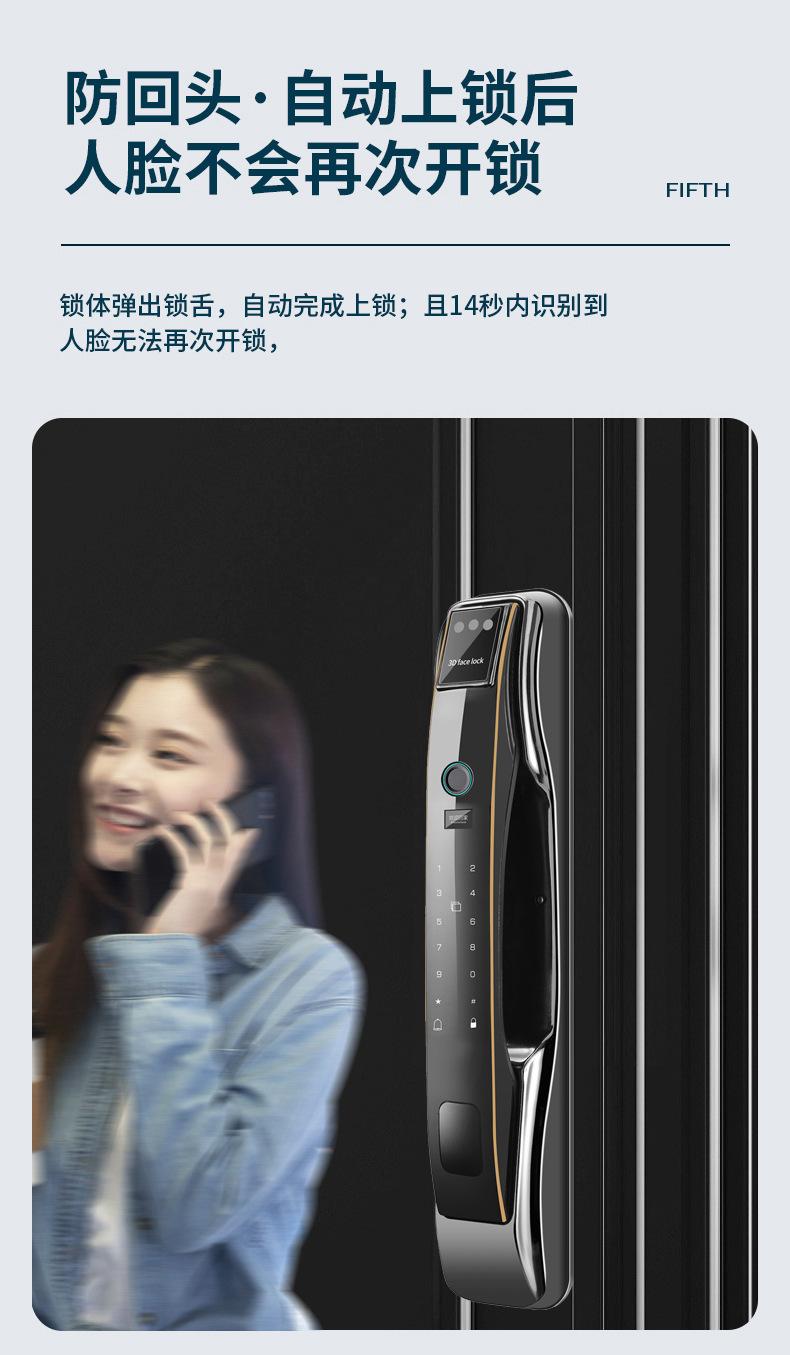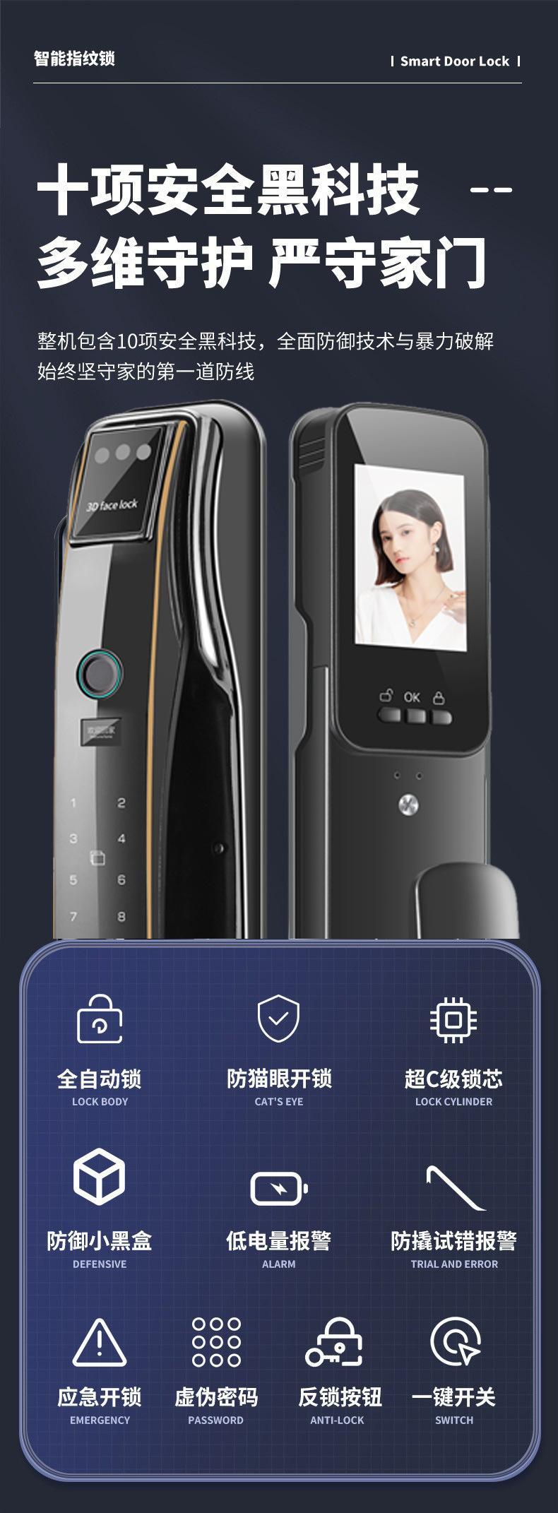 Fingerprint, Password, With key, visible cat's eye, face recognition, Remote Unlock