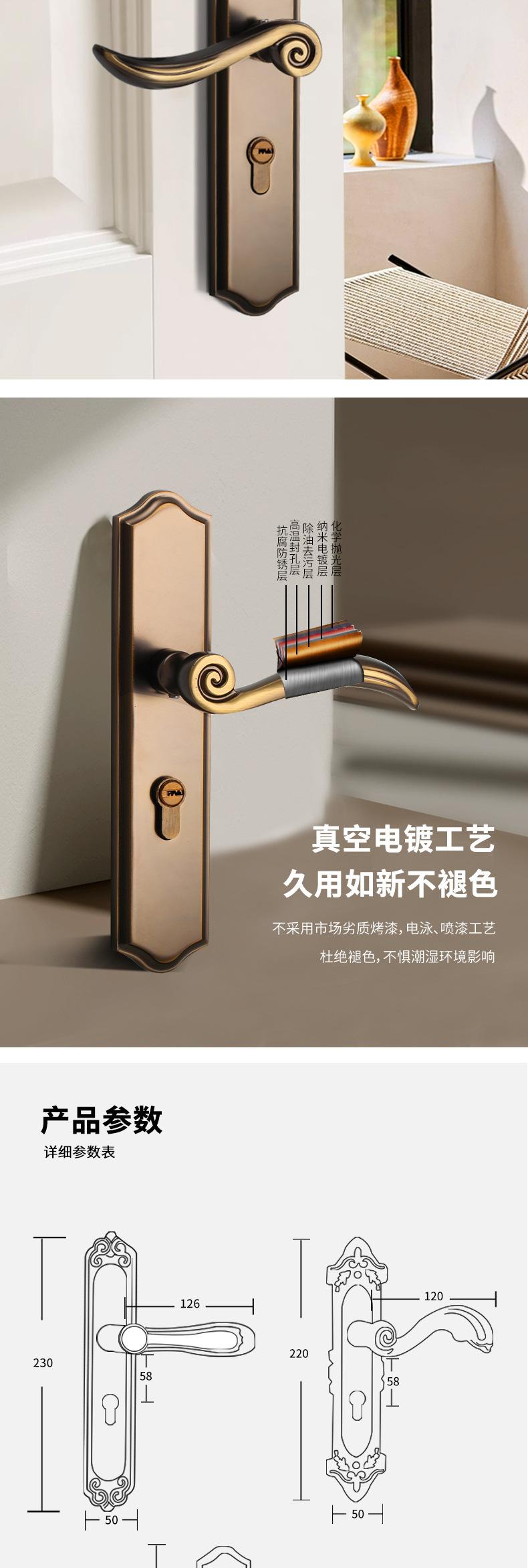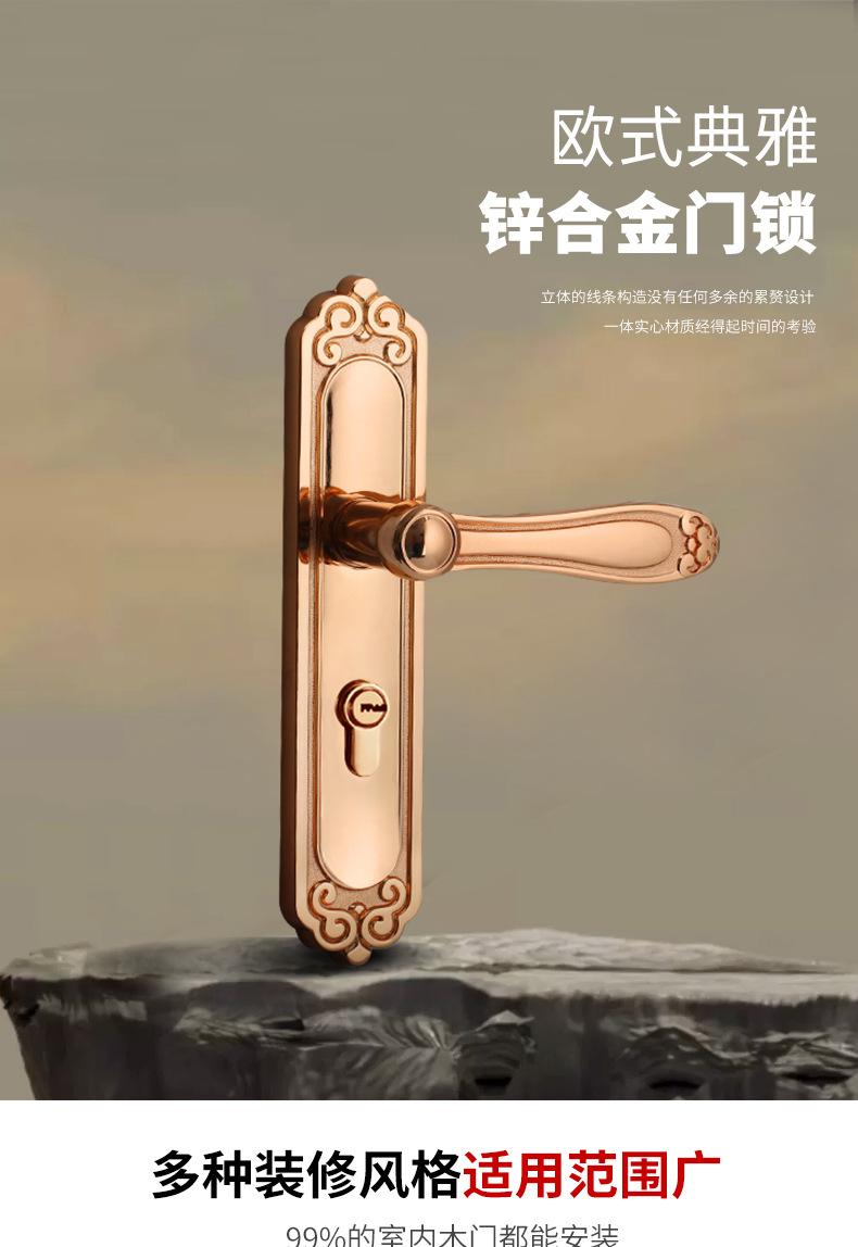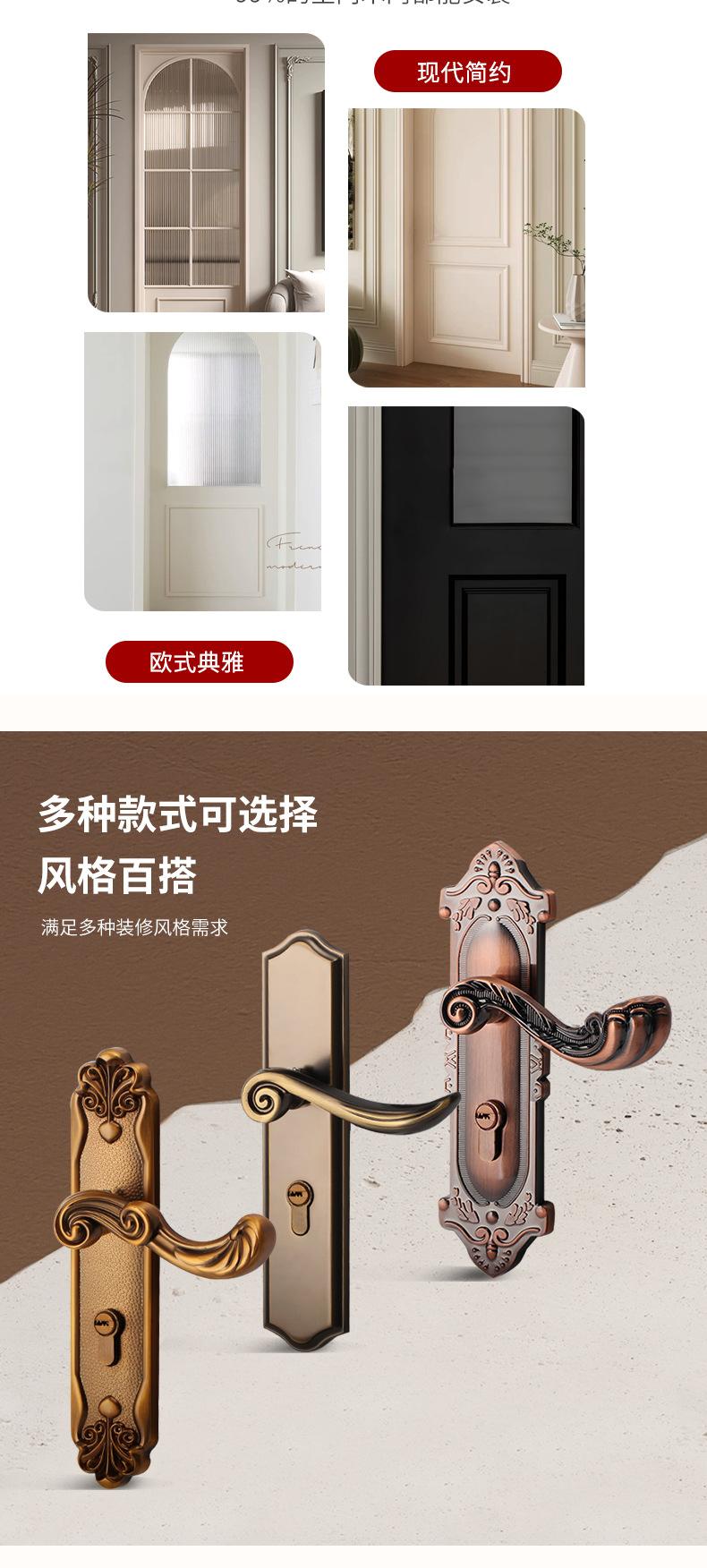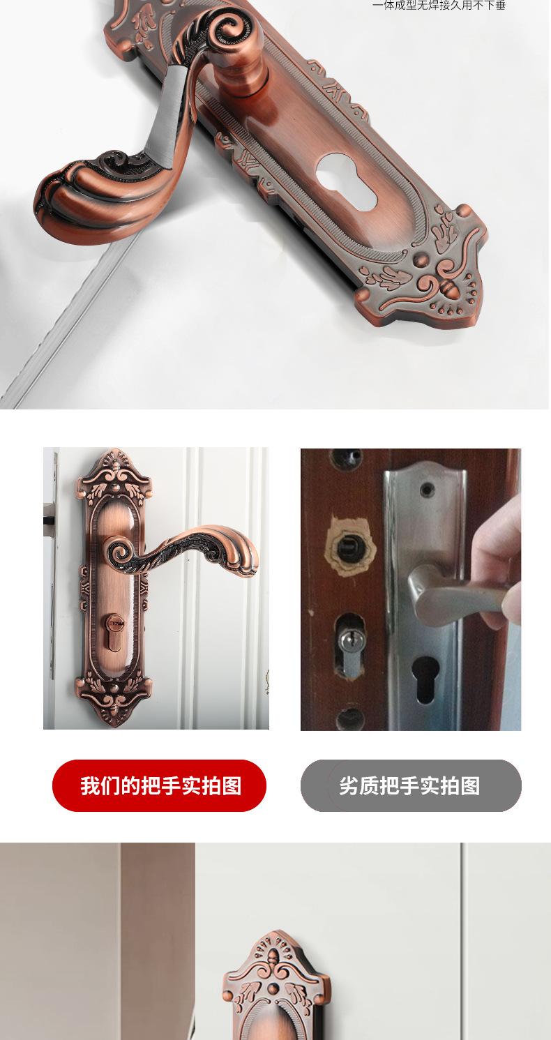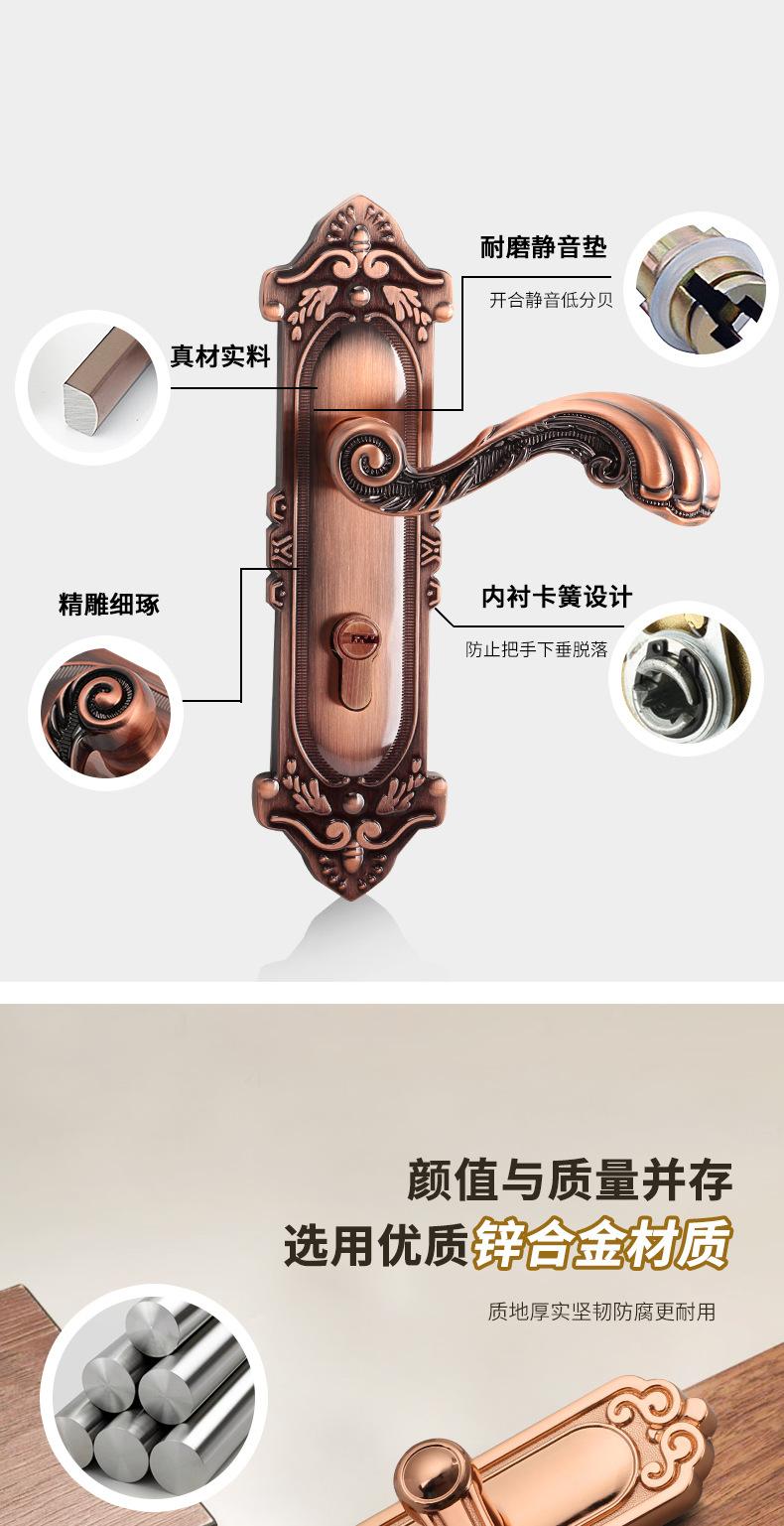 Cerradura de puerta interior estilo europeo dormitorio cerradura integrada manija de aleación de zinc bronce habitación silenciosa cerradura mecánica para puerta de madera