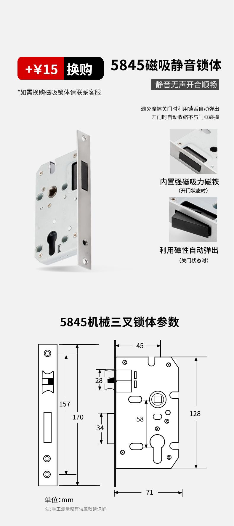 Standard 5845 mechanical mute lock body, can be upgraded to magnetic attraction