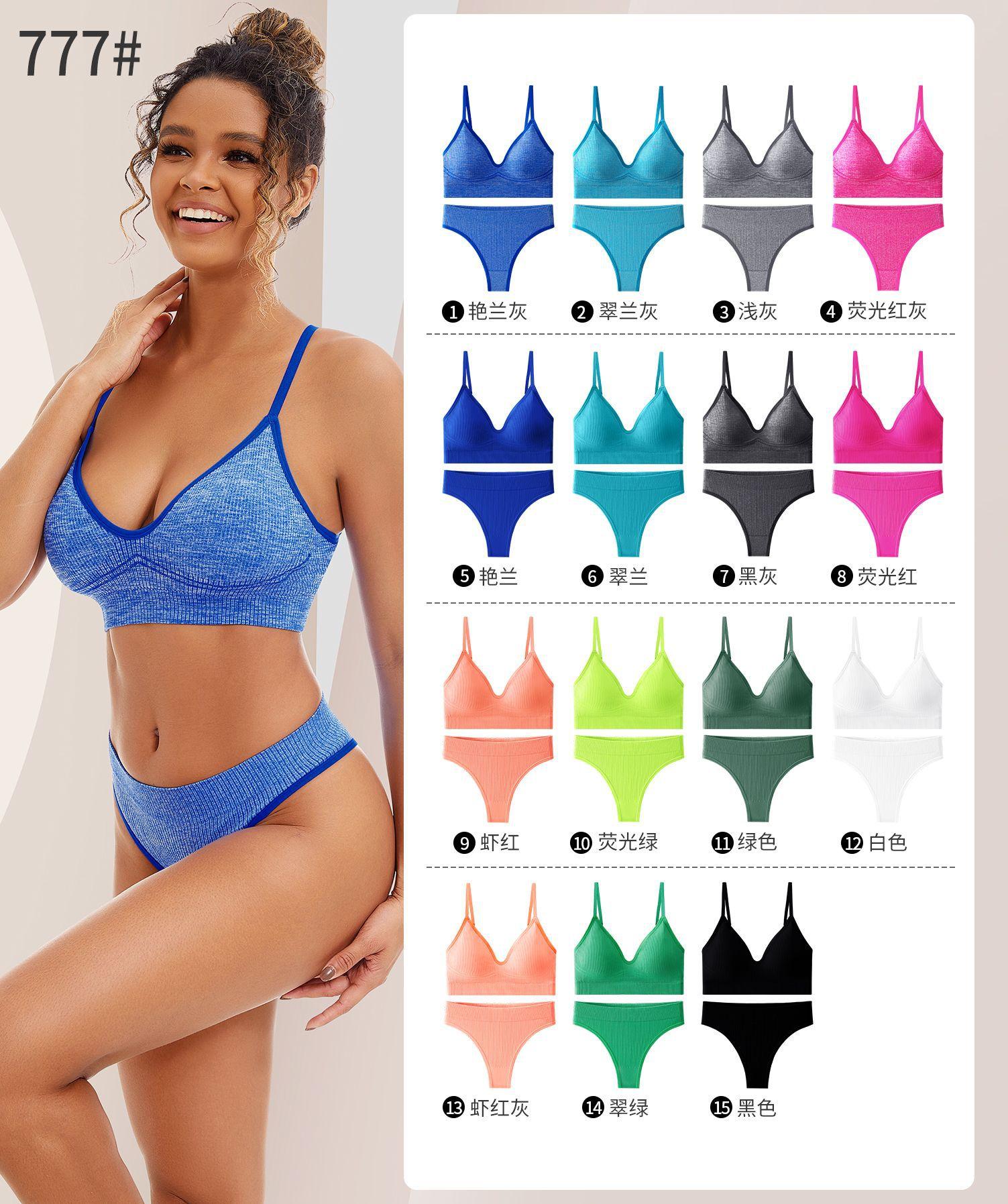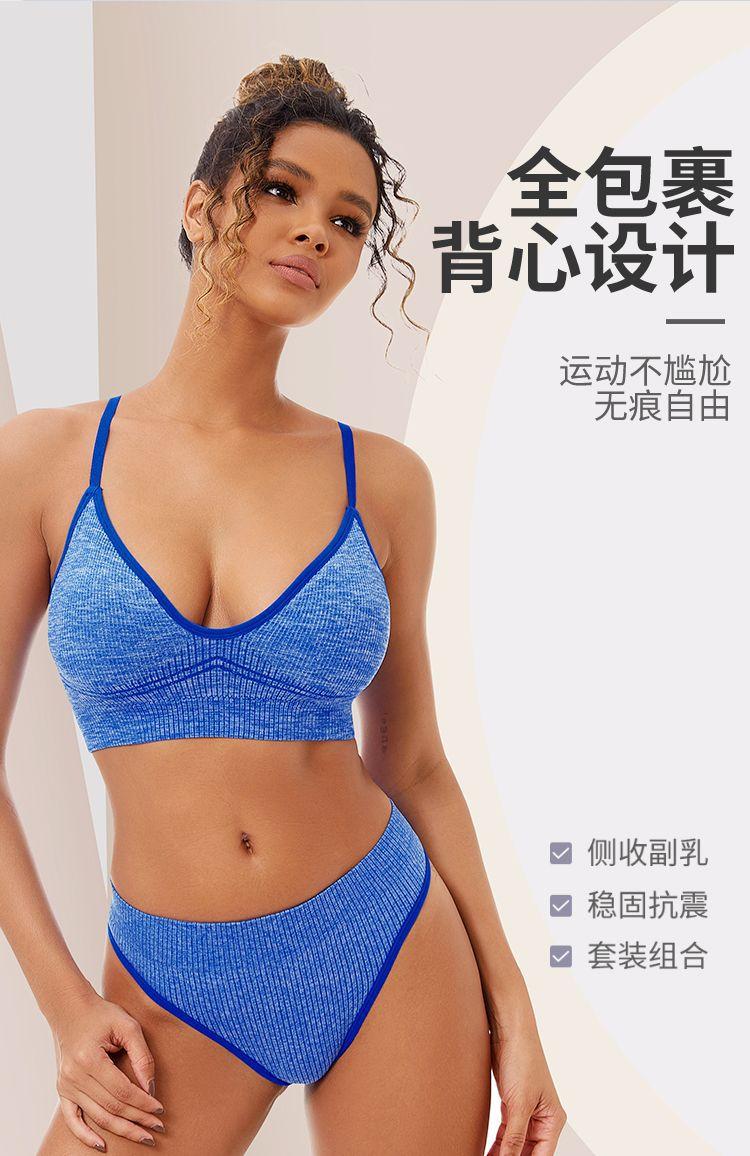 Set de Ropa Interior de Comercio Exterior Transfronterizo Sujetador Deportivo Yoga a Prueba de Golpes Tanga Tirantes Ajustables Copa Completa