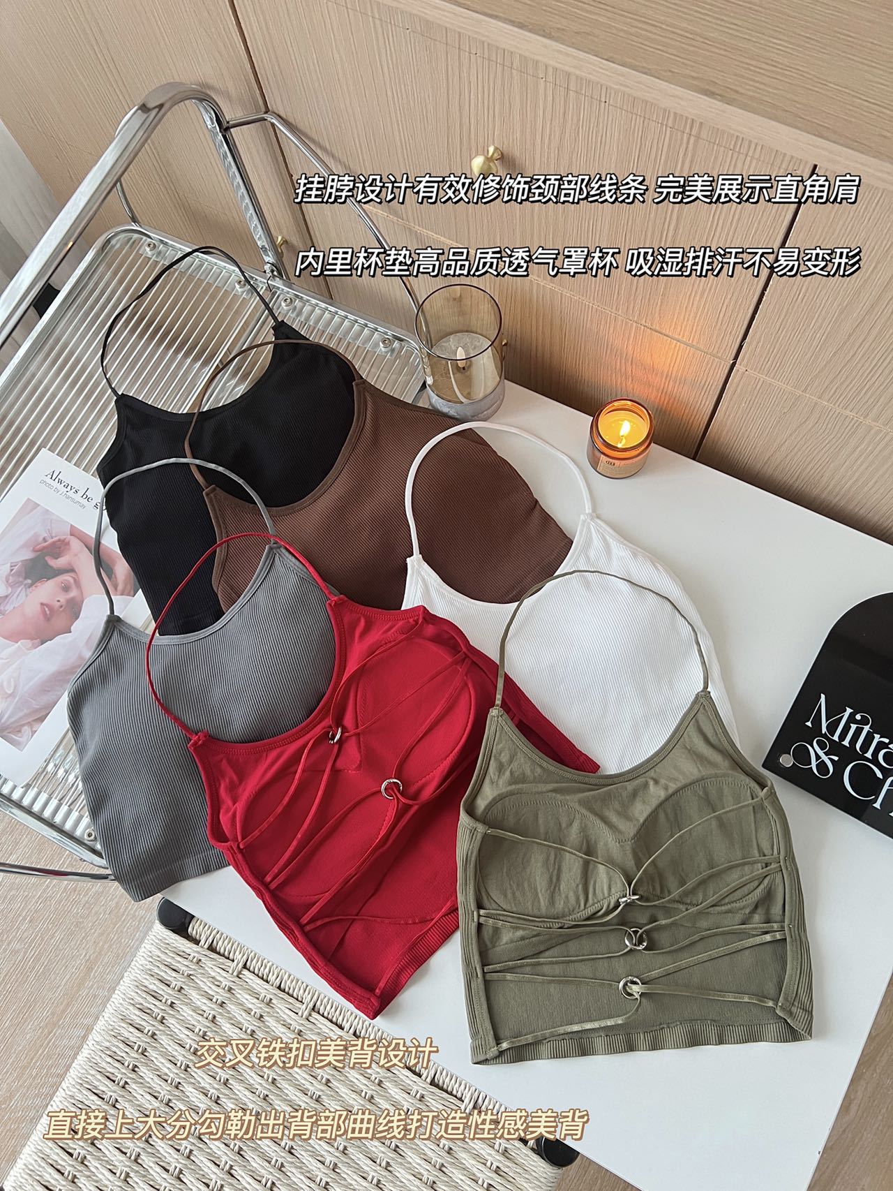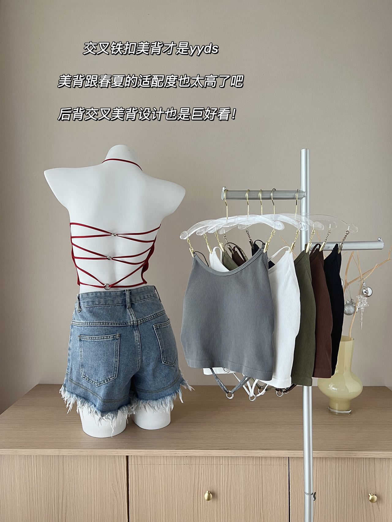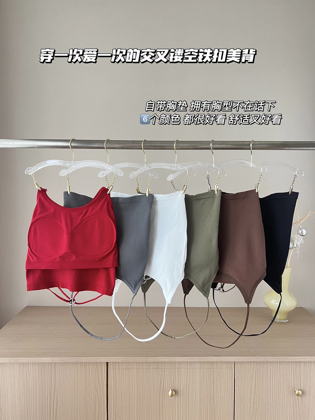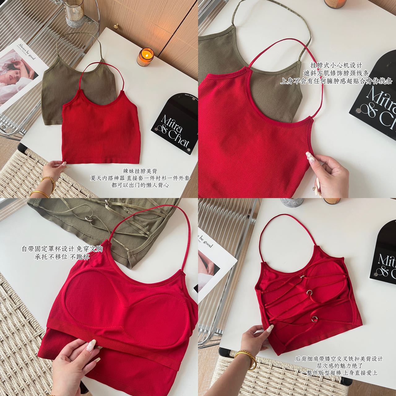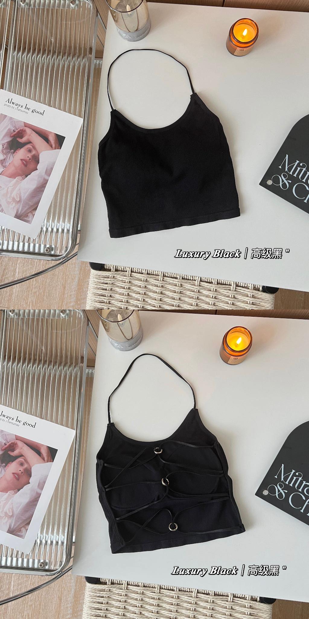 Ropa interior de verano para mujer con tirantes cruzados, escote cuadrado negro, espalda hueca, tirantes pequeños, chaleco acolchado.