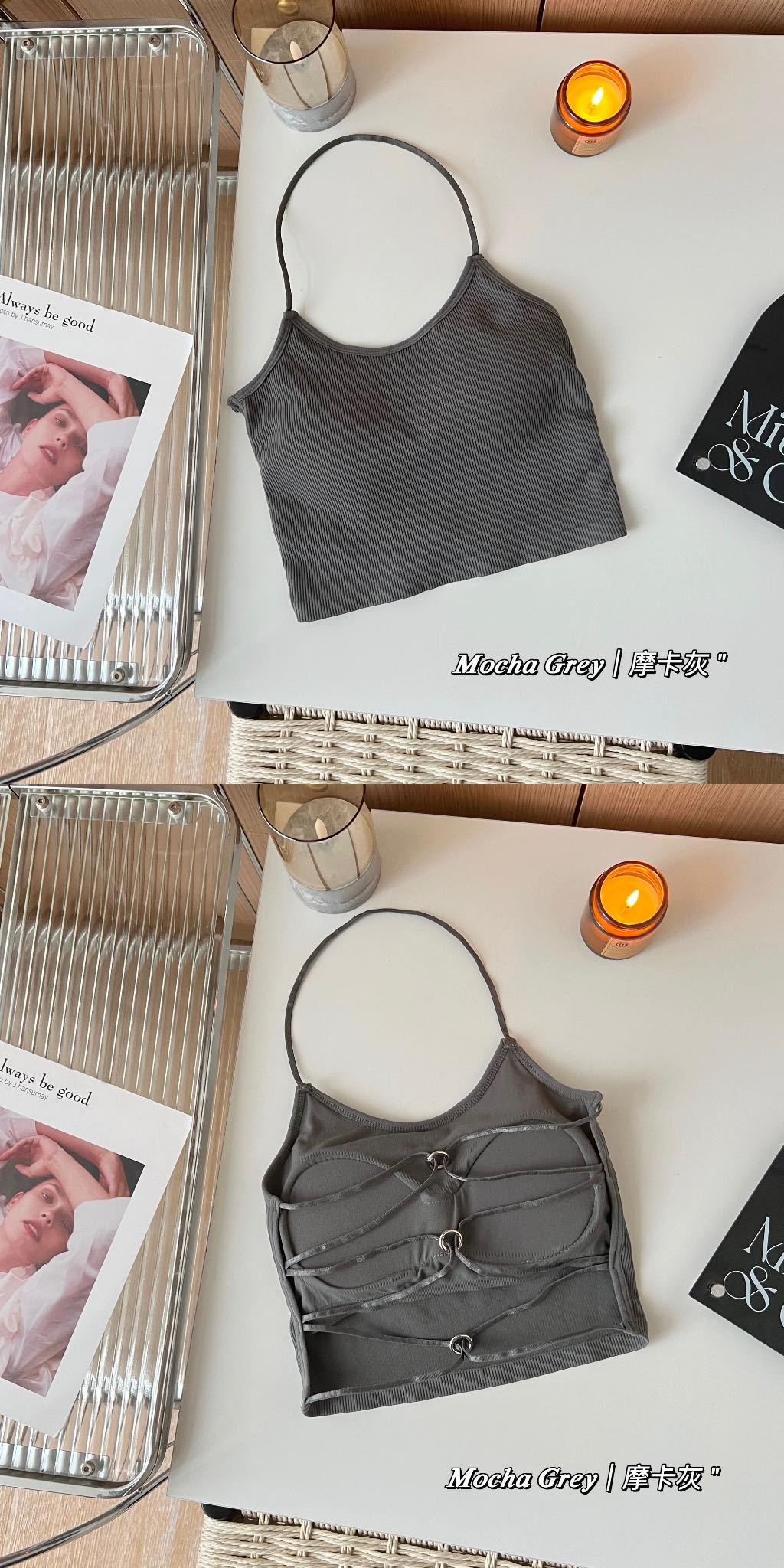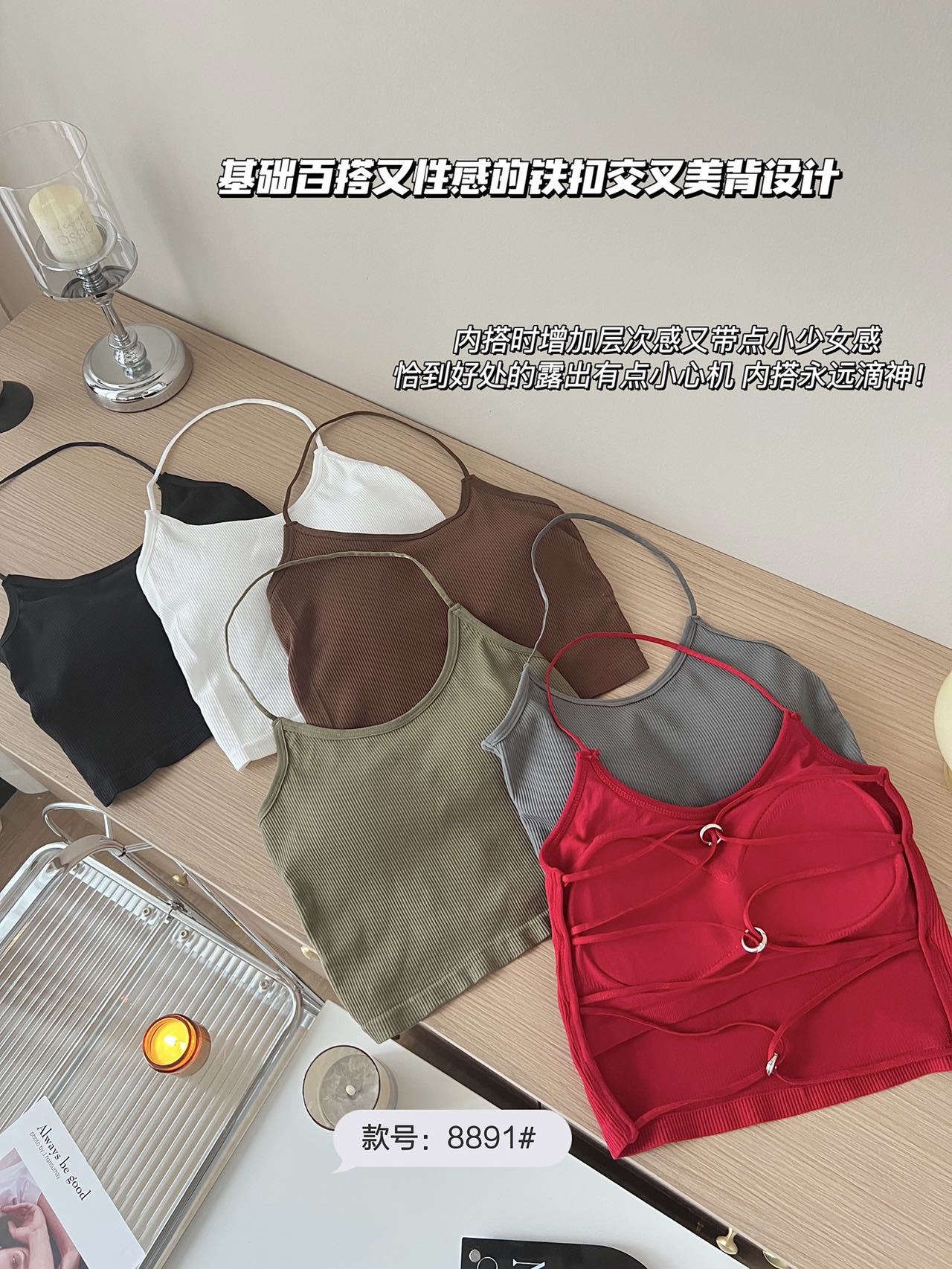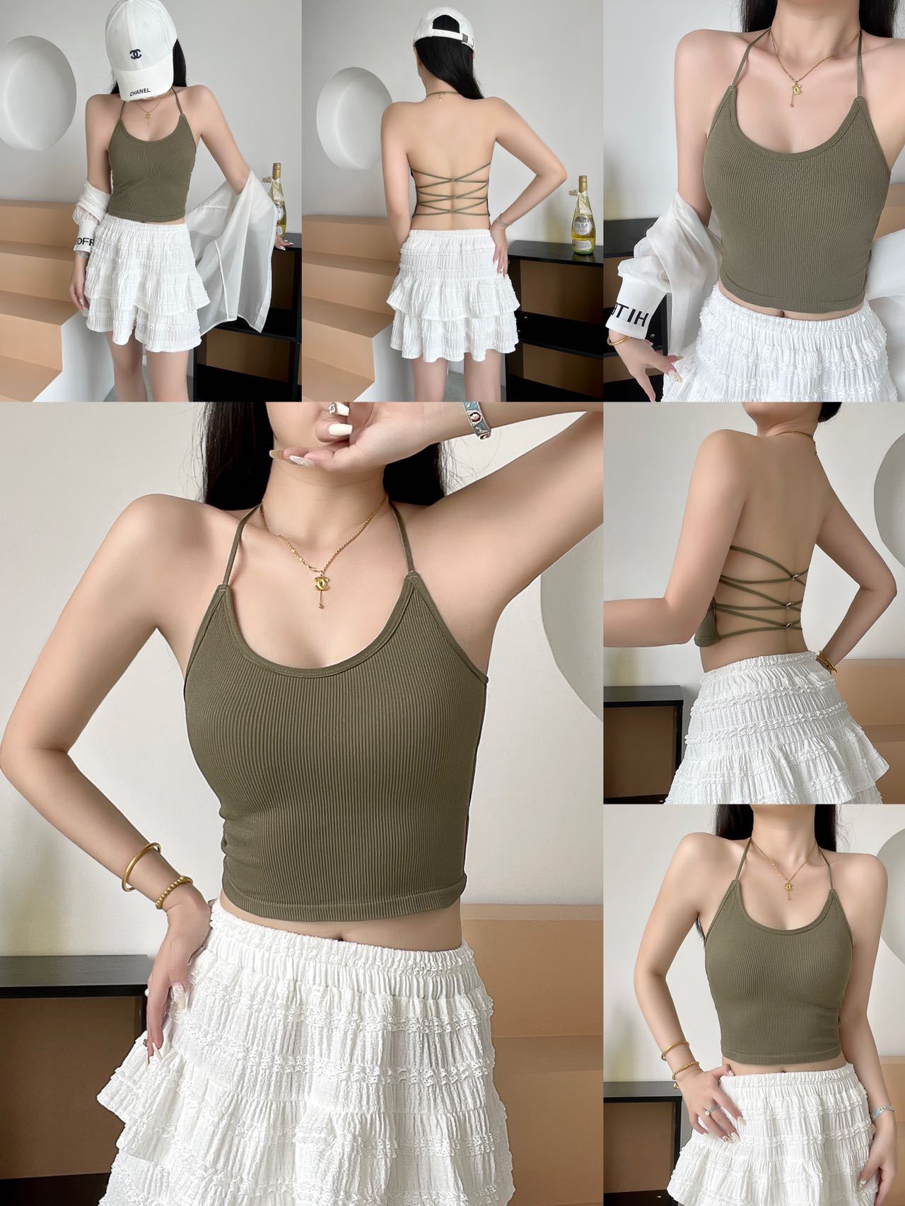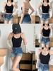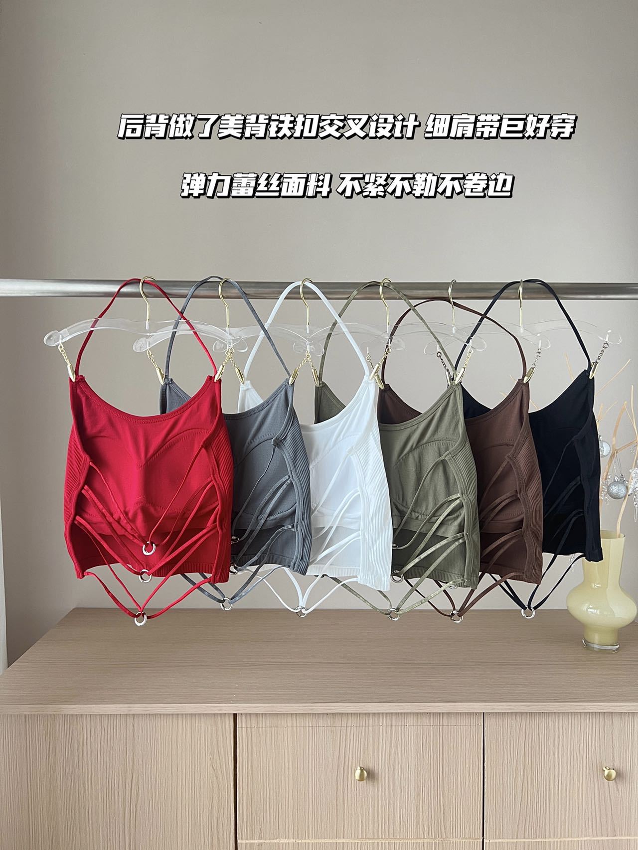 Ropa interior de verano para mujer con tirantes cruzados, escote cuadrado negro, espalda hueca, tirantes pequeños, chaleco acolchado.