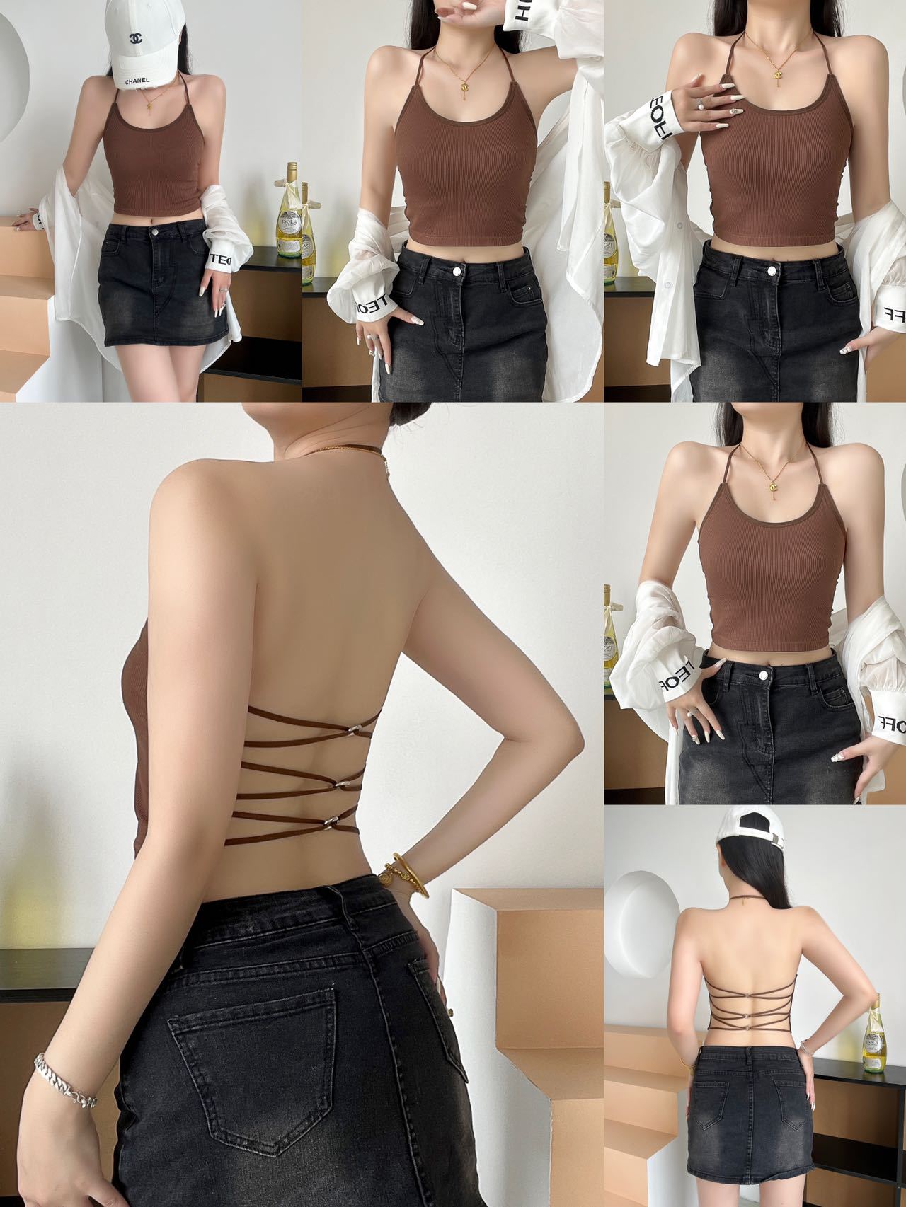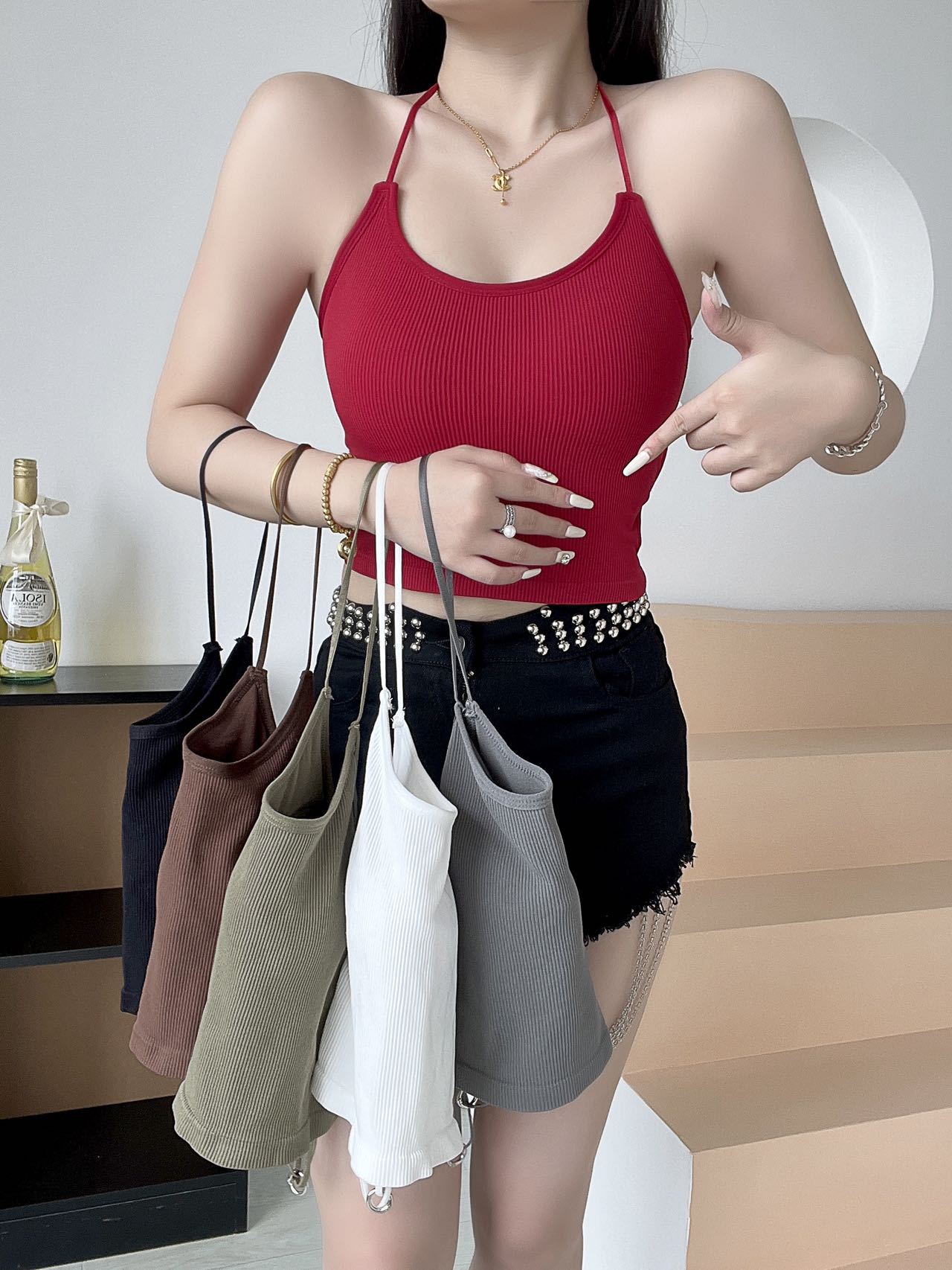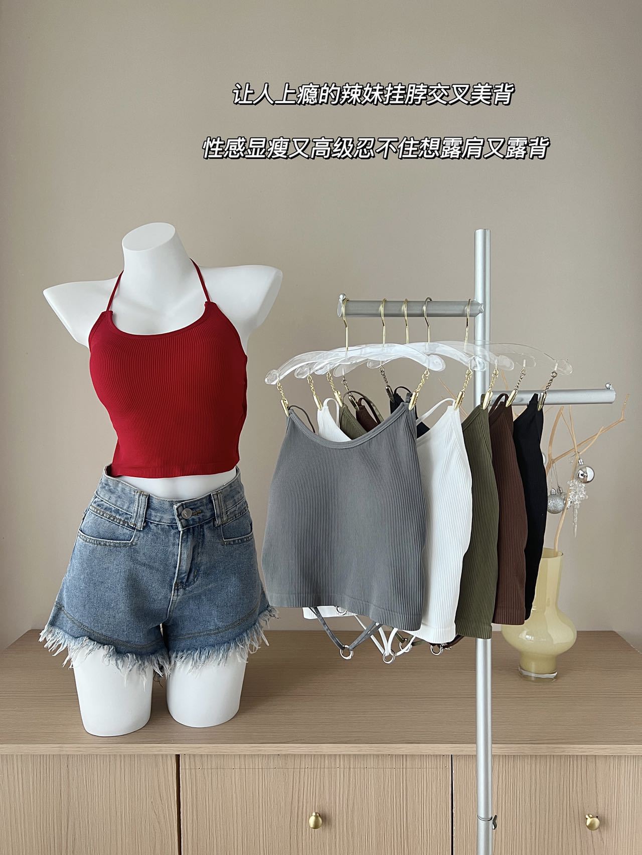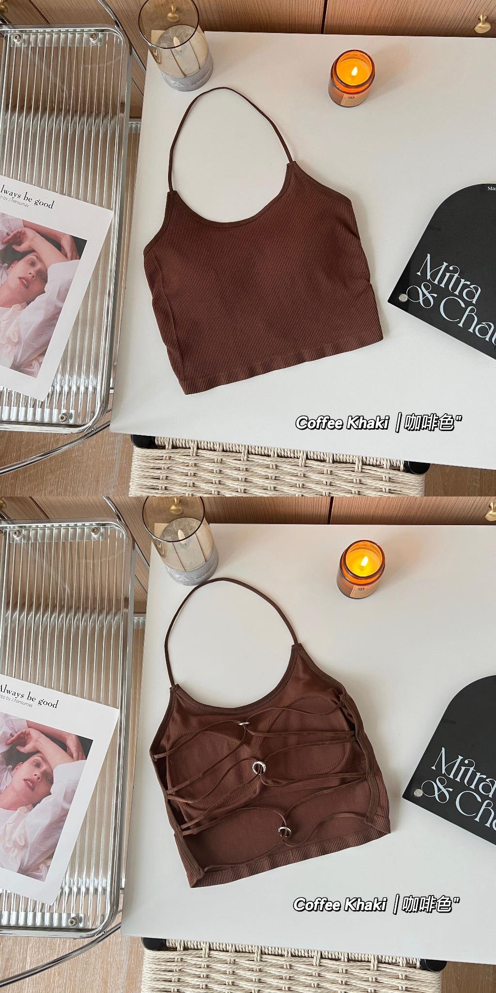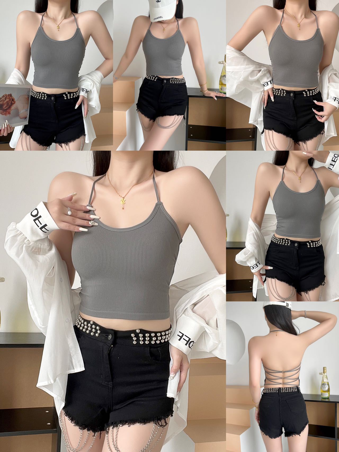 Ropa interior de verano para mujer con tirantes cruzados, escote cuadrado negro, espalda hueca, tirantes pequeños, chaleco acolchado.