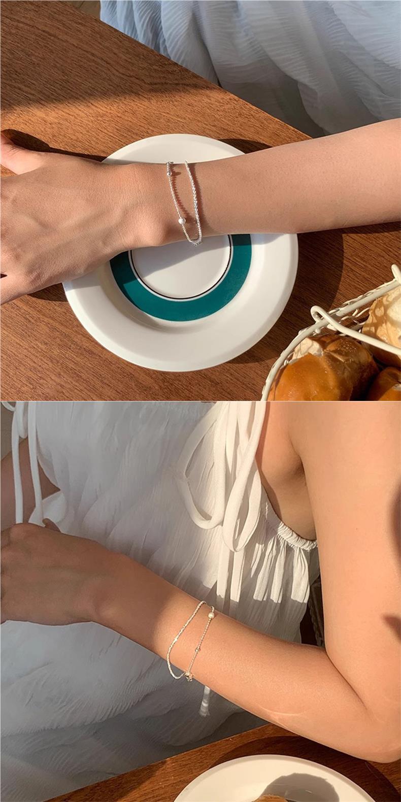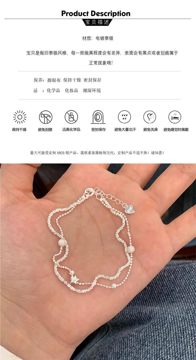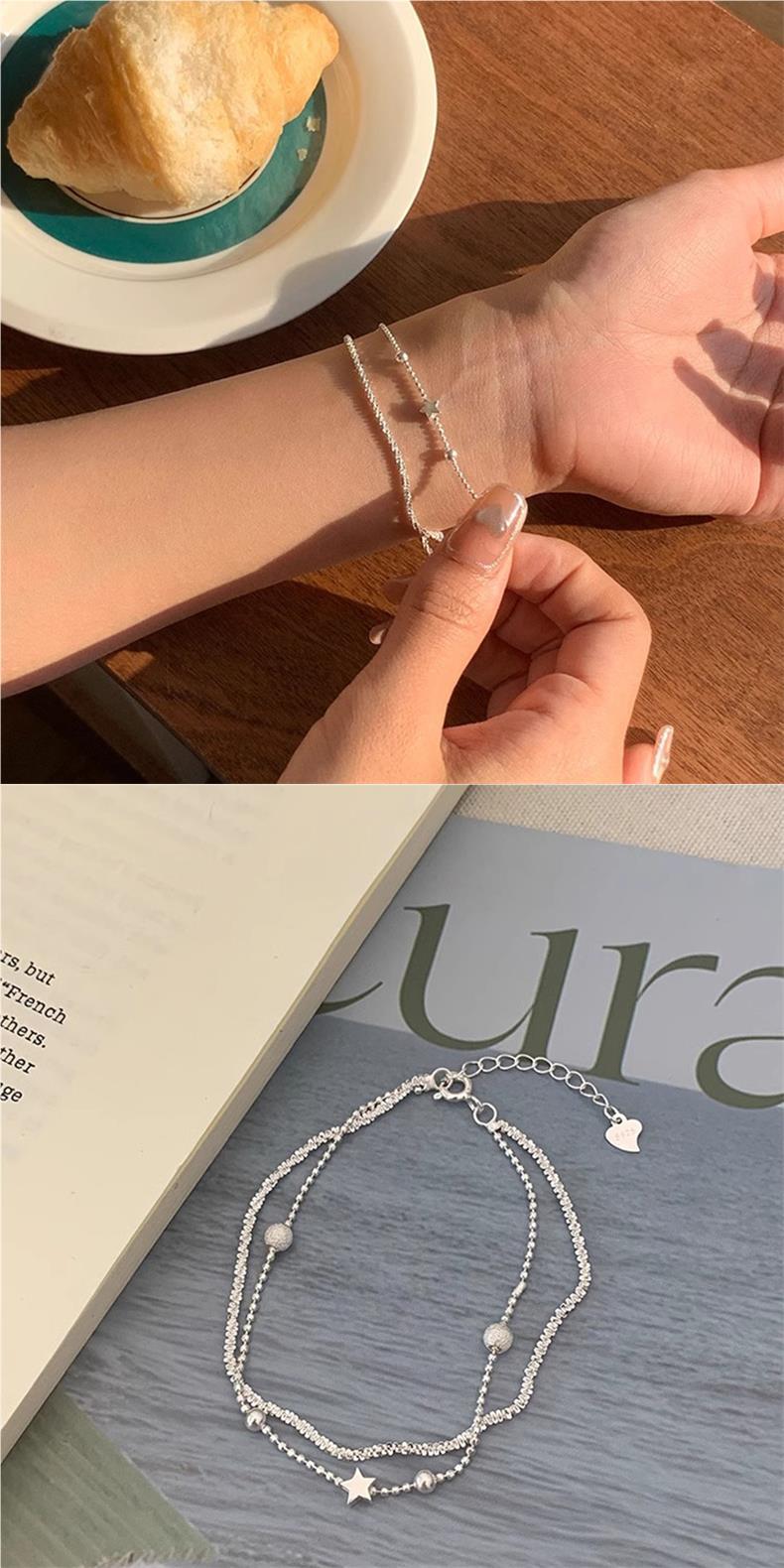 Dulce Pulsera de Gipsófila de Doble Capa para Mujer Geométrica Estrella de Cinco Puntas Moda Personalidad Pulsera Plateada en Plata S925 Pulsera de Moda Ins
