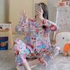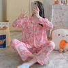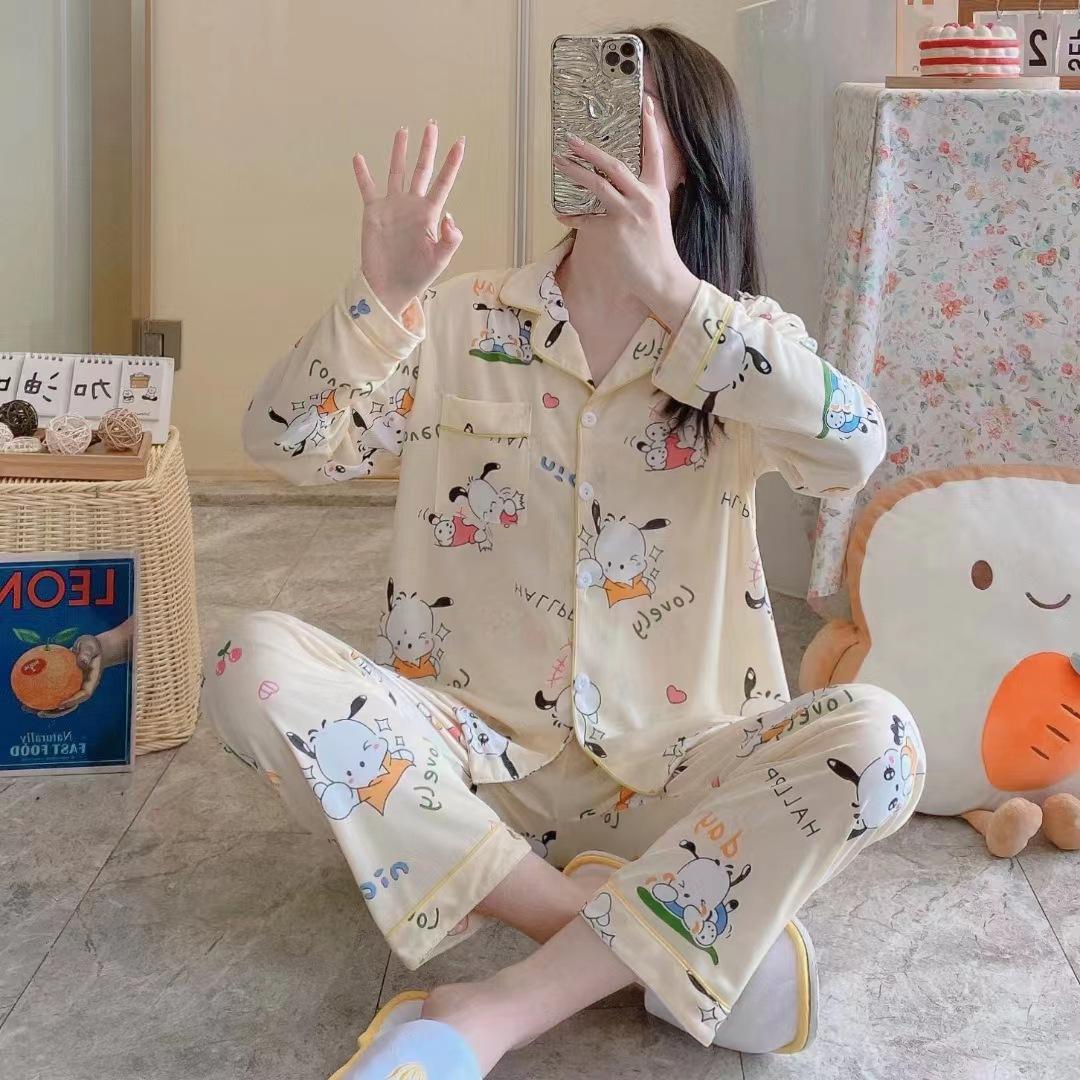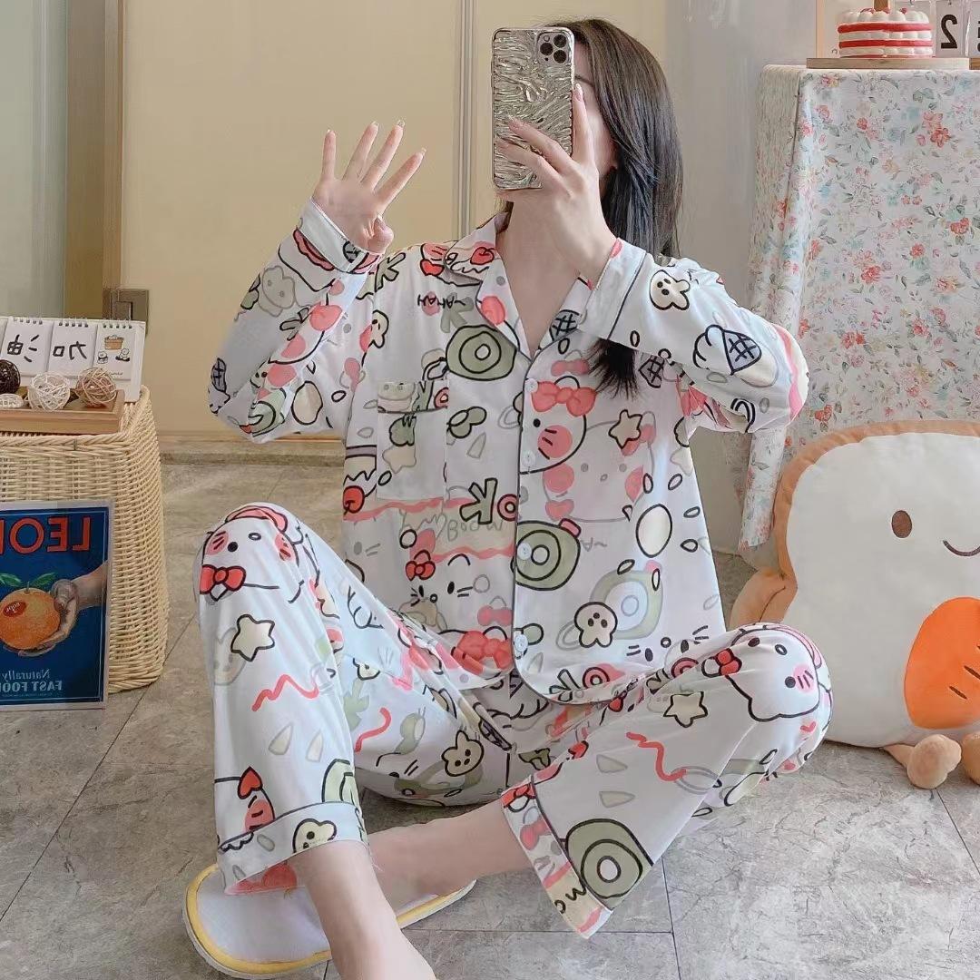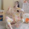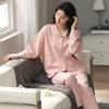 Pijamas de Amazon para mujer de primavera y otoño de manga larga para estar en casa, traje casual coreano de solapa de manga larga, pijama de imitación de algodón al por mayor