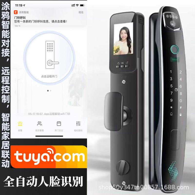 Cerradura inteligente Tuya con grafiti transfronterizo, cerradura automática con huella dactilar, cerradura para el hogar, desbloqueo remoto por aplicación