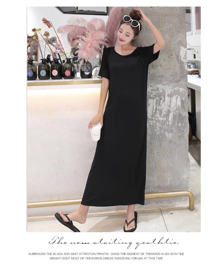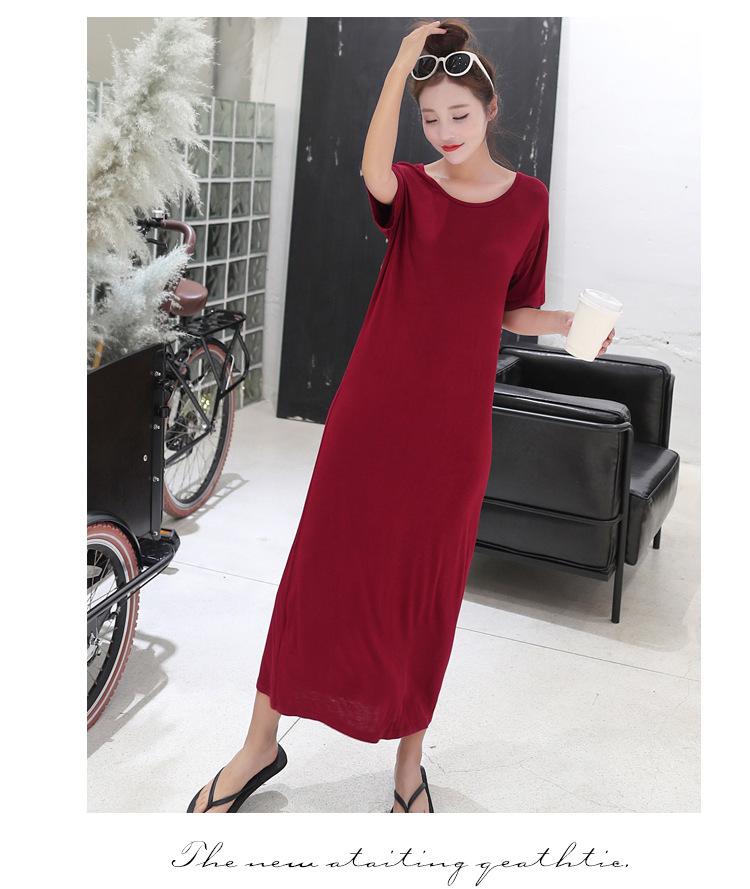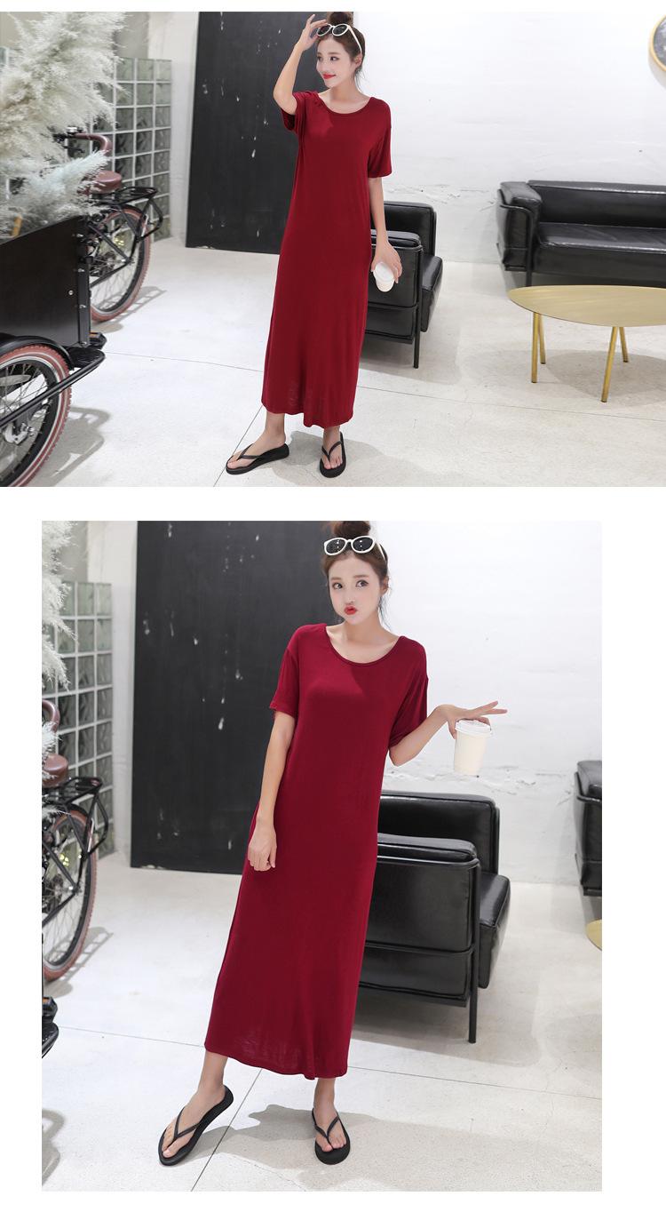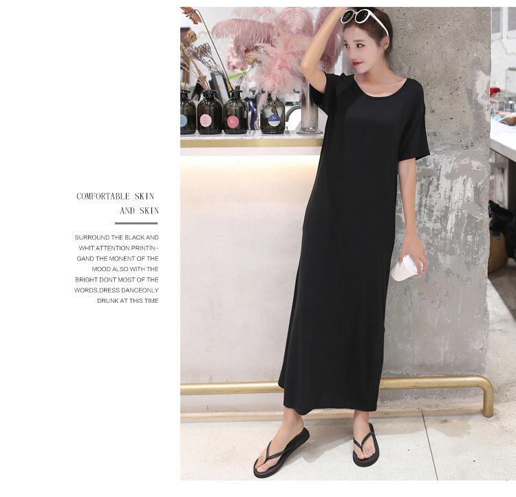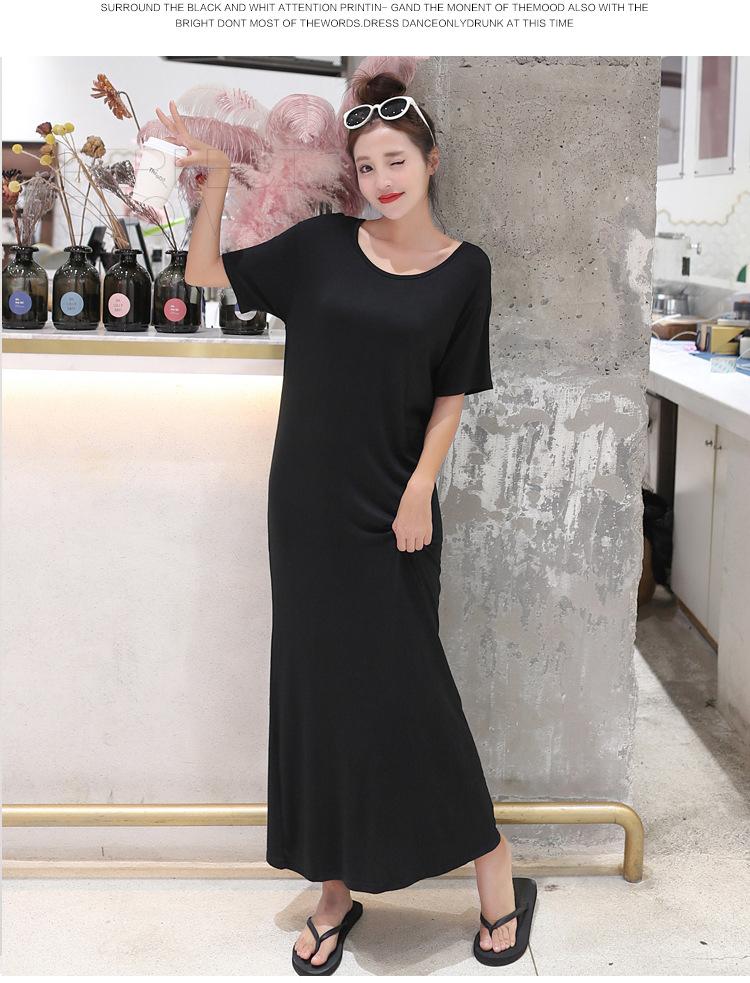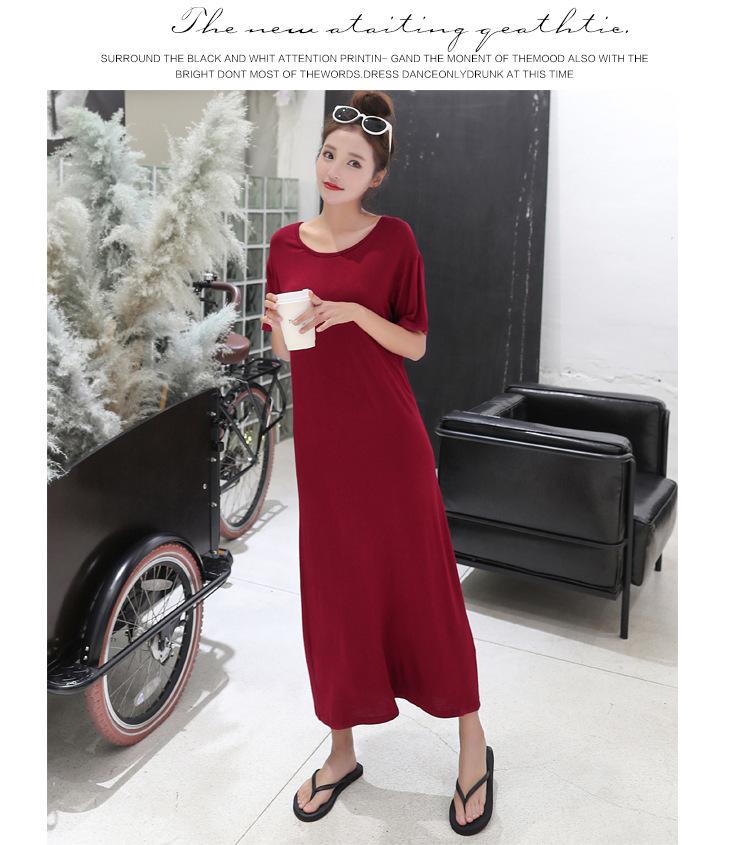Vestido modal de mujer de estilo coreano de verano y otoño, vestido holgado de manga corta con bajo, vestido largo de talla grande, entrega de una pieza