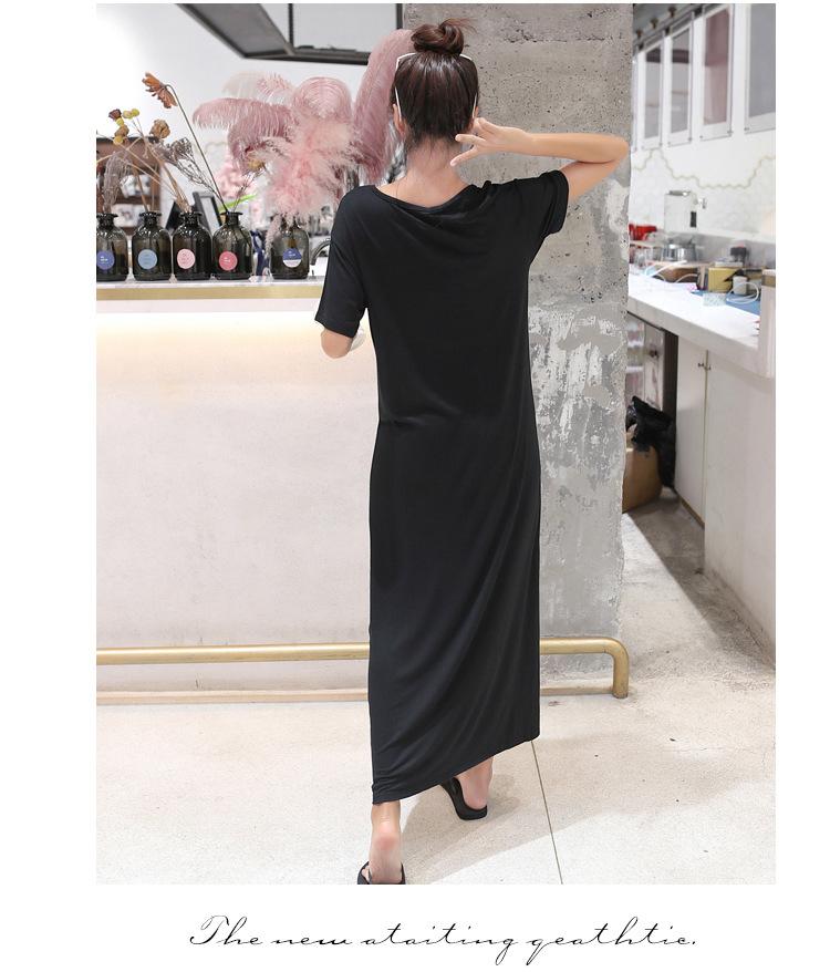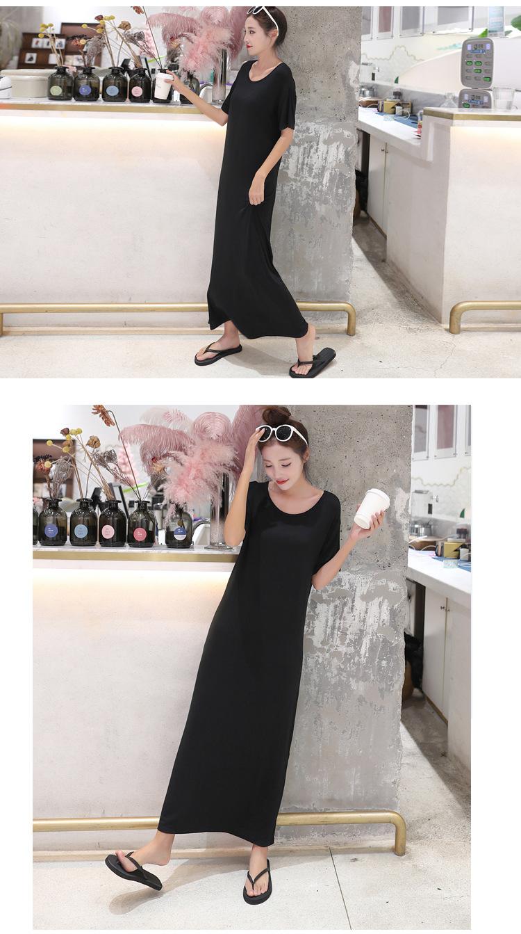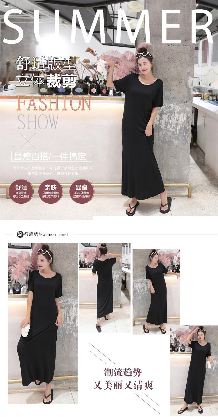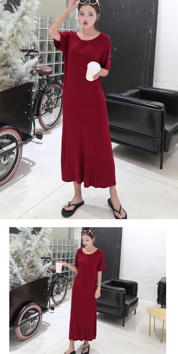 Vestido modal de mujer de estilo coreano de verano y otoño, vestido holgado de manga corta con bajo, vestido largo de talla grande, entrega de una pieza
