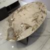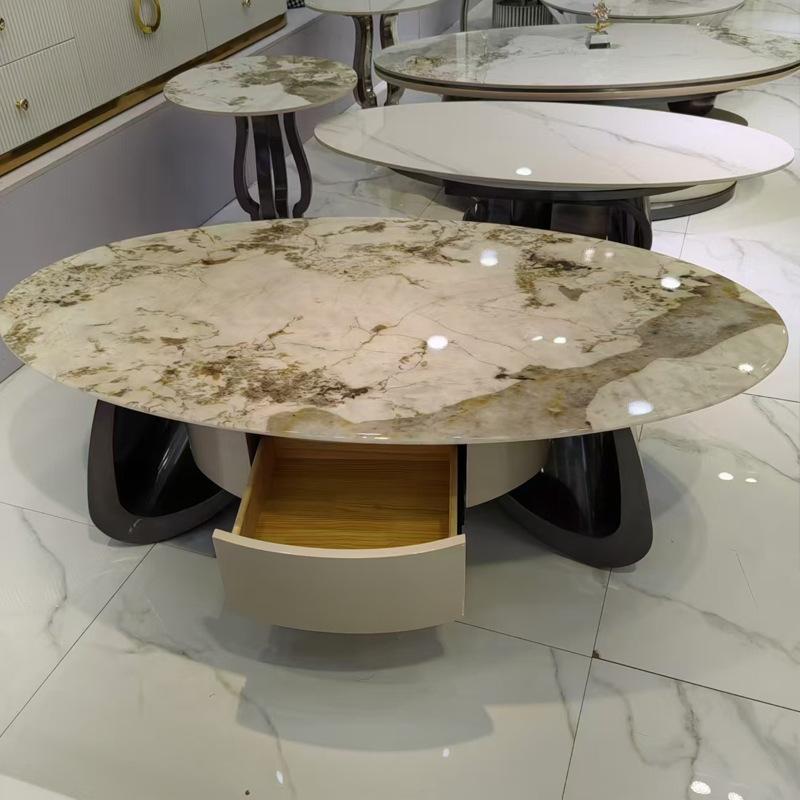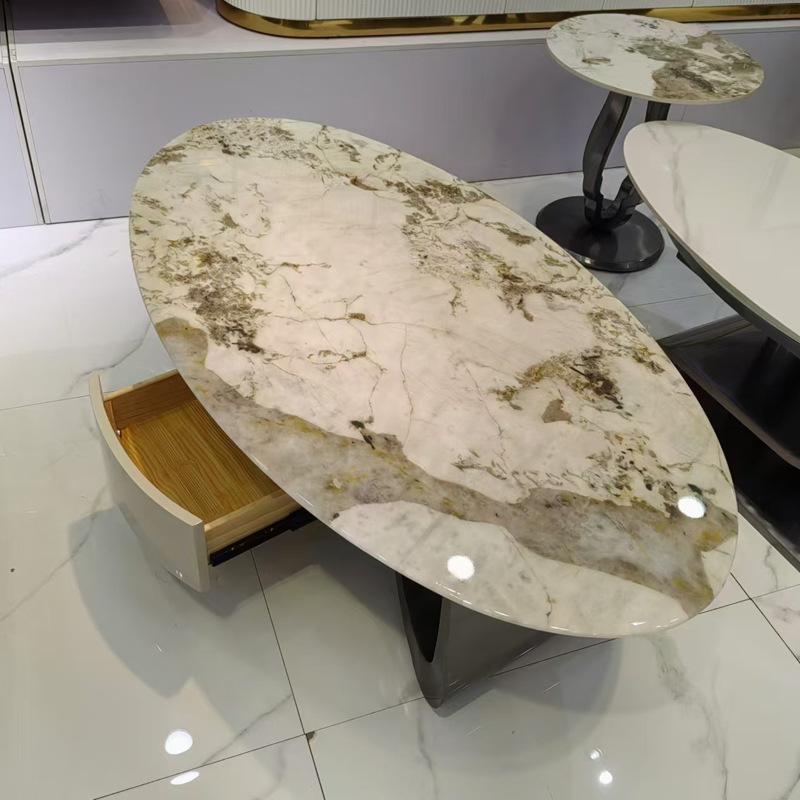 Mesa de centro de acero inoxidable con piedra roja de color rojo para sala de estar, mesa de centro italiana ligera de lujo a la moda, tienda de muebles Foshan