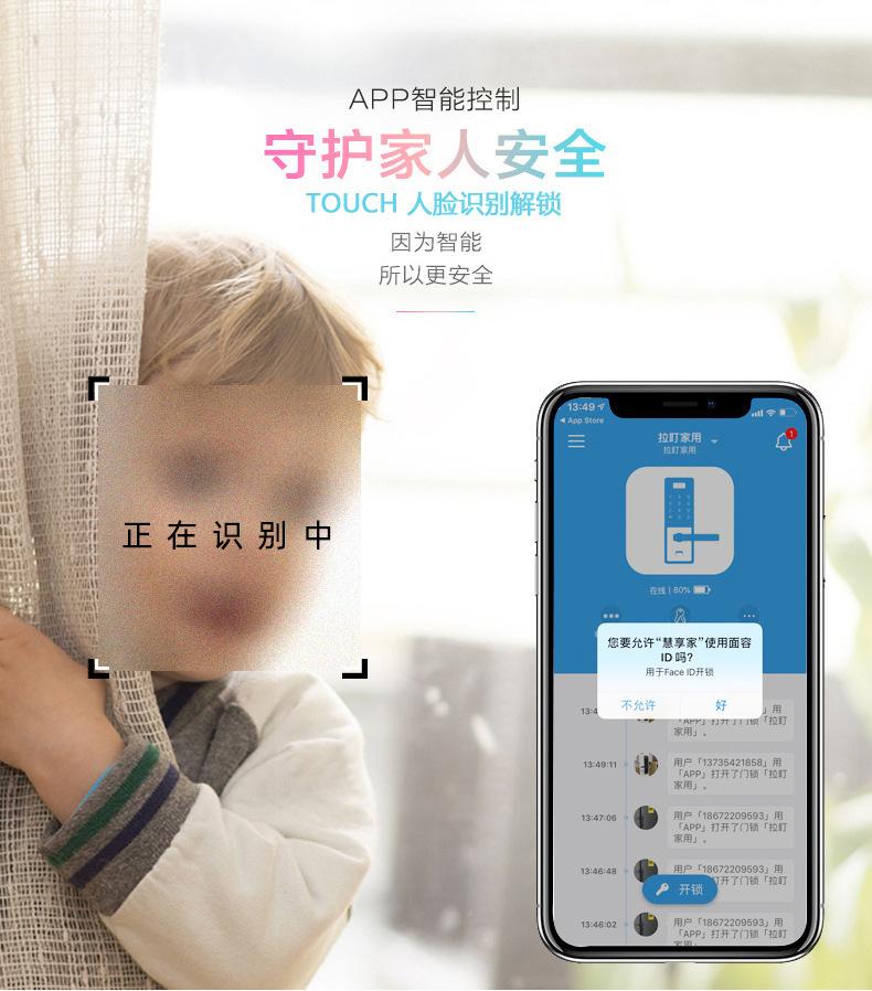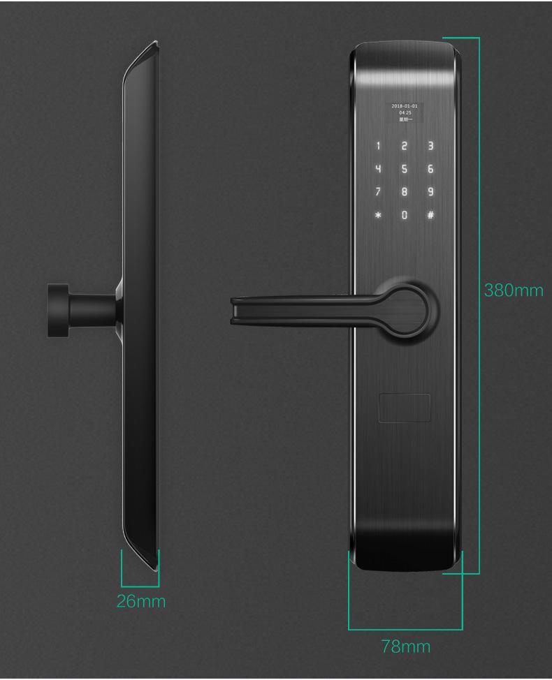 Método de apertura de la puerta:Huella digital/contraseña/tarjeta inteligente/llave mecánica/llave temporal de miniprograma, función cinco en uno.