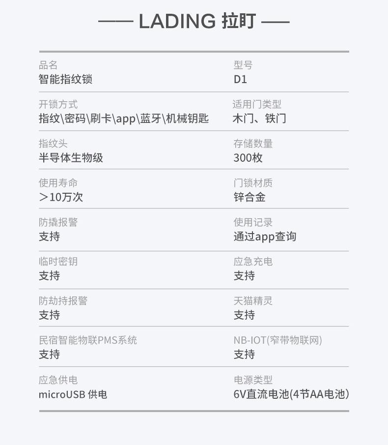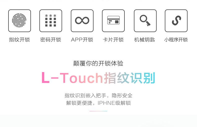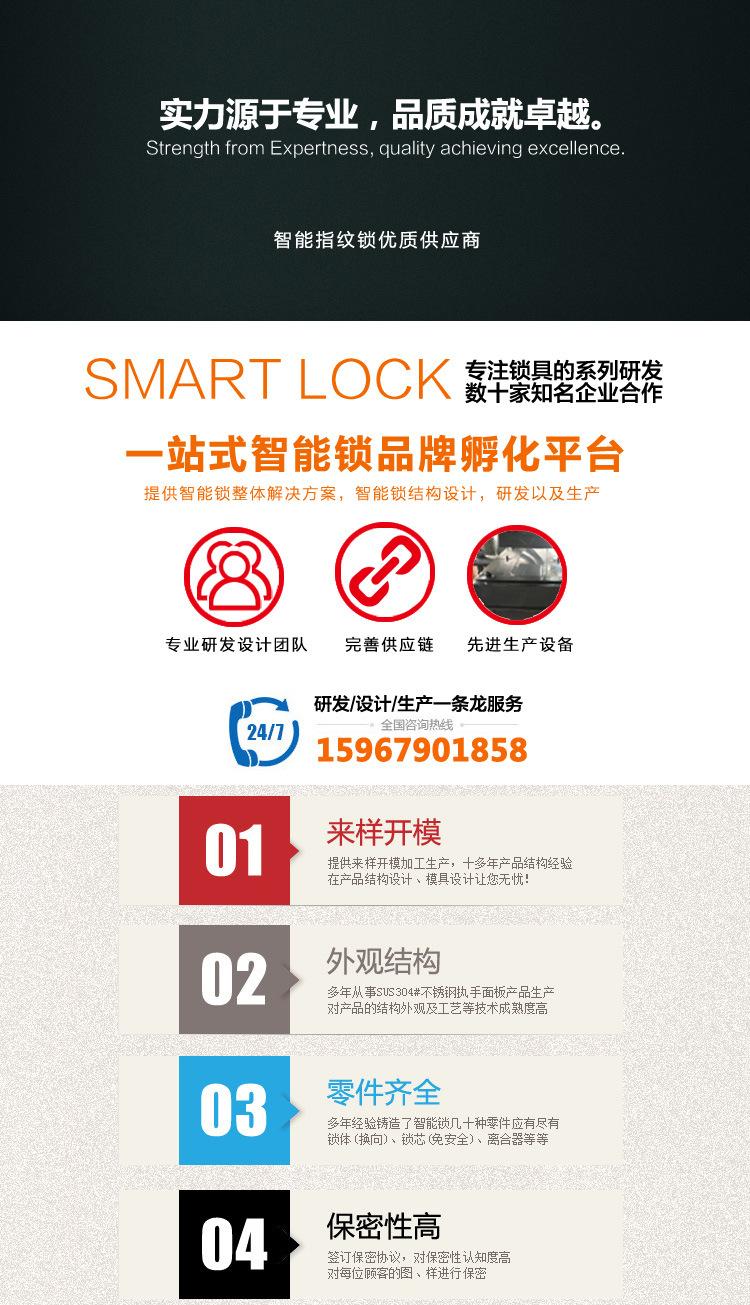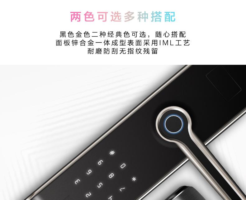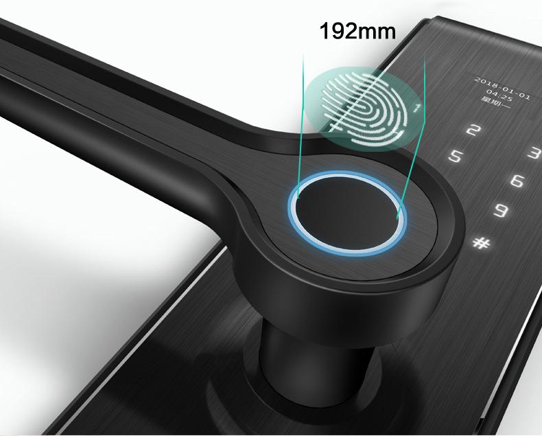 Está hecho de material de aleación de zinc de alta calidad y está fundido en una sola pieza. La superficie adopta tecnología de pintura automotriz + tecnología de inyección en molde IML, 4 capas de pintura, y tiene excelente resistencia a la corrosión. El tiempo de prueba es de 320 horas. Las piezas estructurales internas están hechas de fundiciones de acero fino. El diseño de manija con doble rodamiento asegura eficazmente que la manija no se caiga ni se afloje durante el uso prolongado del producto. El cabezal de huellas dactilares es un cabezal de huellas dactilares circular semiconductor 192 para un reconocimiento preciso.
