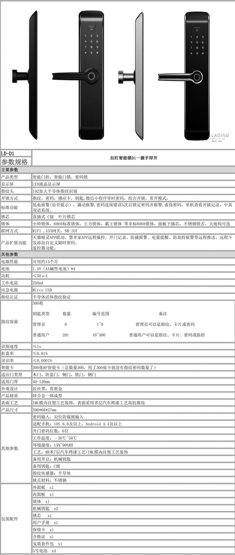 LaDing cerradura inteligente cerradura inteligente de huella dactilar contraseña virtual, control remoto llave temporal de la aplicación reconocimiento de huella dactilar semiconductor