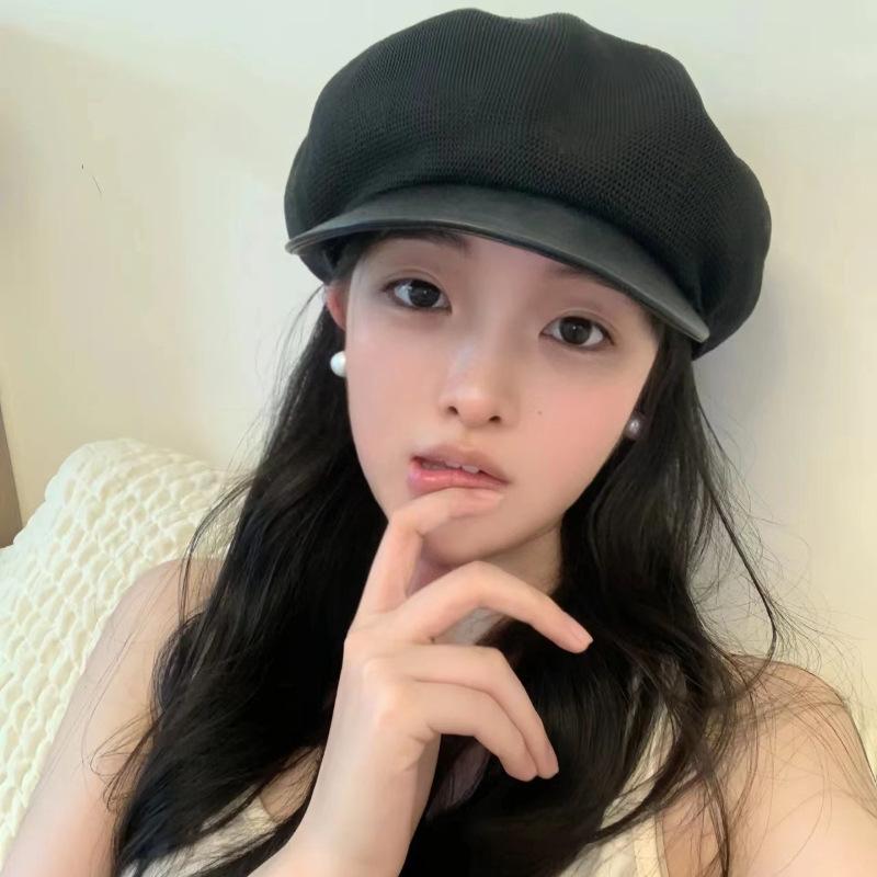 Boina Japonesa Artística Versátil Transpirable para Mujer Talla Cabeza Grande Estilo Francés Retro Lujo Ligero Simple Gorra Octogonal Plana
