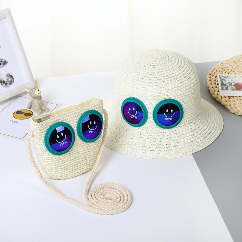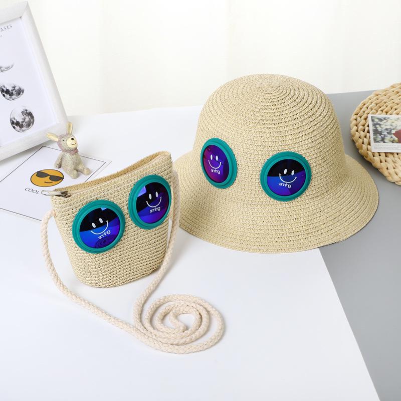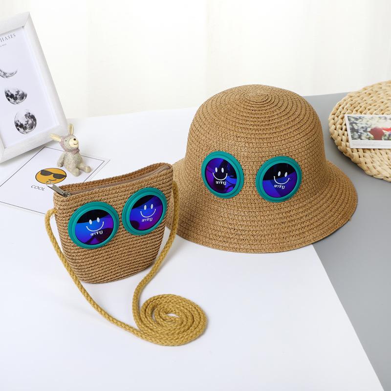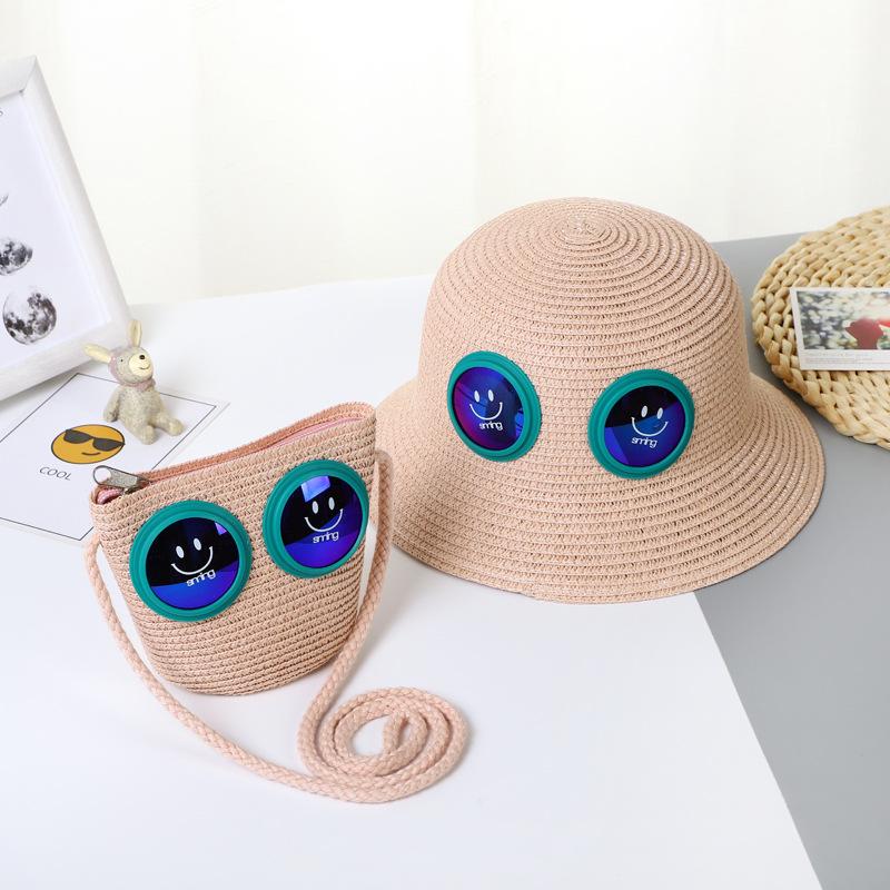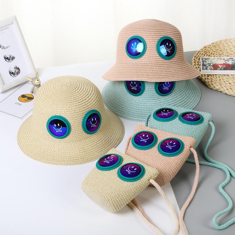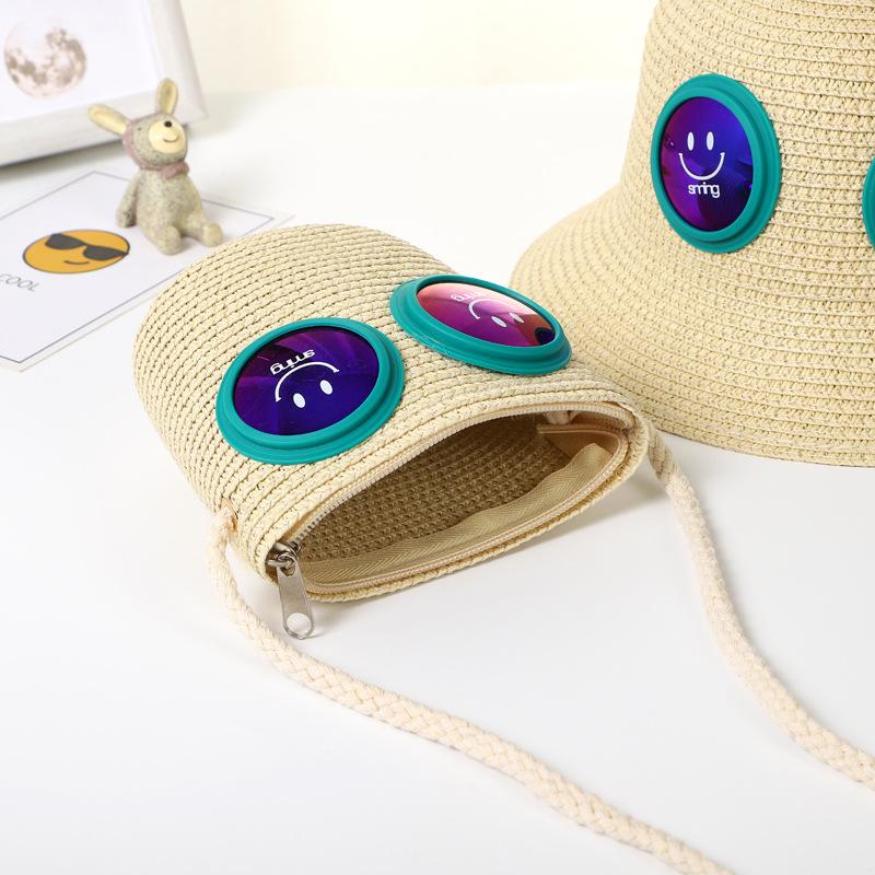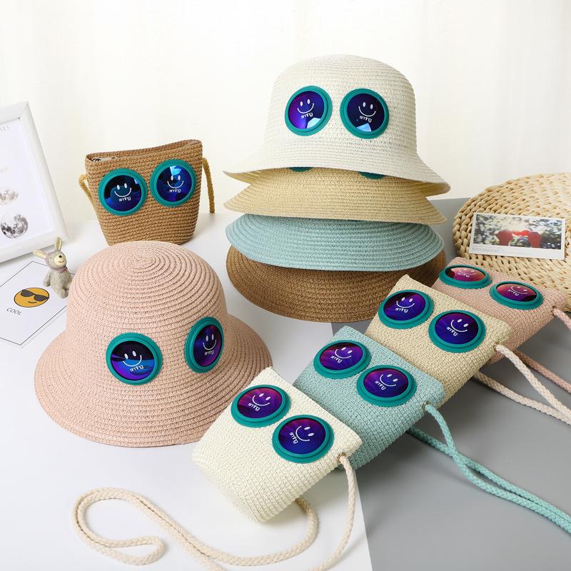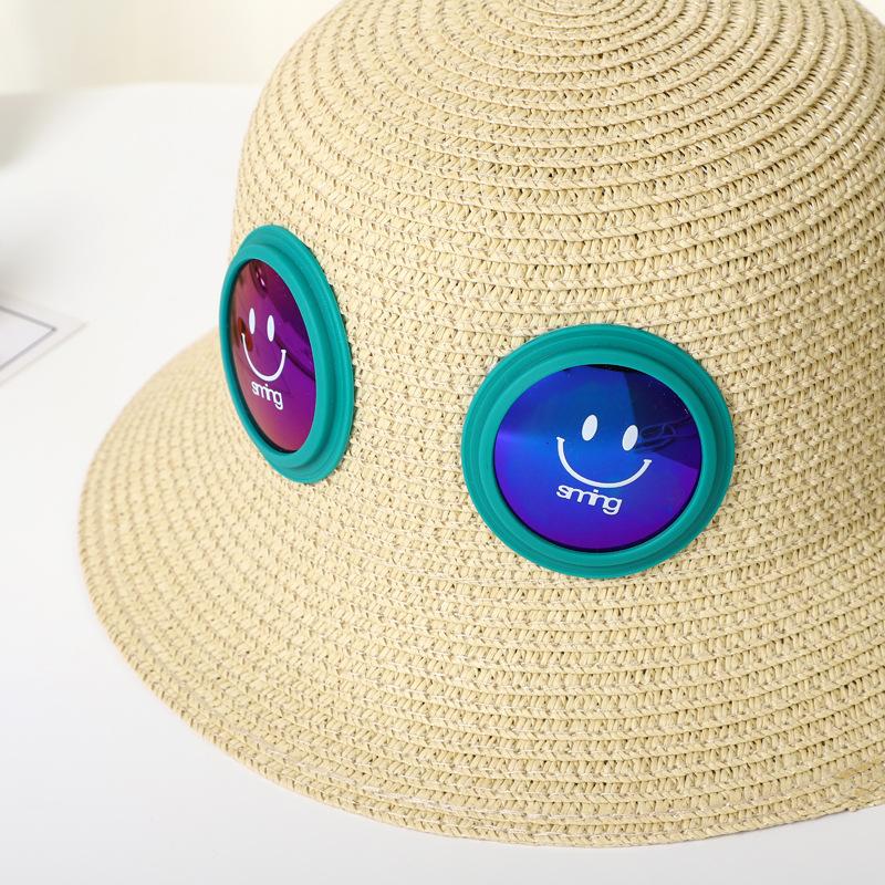 Sombrero de Paja para Niños Sombrero de Playa Sombrero de Sol con Cara Sonriente para Bebé Niña Sombrero de Cubeta Sombrero de Pescador con Protección Solar de Dibujos Animados para Niño