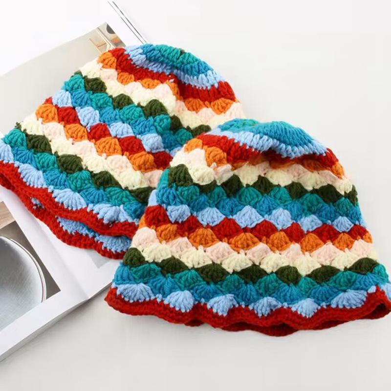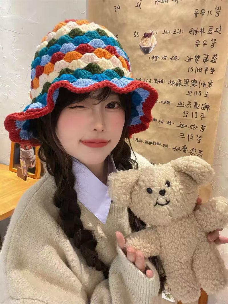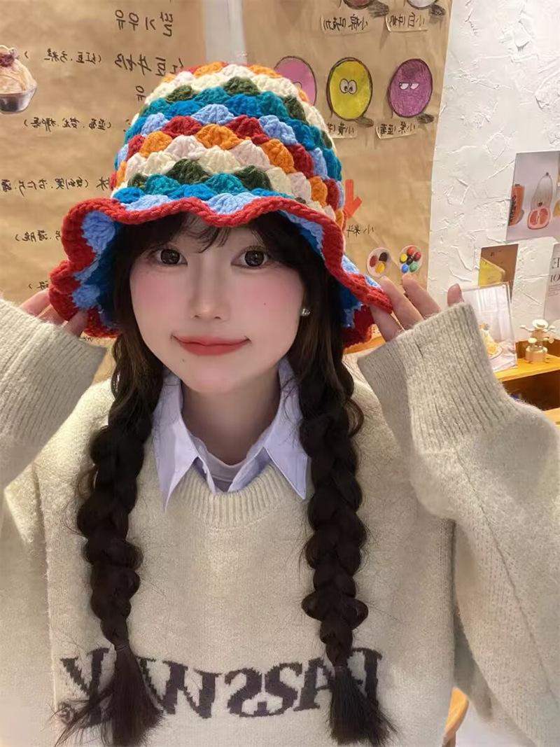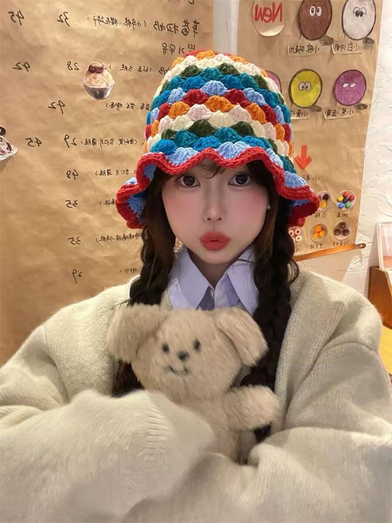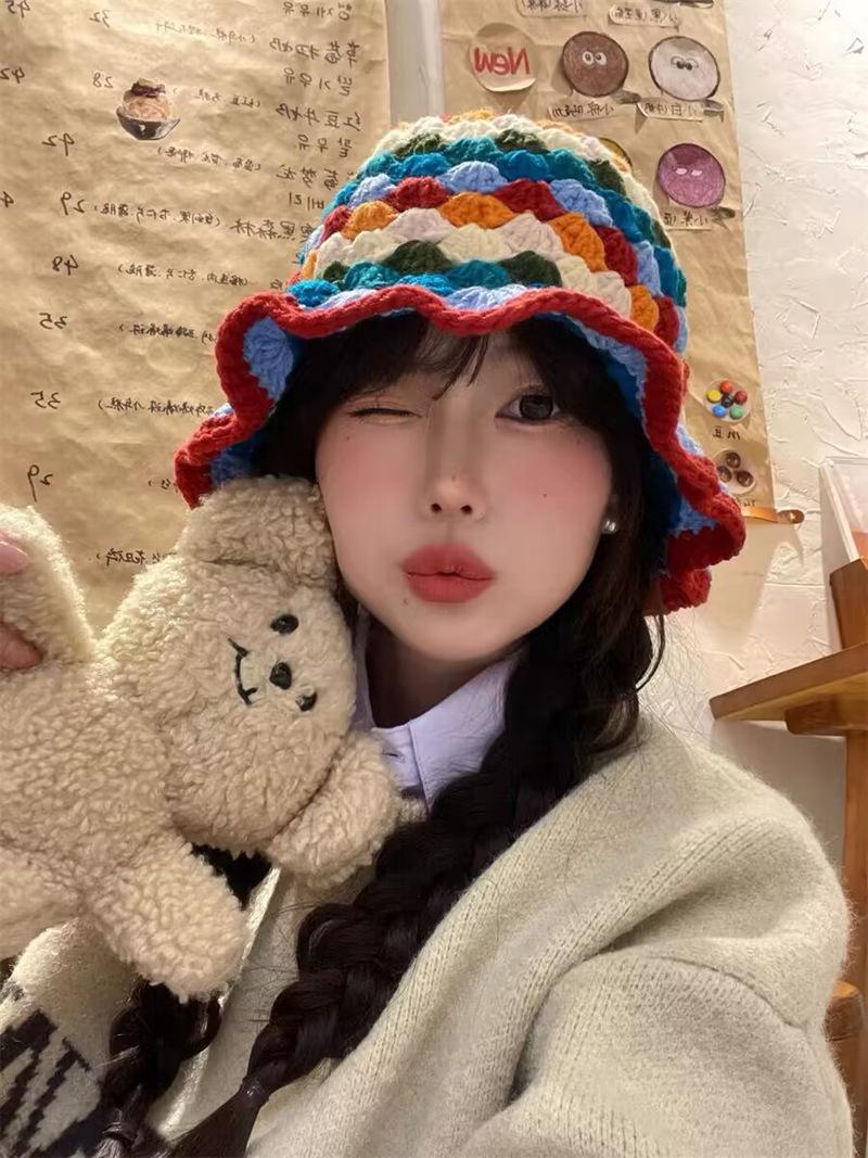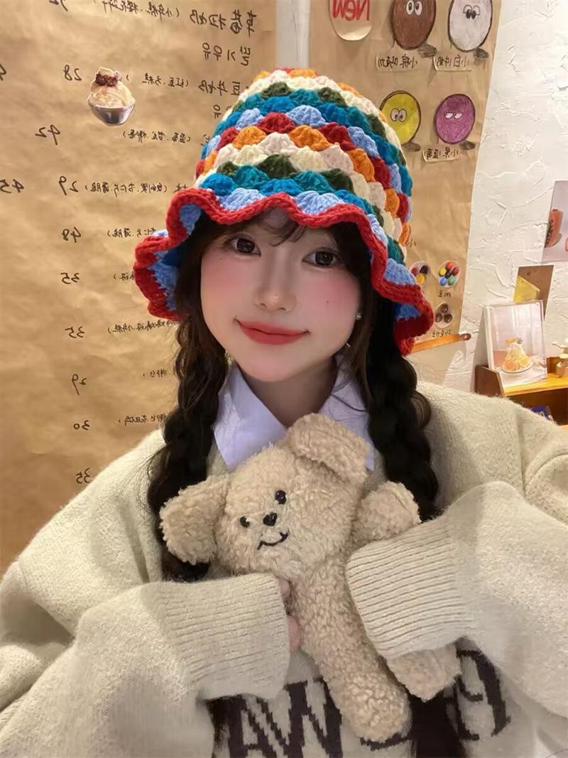 Sombrero de Cuenca Tejido a Mano a Cuadros de Color Vintage Japonés para Mujer Otoño e Invierno Dulce Combinable Sombrero de Lana para la Cara