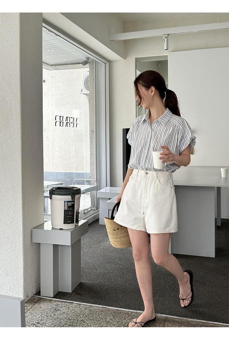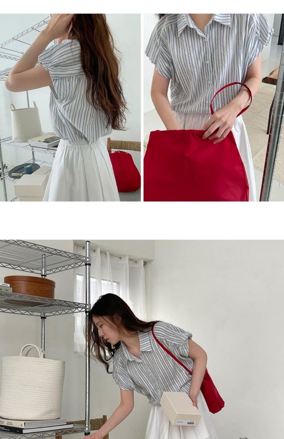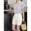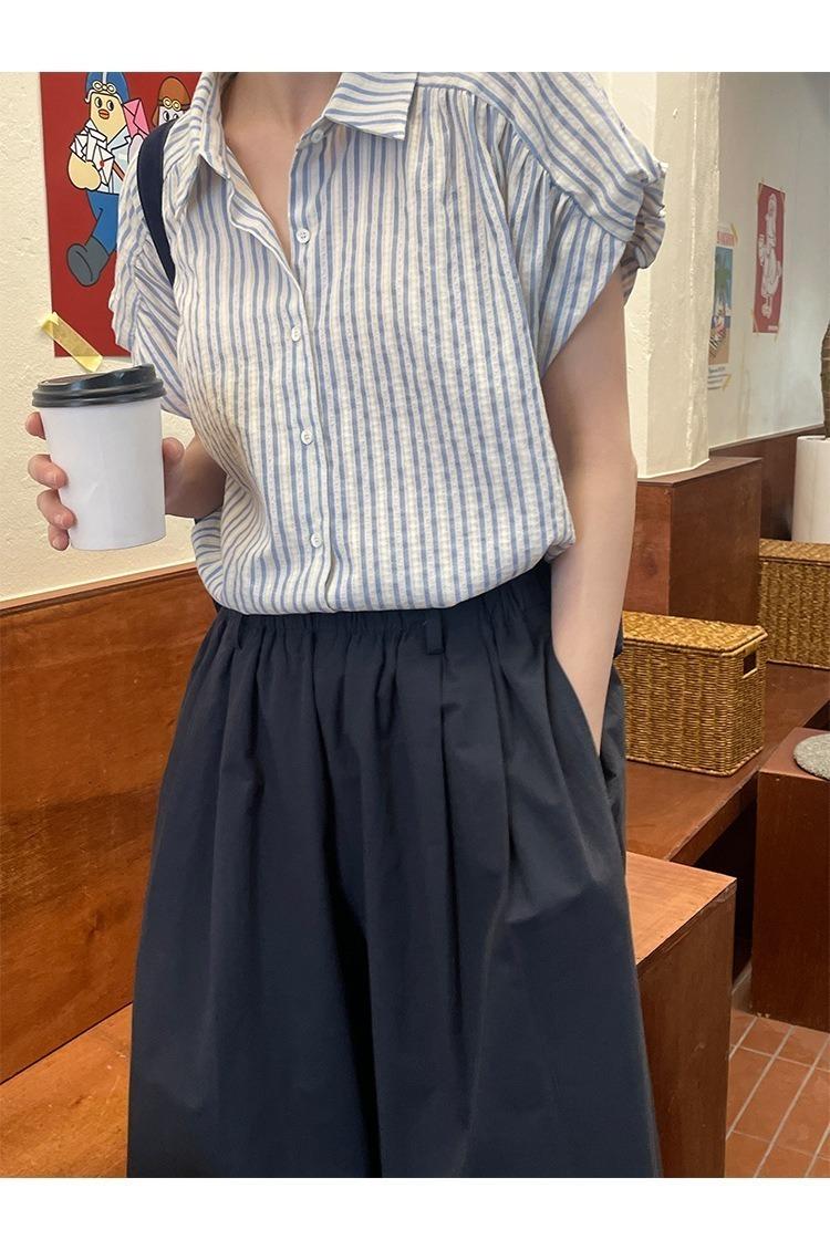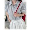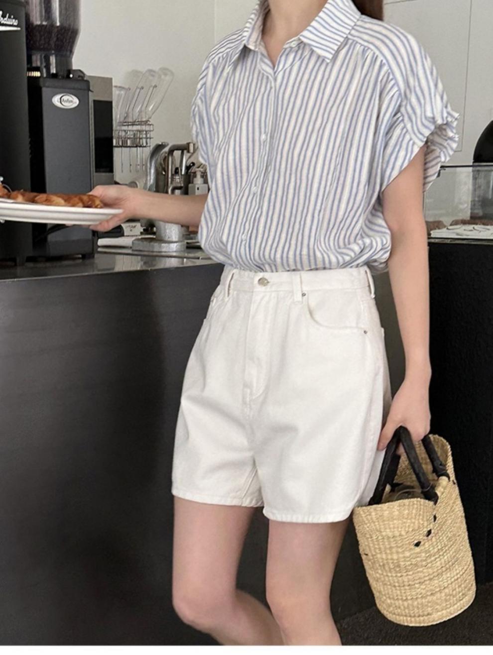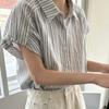 Camisa de manga corta a rayas francesas para mujer, diseño de verano, camisa pequeña y elegante, top de manga corta con vuelo para mujer, verano