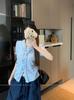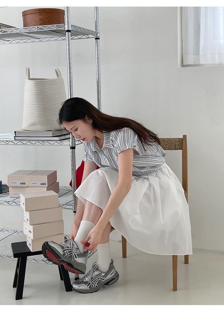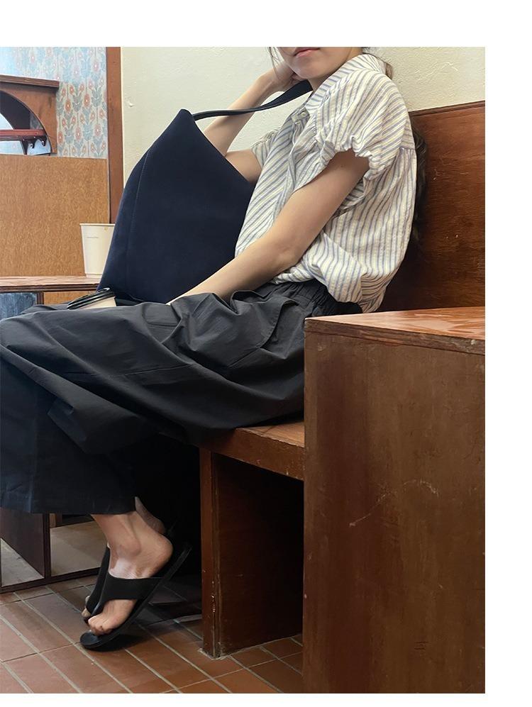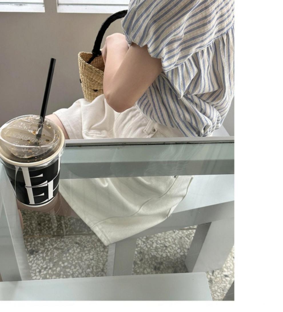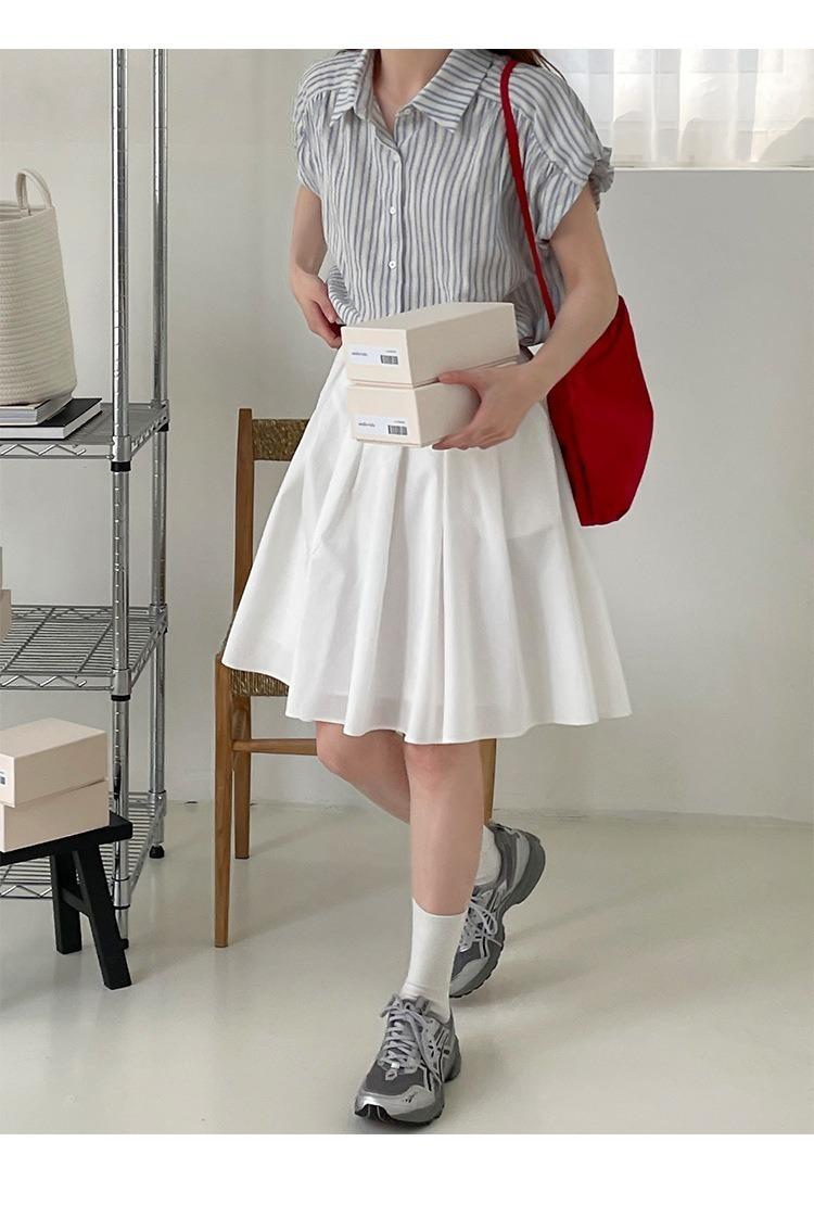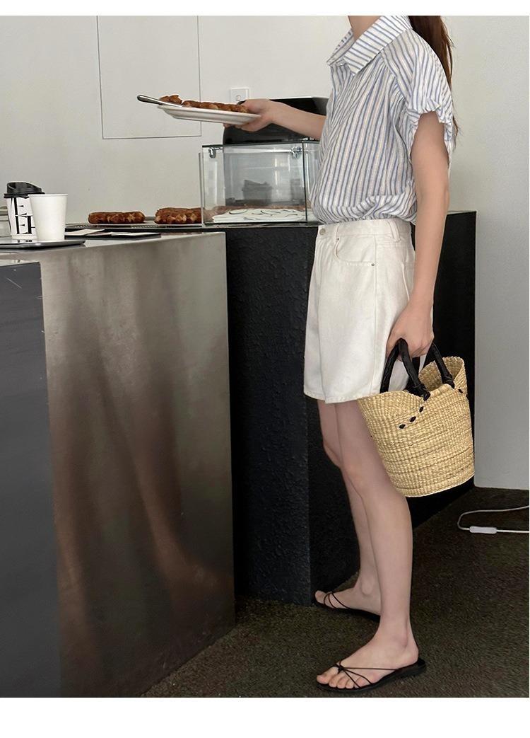 Camisa de manga corta a rayas francesas para mujer, diseño de verano, camisa pequeña y elegante, top de manga corta con vuelo para mujer, verano