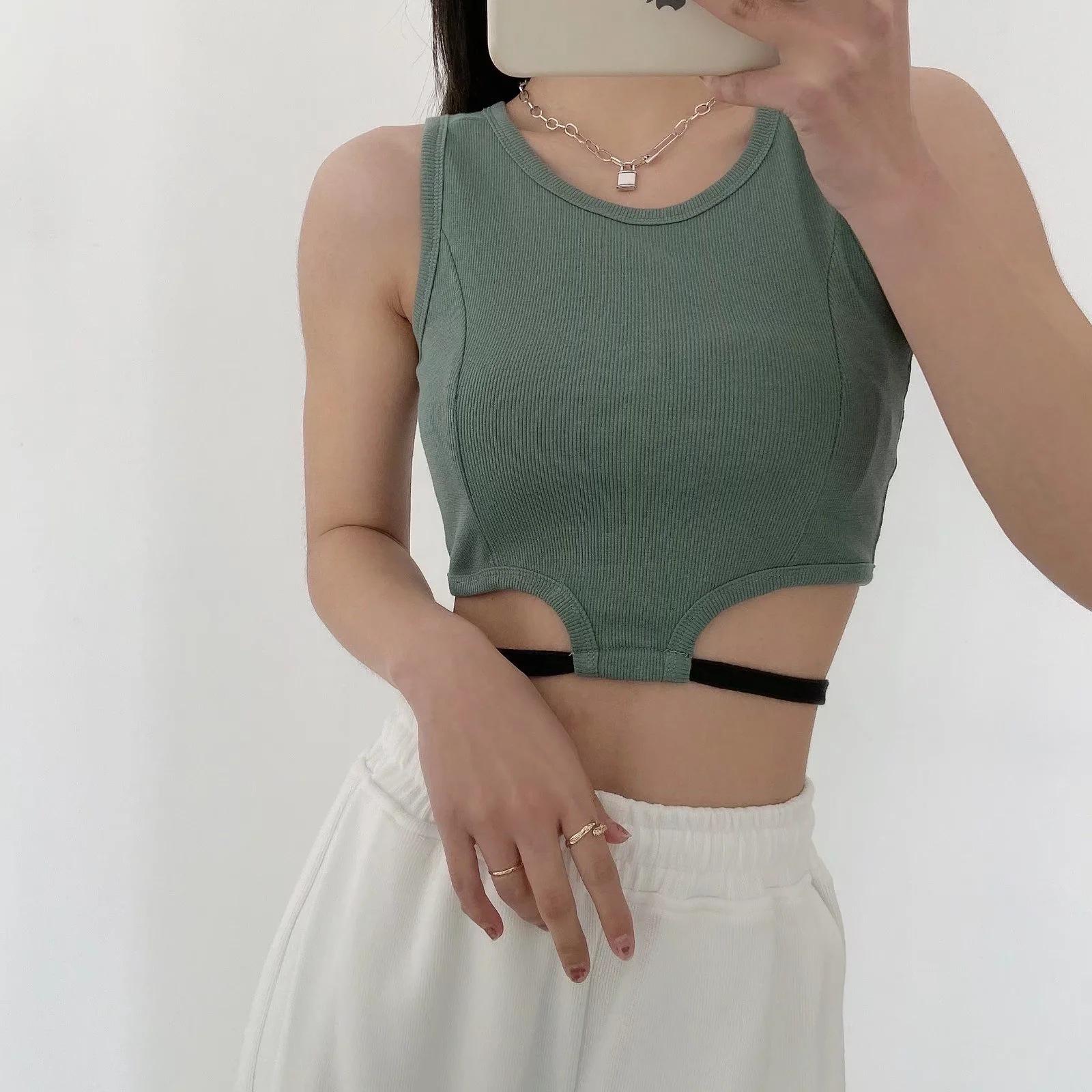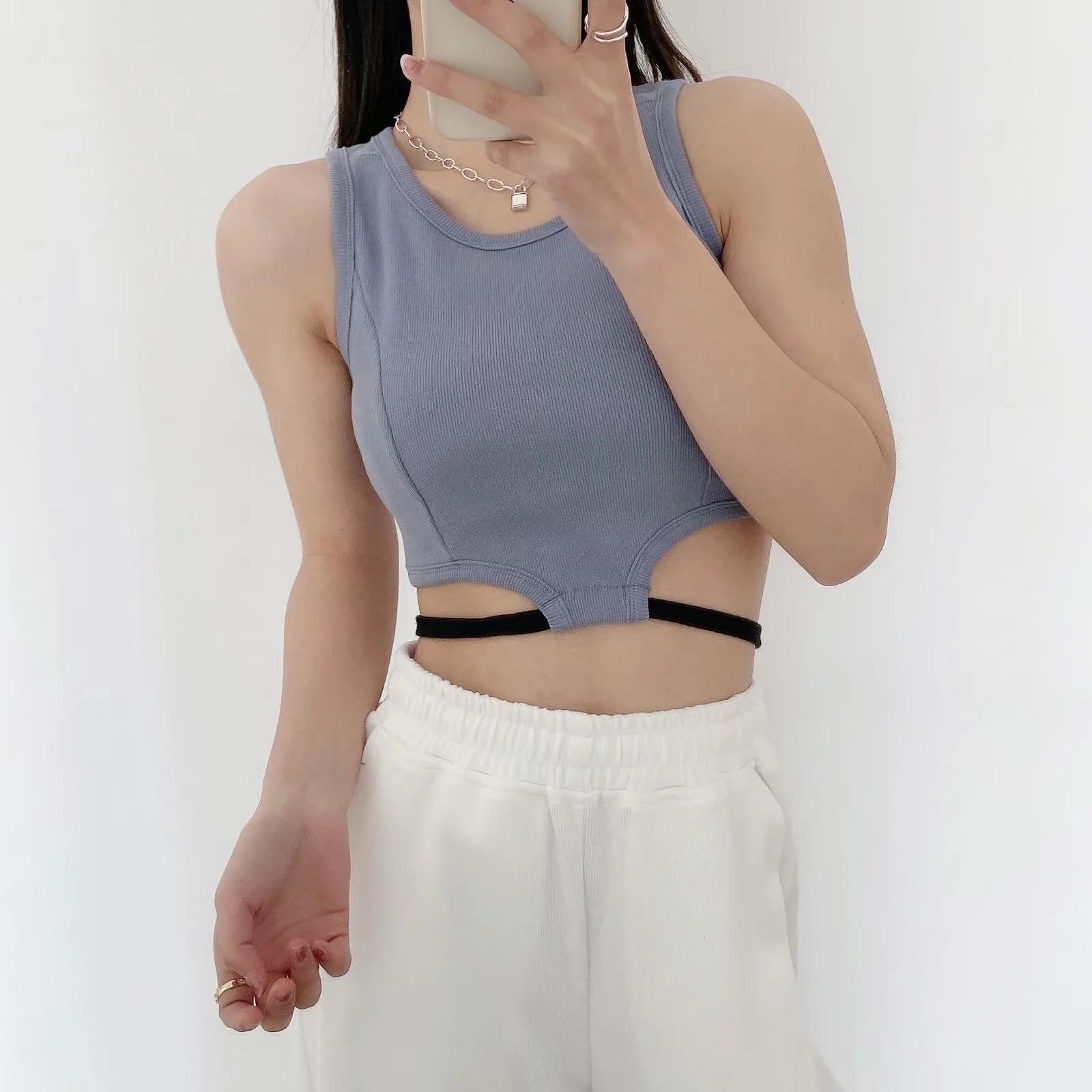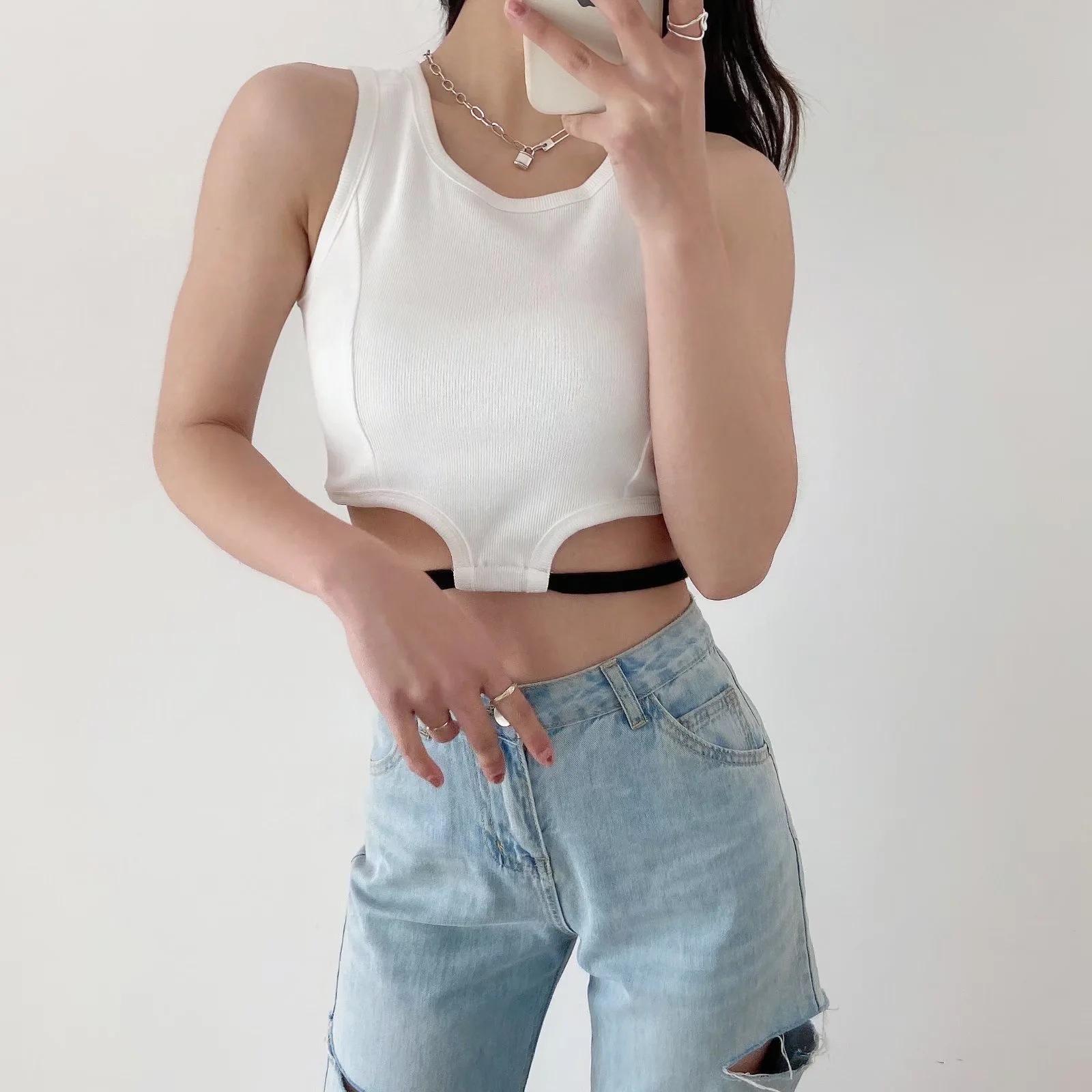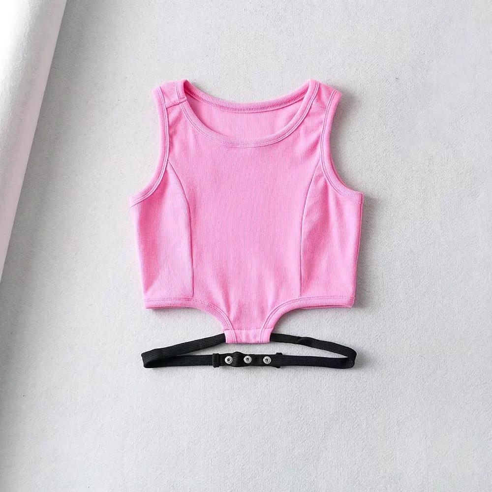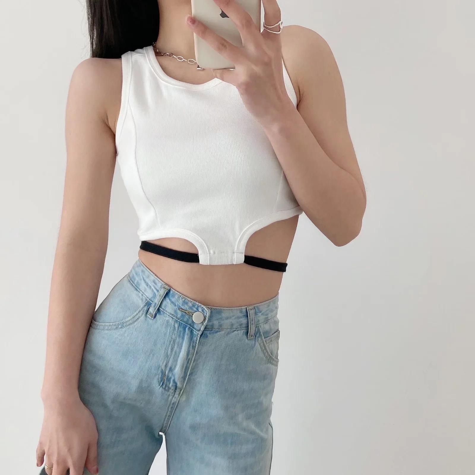 Camiseta básica ajustada con rosca estilo europeo y americano para mujer, estilo Spice Girl, con tirantes cortos y estilo dulce y fresco de verano 2022