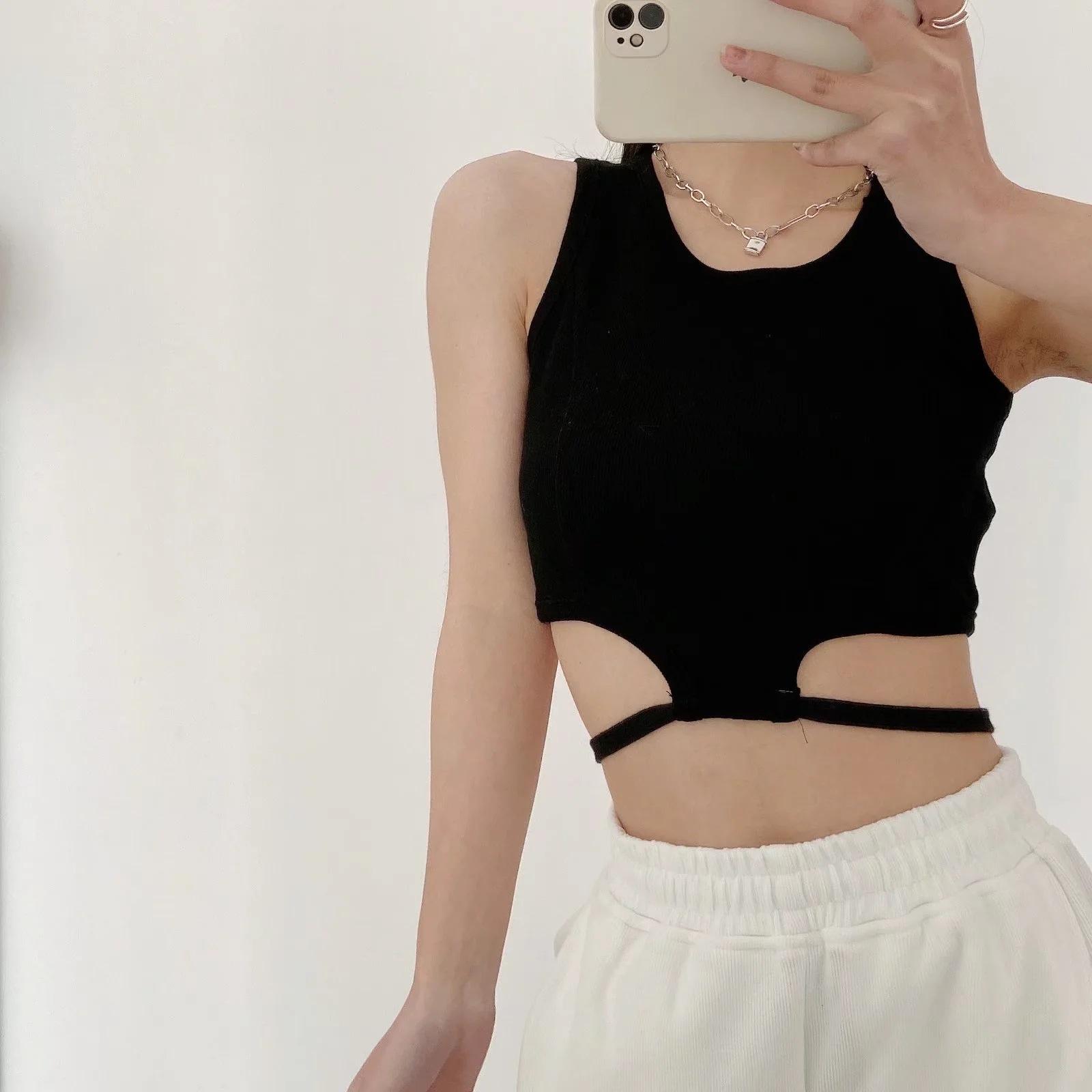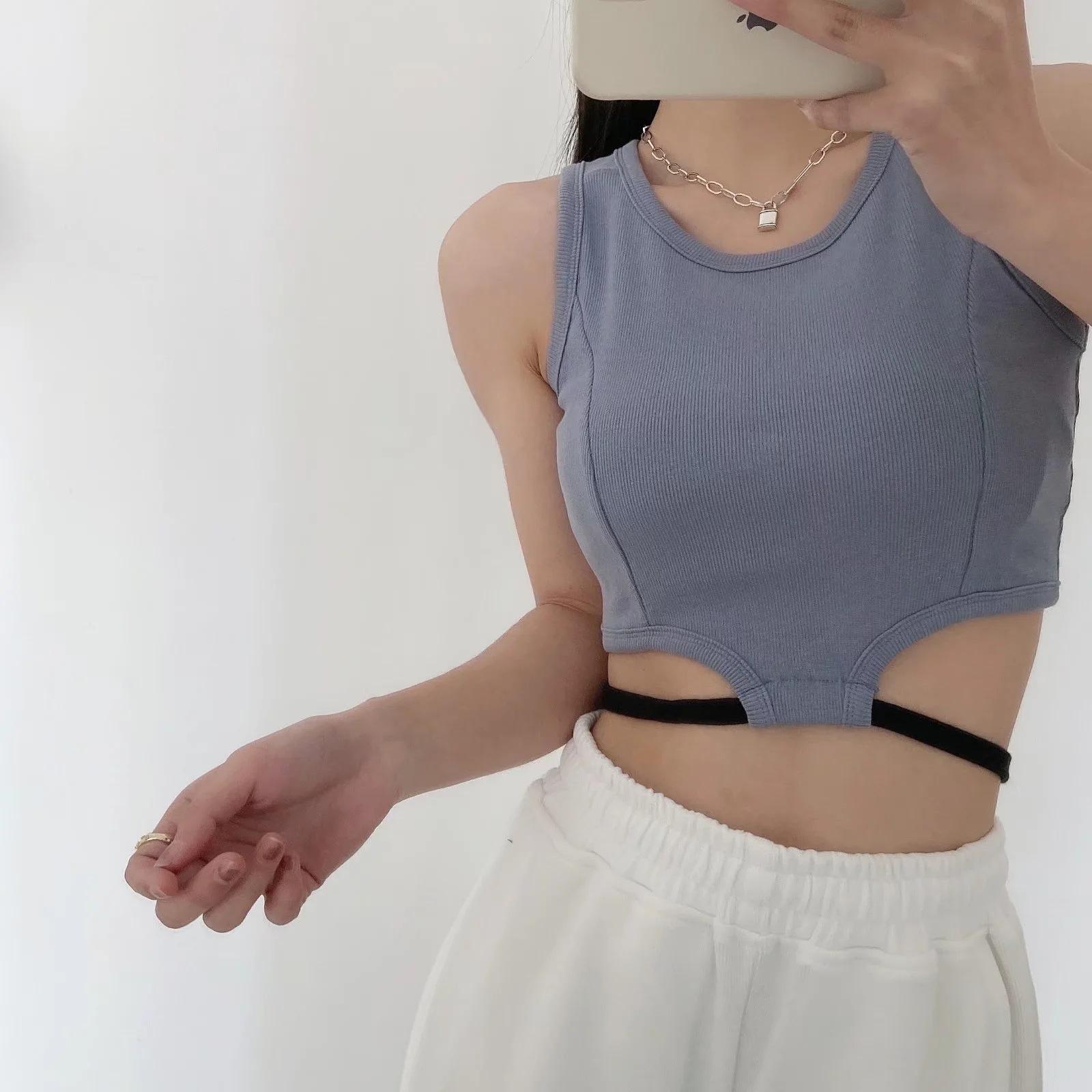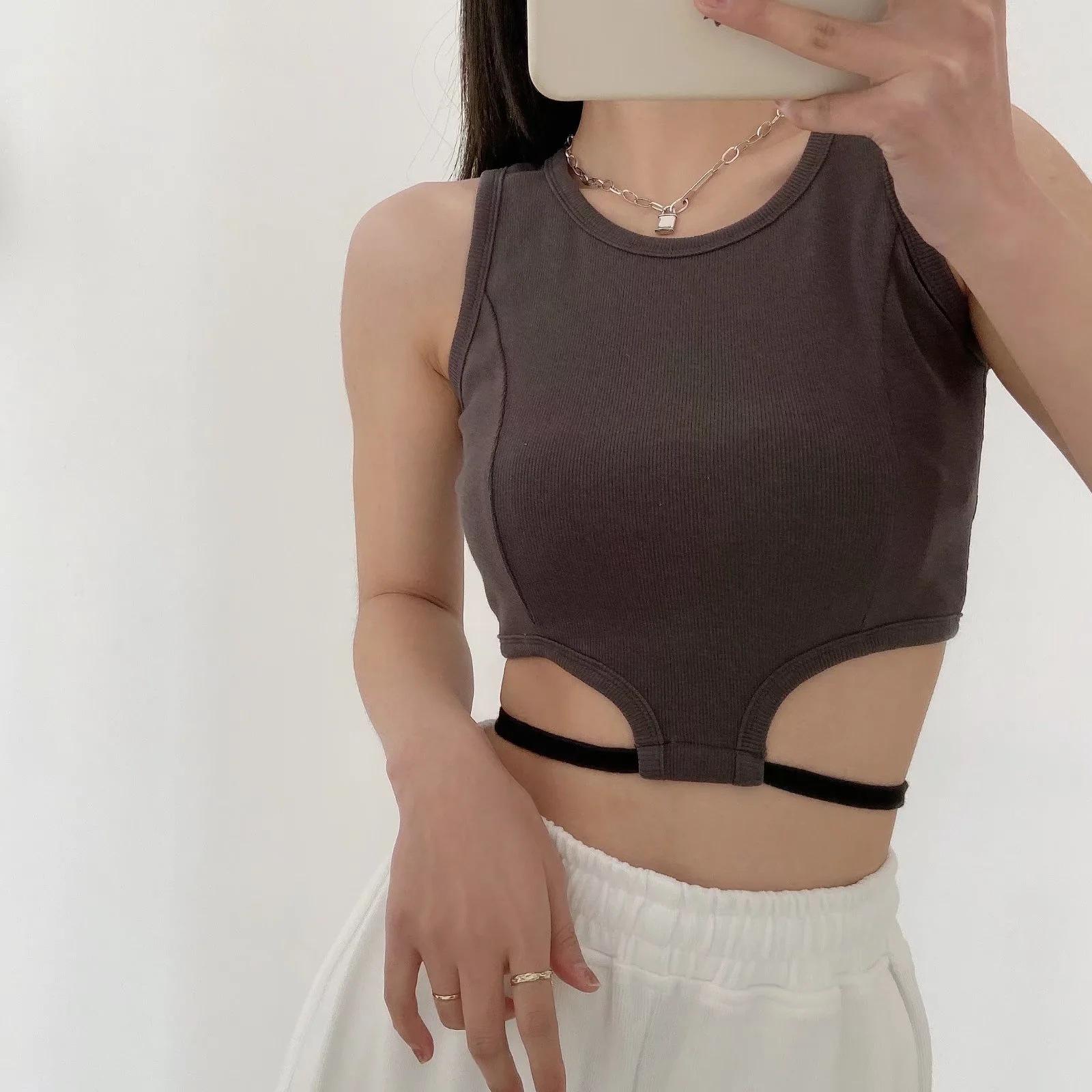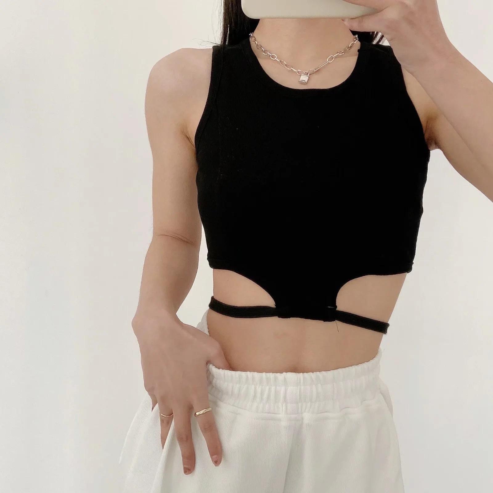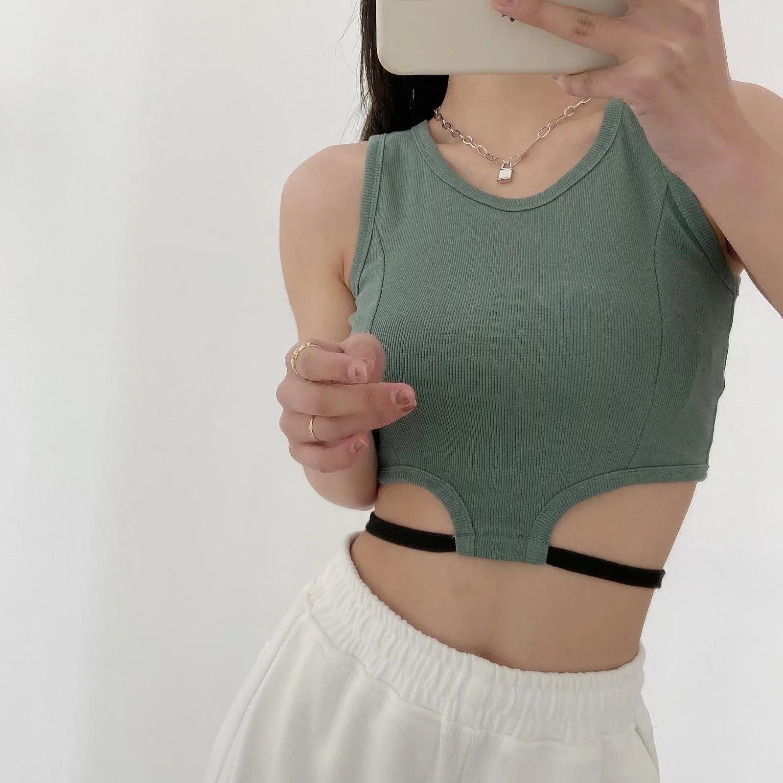 Camiseta básica ajustada con rosca estilo europeo y americano para mujer, estilo Spice Girl, con tirantes cortos y estilo dulce y fresco de verano 2022